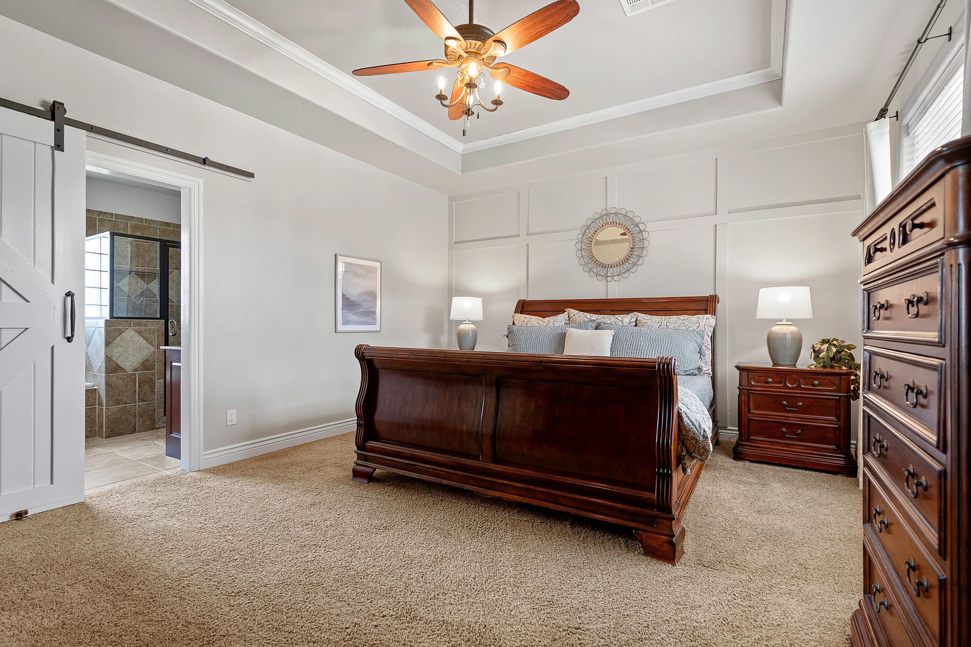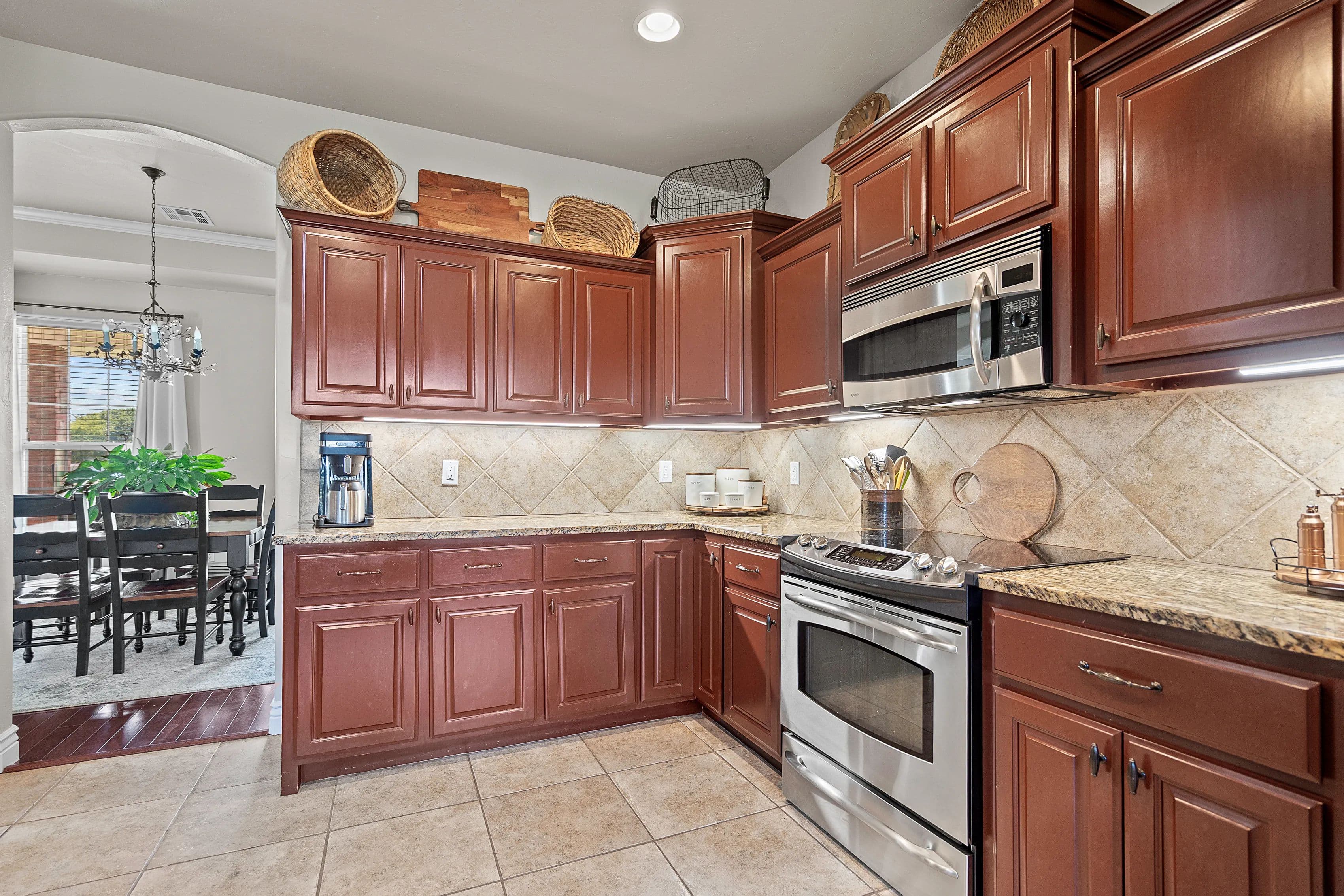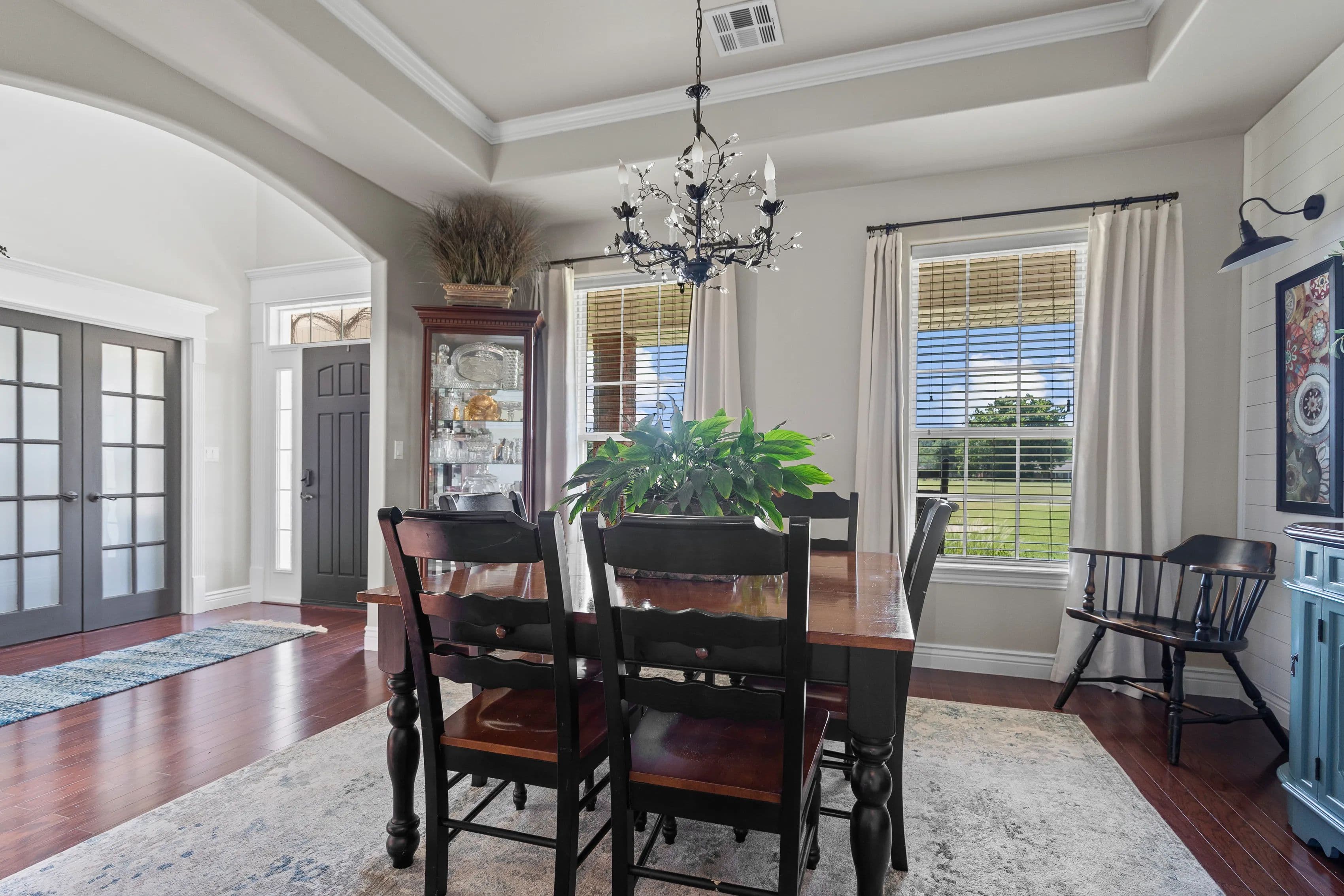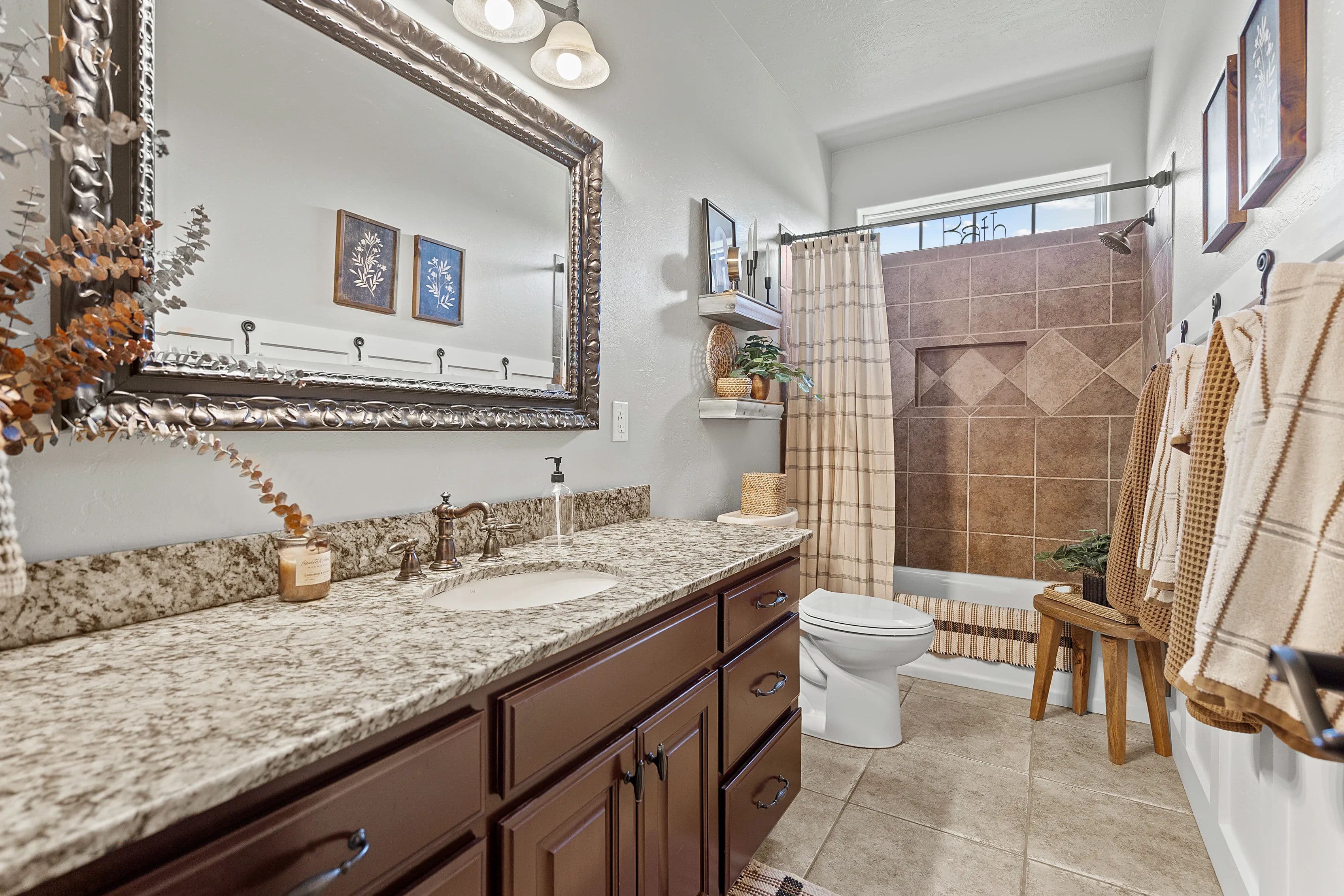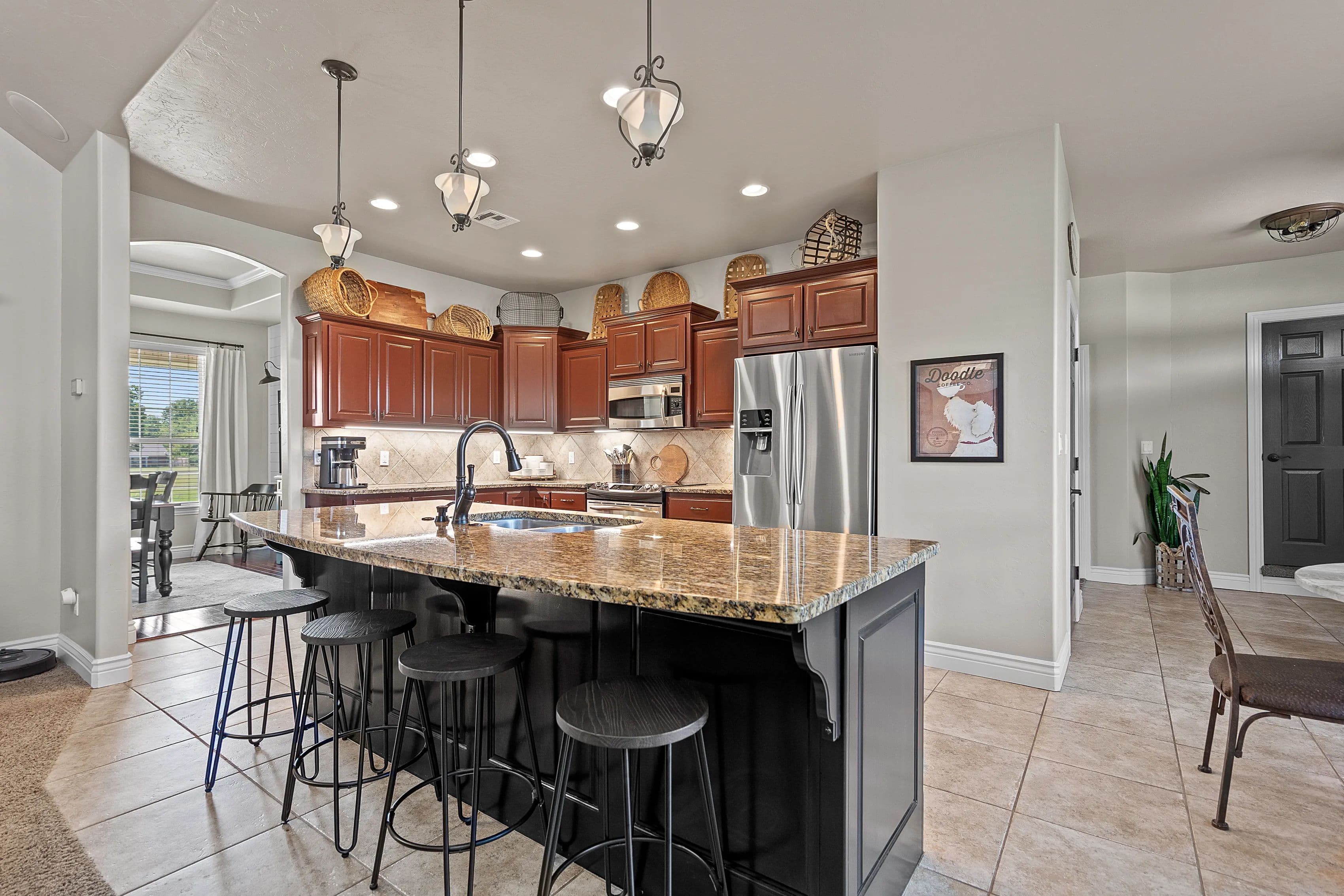 5-bedroom, 2.5-bath home on 10 acres, offering the perfect blend of privacy and convenience. Located just outside city limits but sitting right on the edge of town, the long driveway creates a secluded feel while still providing quick access to amenities. The flexible floor plan includes a 5th bedroom that could serve as an office with double doors opening to the entry hall, plus an upstairs bonus room-style bedroom. The main living area features vaulted ceilings and an open flow between the kitchen, breakfast nook, and living room, with a separate formal dining space for gatherings. The kitchen is equipped with granite countertops, an eat-in island, pantry, and plenty of workspace. The primary suite offers a relaxing en suite bath with a whirlpool tub, separate walk-in shower, and ample closet space. Additional highlights include a large laundry room with storage and sink, a storm shelter, fenced backyard with a concrete patio for outdoor enjoyment, and a new roof. A 30x50 insulated shop with electric, two overhead doors, and one walkthrough door (built in 2012) provides excellent space for hobbies, storage, or work. Utilities include PEC electric and City of Wynnewood water and sewer. This property is ideal for those seeking both comfort and room to spread out, all within minutes of town.