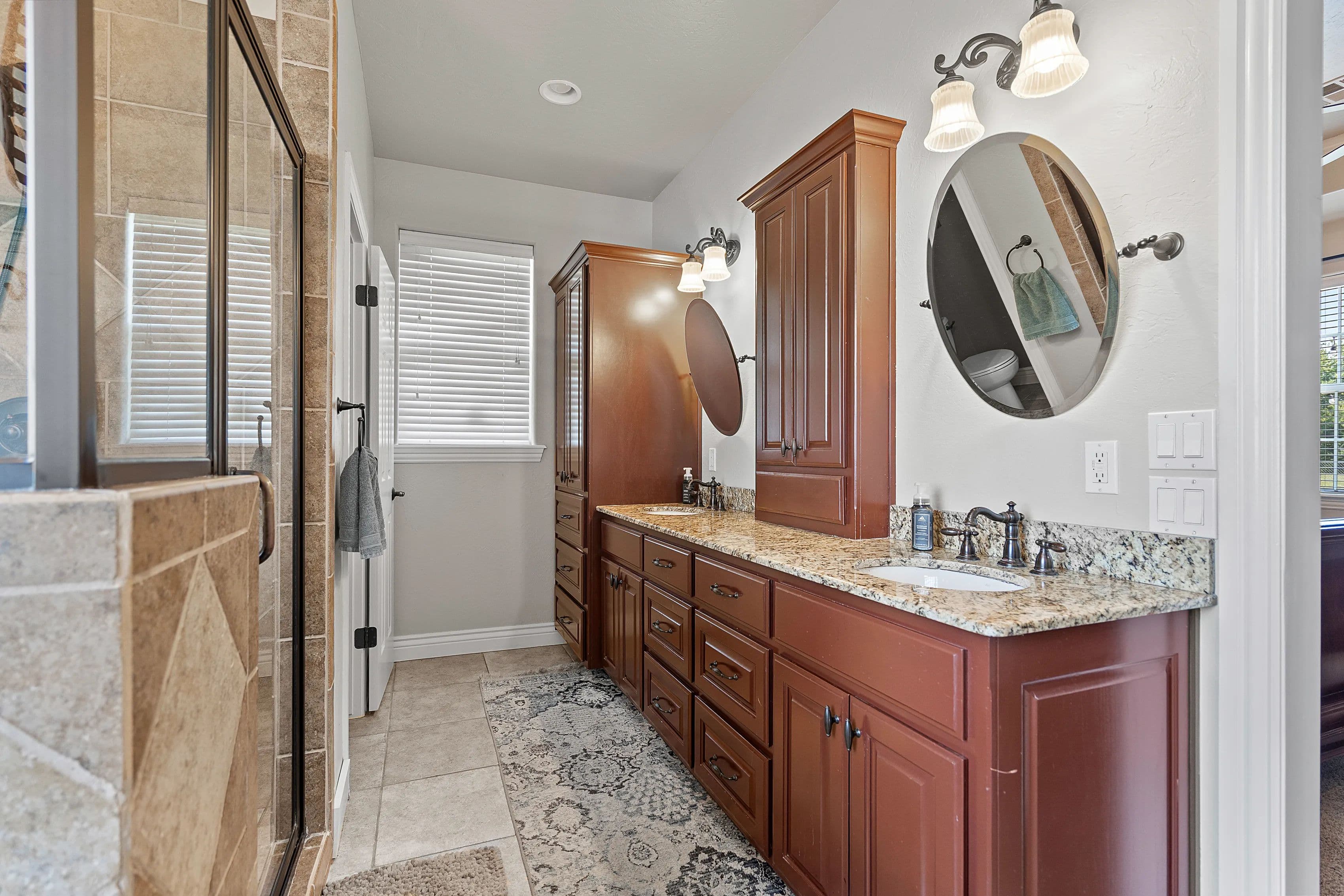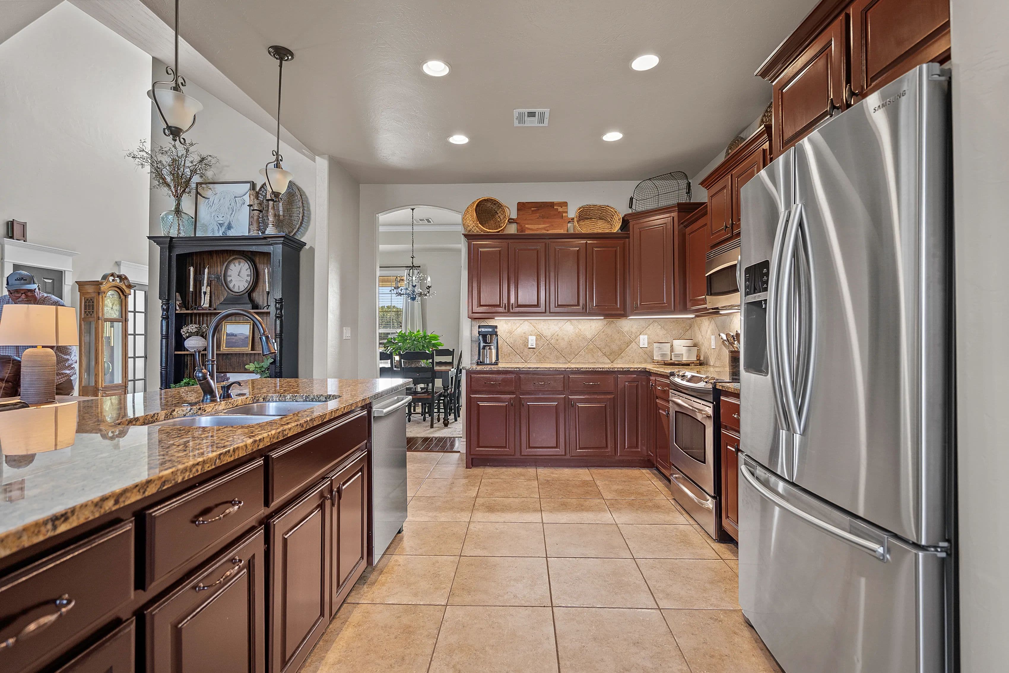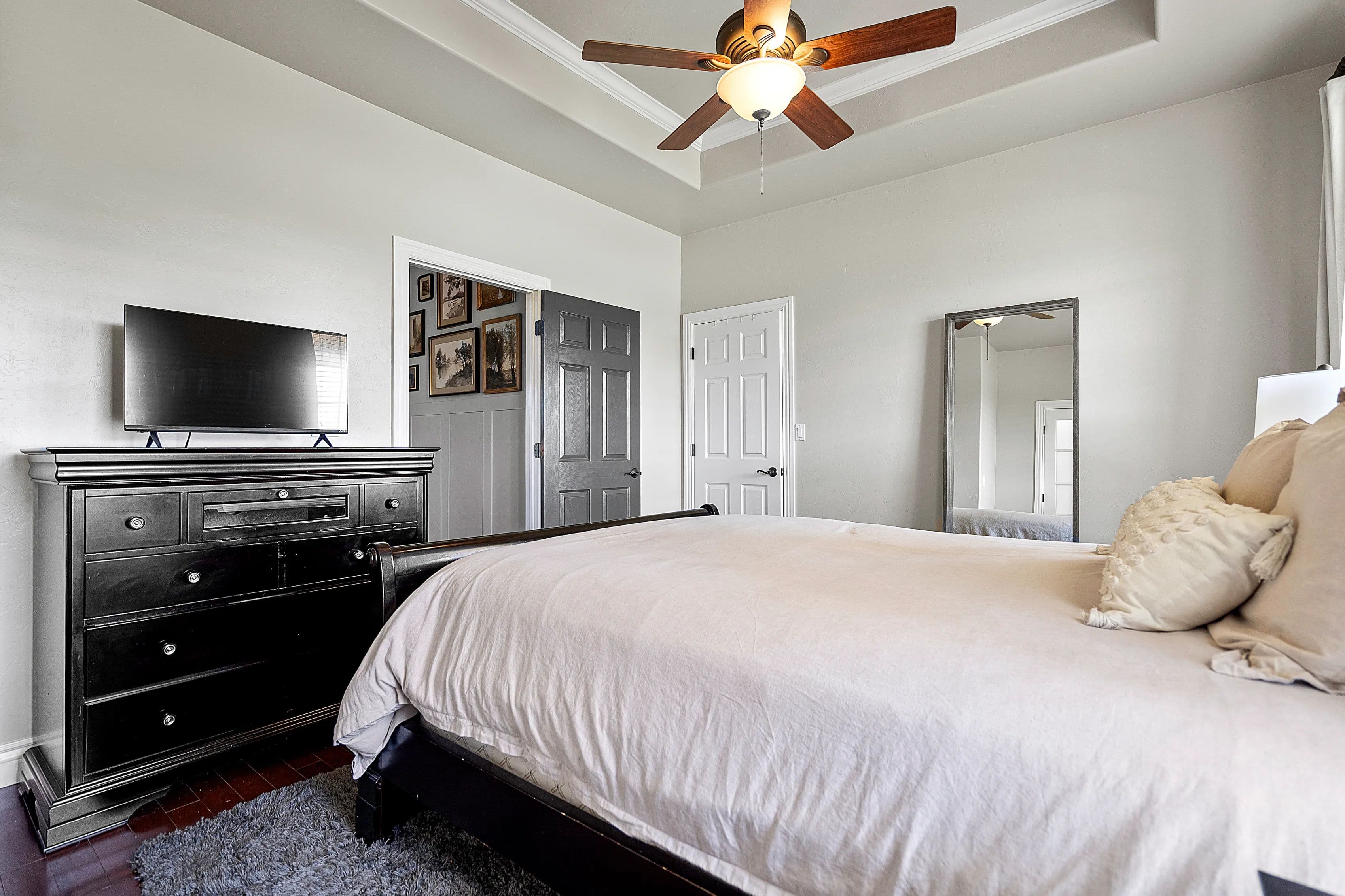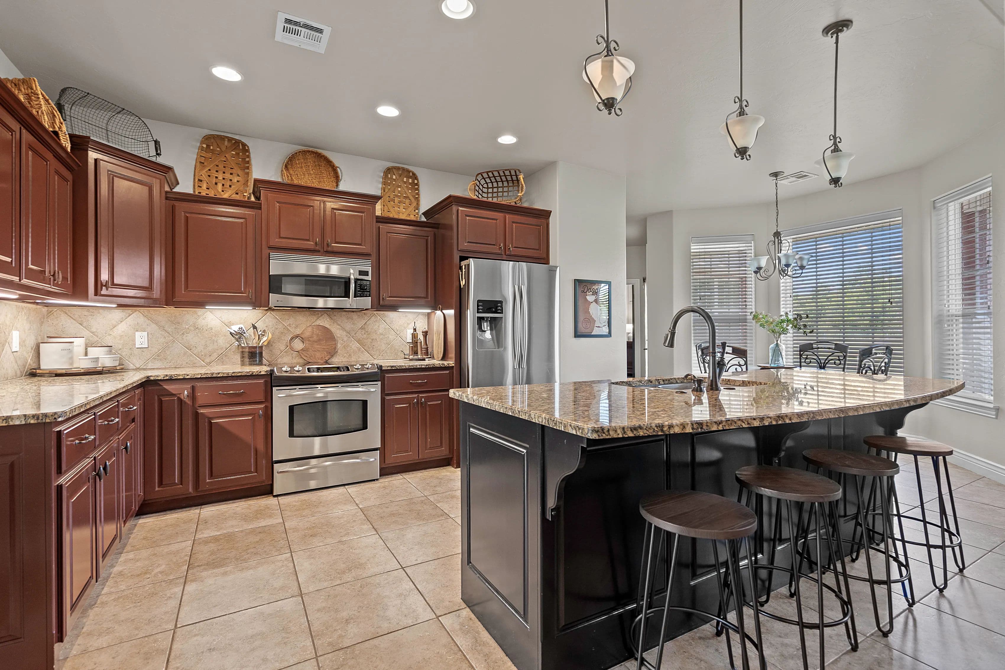 5-bedroom, 2.5-bath home on 10 acres, offering the perfect blend of privacy and convenience. Located just outside city limits but sitting right on the edge of town, the long driveway creates a secluded feel while still providing quick access to amenities. The flexible floor plan includes a 5th bedroom that could serve as an office with double doors opening to the entry hall, plus an upstairs bonus room-style bedroom. The main living area features vaulted ceilings and an open flow between the kitchen, breakfast nook, and living room, with a separate formal dining space for gatherings. The kitchen is equipped with granite countertops, an eat-in island, pantry, and plenty of workspace. The primary suite offers a relaxing en suite bath with a whirlpool tub, separate walk-in shower, and ample closet space. Additional highlights include a large laundry room with storage and sink, a storm shelter, fenced backyard with a concrete patio for outdoor enjoyment, and a new roof. A 30x50 insulated shop with electric, two overhead doors, and one walkthrough door (built in 2012) provides excellent space for hobbies, storage, or work. Utilities include PEC electric and City of Wynnewood water and sewer. This property is ideal for those seeking both comfort and room to spread out, all within minutes of town.