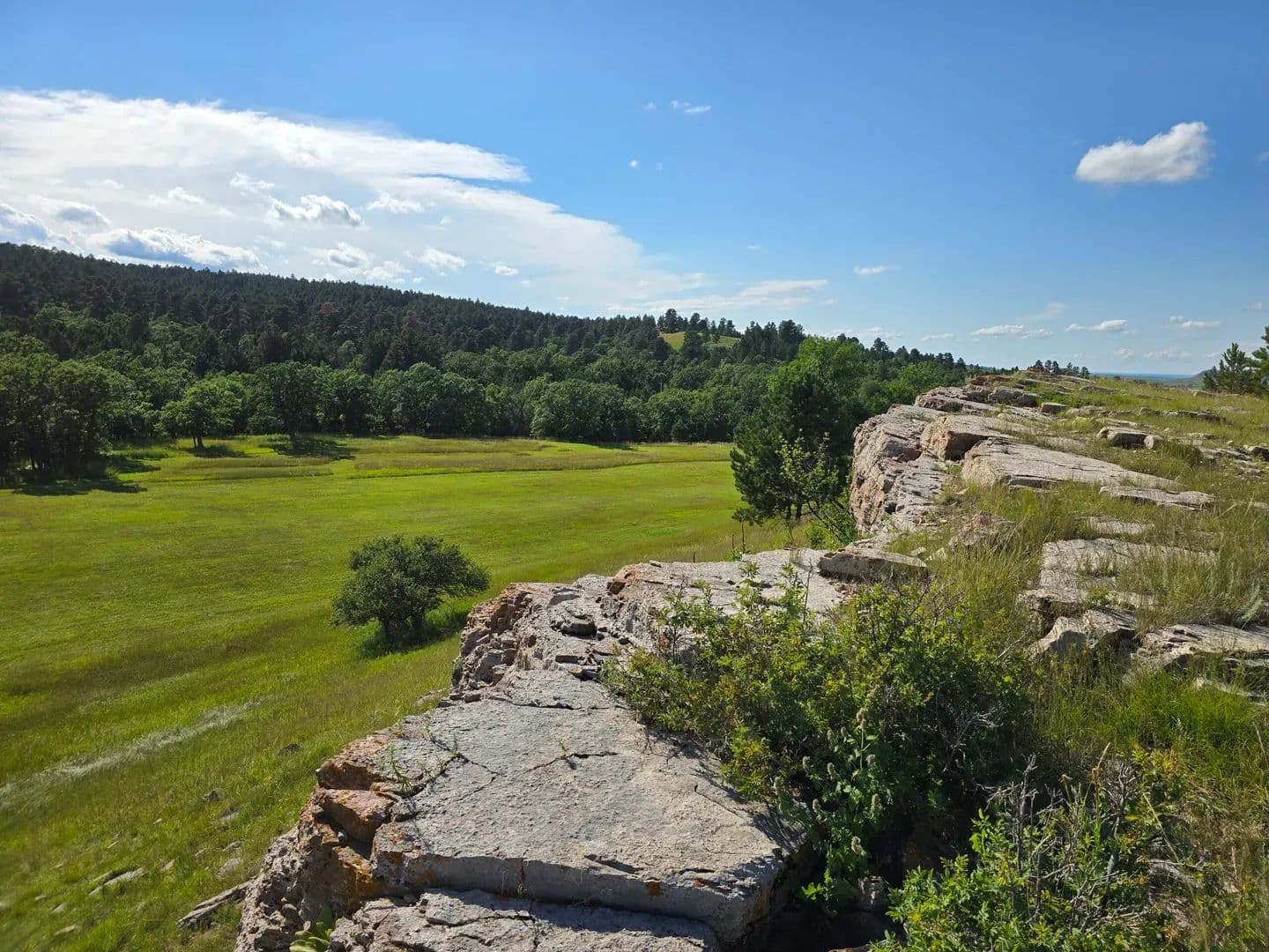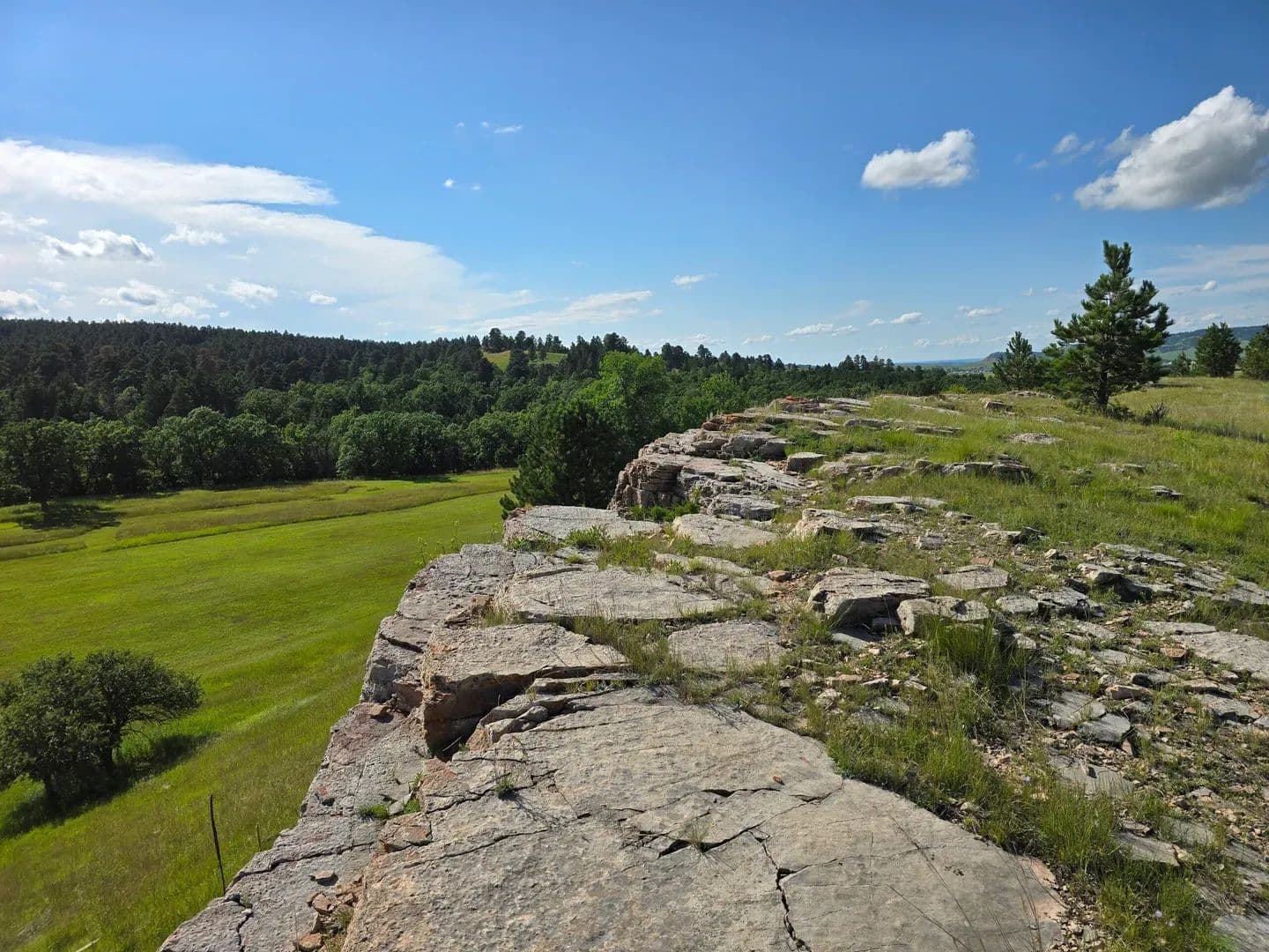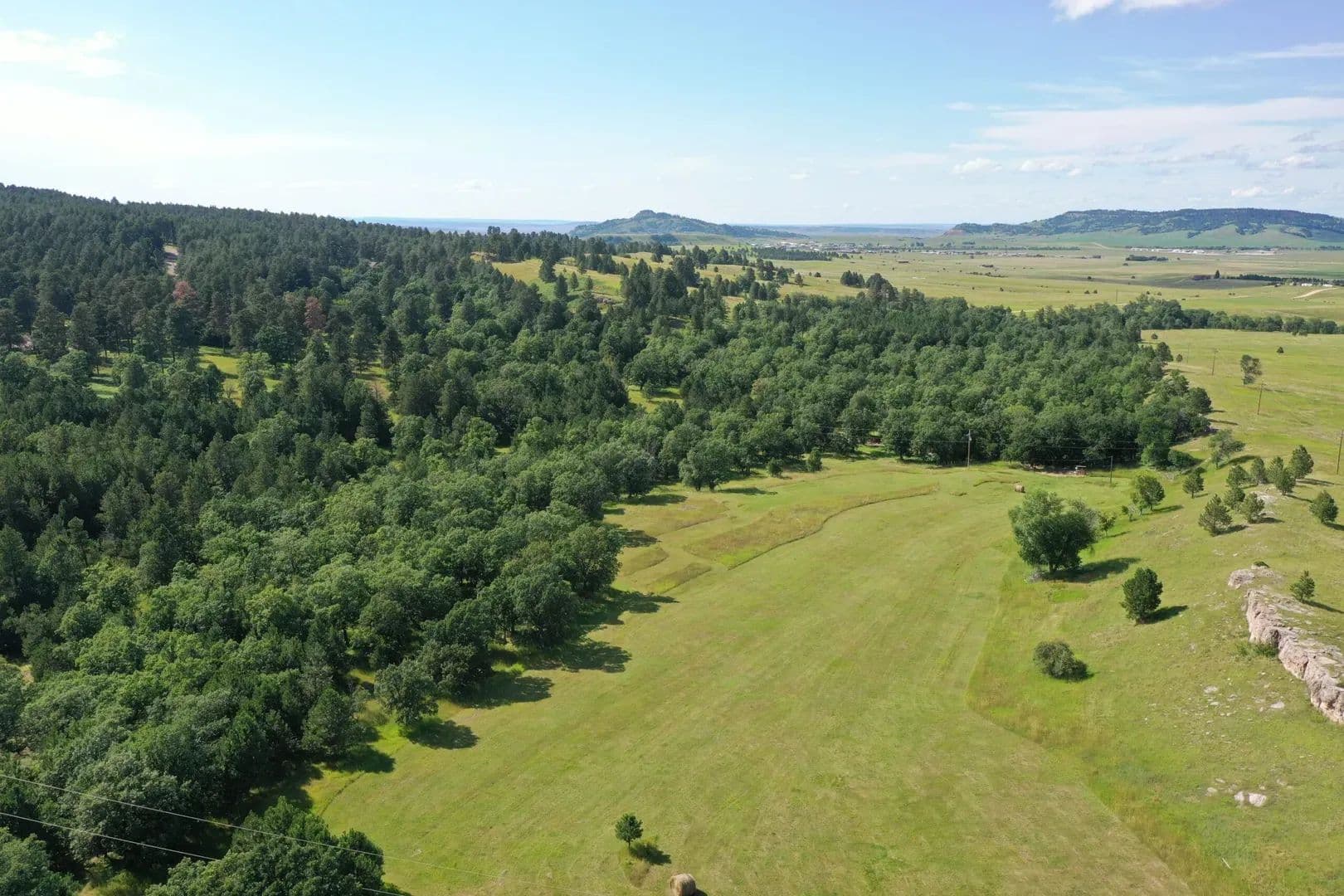Miller Creek Meadows offers a rare blend of seclusion and proximity to Spearfish, South Dakota. 91.5± acres of rolling hay meadows, oak groves, Ponderosa pine ridges and seasonal Miller Creek provide ideal habitat for deer, turkey, and upland game. With power nearby and breathtaking building sites, this is a sportsman's dream within 15 minutes of town. Land Miller Creek Meadows is a visual masterpiece, spanning 91.55 acres of rolling meadows, timbered ridges, and rocky outcroppings typical of the northern Black Hills. The meadows are edged by mature stands of ponderosa pine and native bur oak, with an understory of aspen, chokecherry and even a few apple trees. The property’s terrain includes exposed rock ledges and outcrops composed of pale grey Paha Sapa limestone and pink‑buff Englewood limestone overlying older Spearfish Formation red siltstone and shale. These rocky ridges create natural perches for turkey and vantage points for archery hunting, while the oak–pine margins provide ideal food and cover.