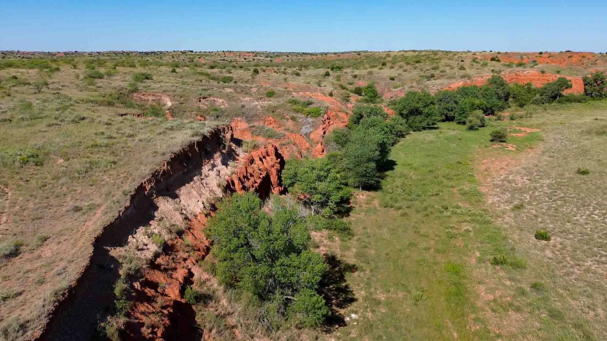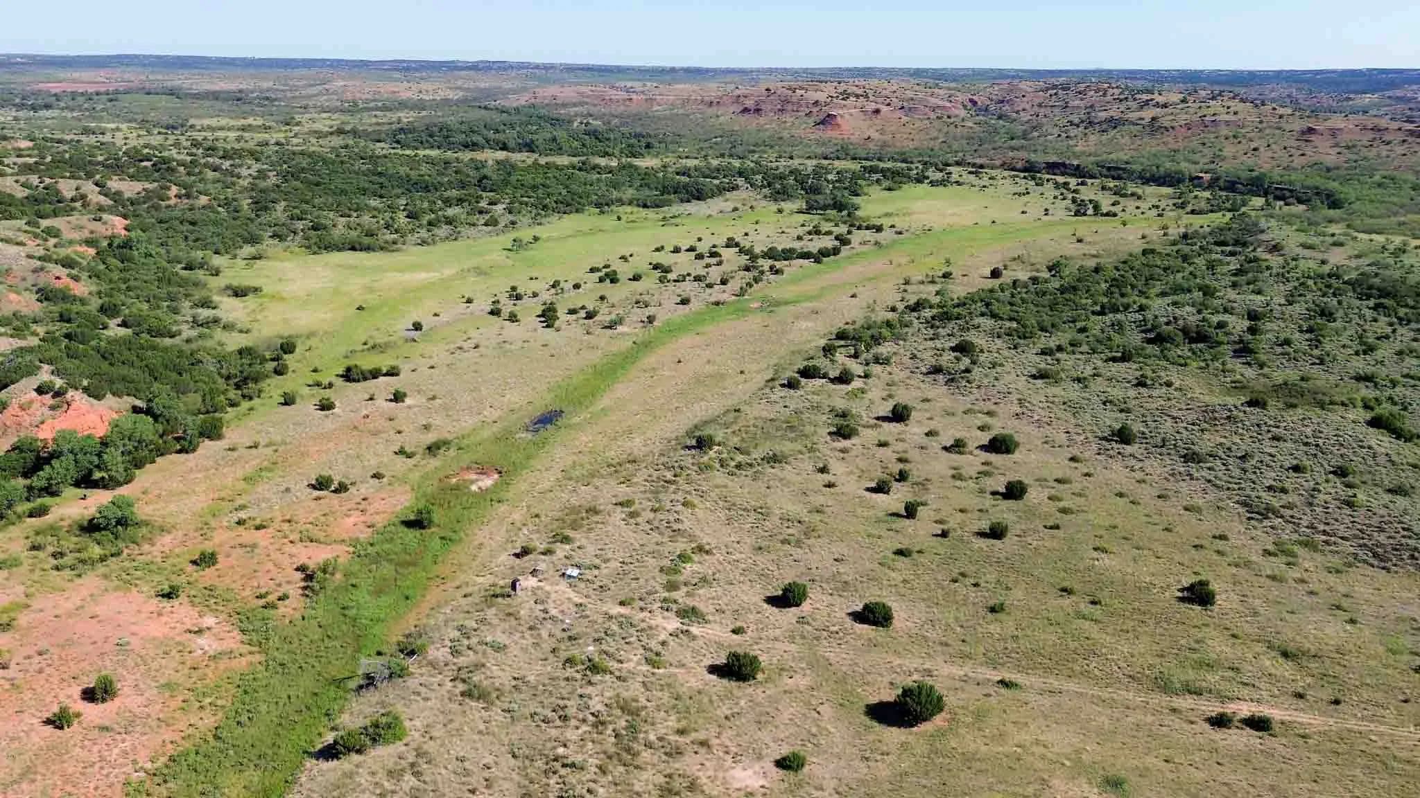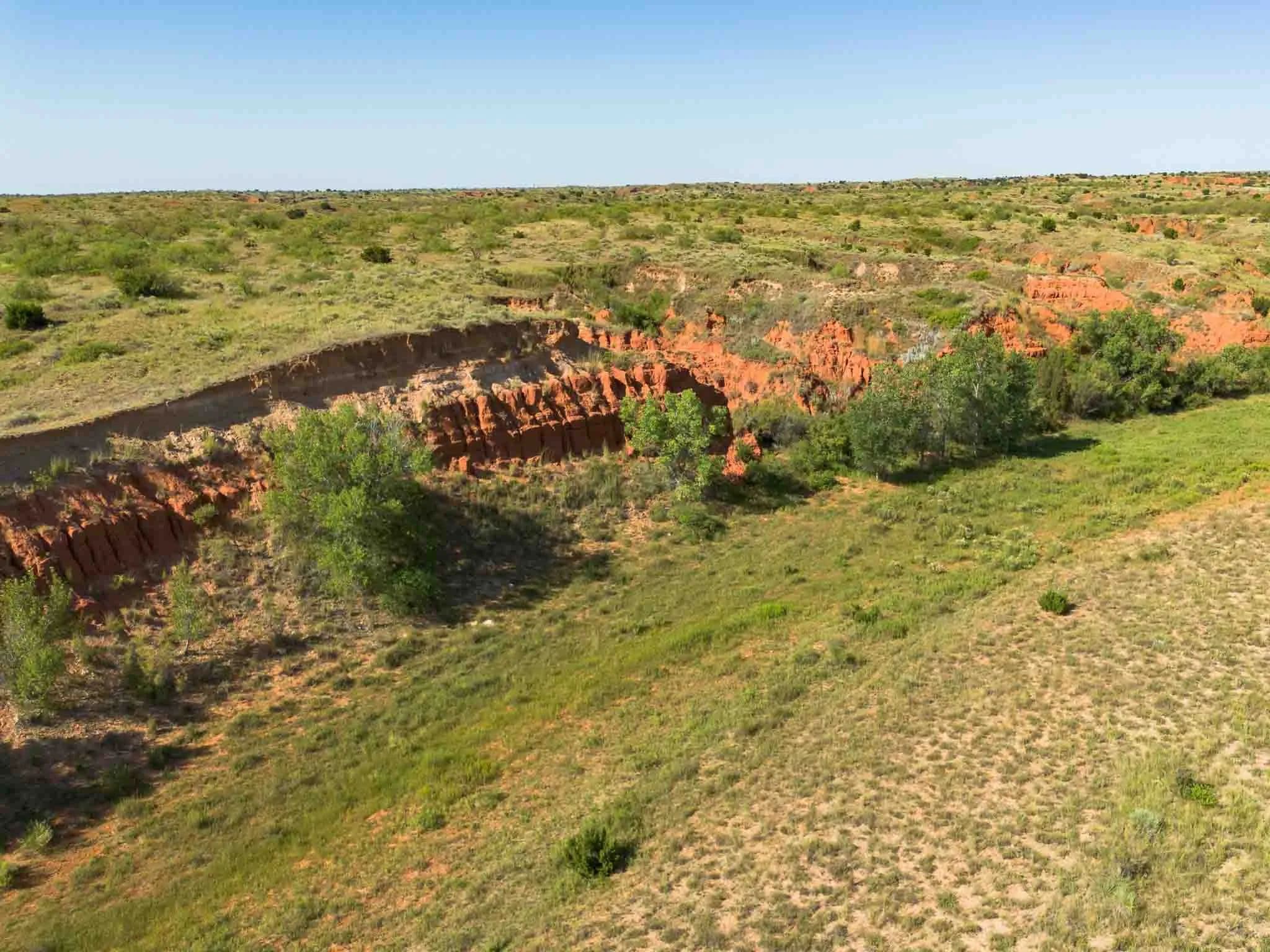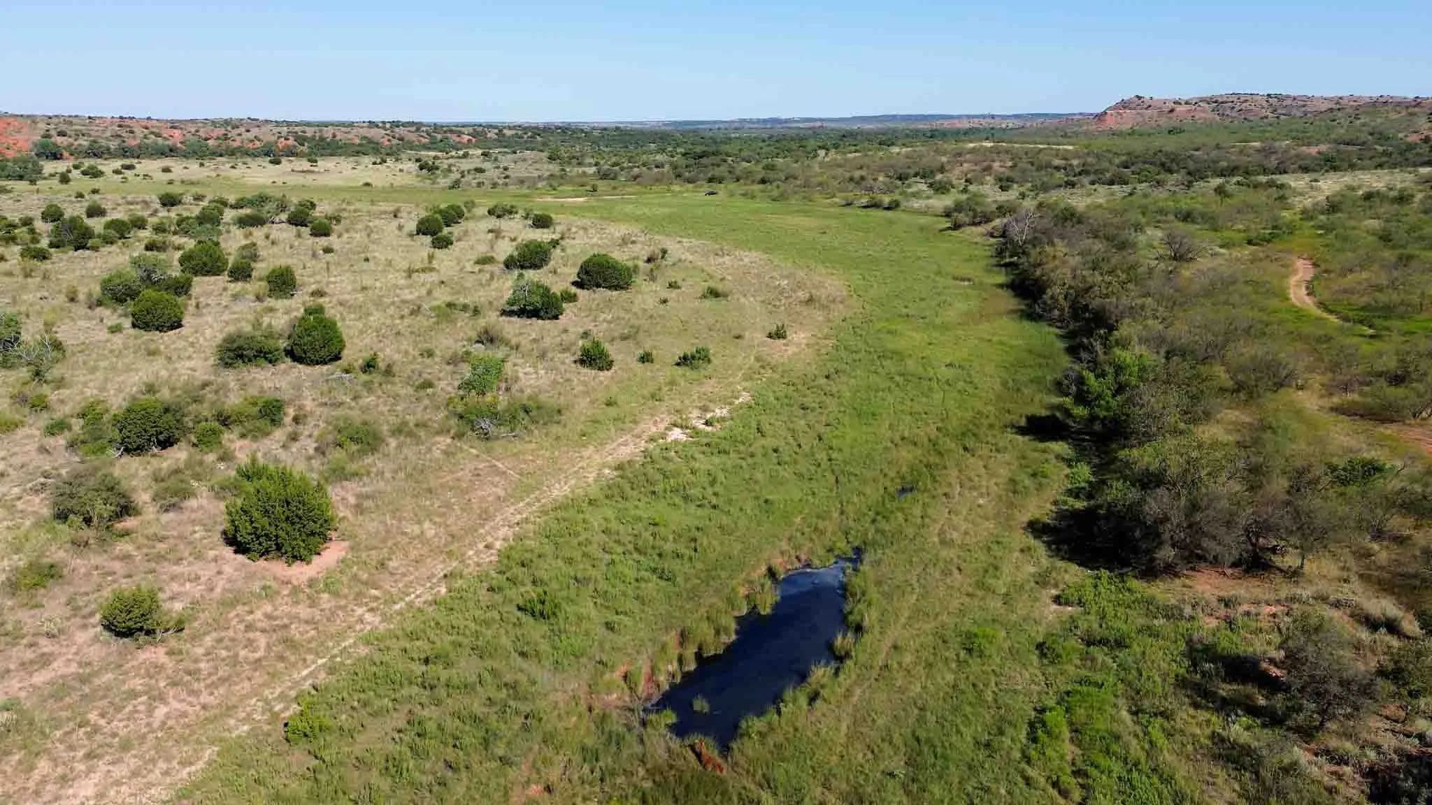 Spanning ±2,570 acres in the striking red canyons along Indian Creek valley, this historic working cattle ranch offers unmatched beauty, diverse terrain, and natural springs. Located 6 miles northwest of Memphis, the ranch boasts over 2.5 miles of Indian Creek and elevations ranging from 2,200 to 2,420 feet, showcasing beautiful vistas of red clay cliffs, cedar ridges, and sheltered valleys rich in wildlife, including white-tail and mule deer, wild turkey, and ground birds. Originally part of the Doll Baby Ranch dating back to 1878, the property has been in the Reeves family since 1962 and is ideal for both grazing cattle and recreational pursuits. Native grasses and lush Bermuda thrive. Improvements include two homes, a large quonset barn, a set of working pens, solar and electric well, rural water, perimeter fencing, ranch roads, and a hunter's camp with RV hookups.