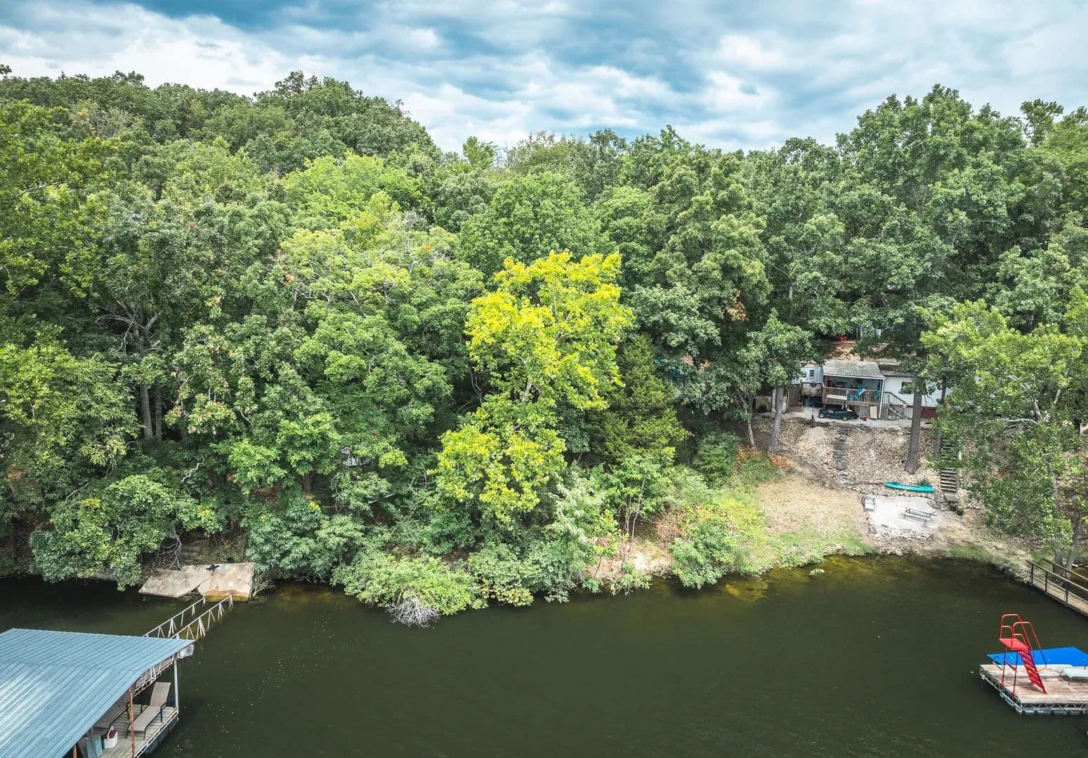 This is a rare opportunity to own just under a one-third of an acre right on the Lake of the Ozarks, located in a deep water cove off the 31-mile marker - ideal for swimming, boating, and embracing the lake lifestyle. This property includes a concrete driveway, existing utilities, and an older trailer that could be removed to make way for a brand-new build or possibly renovated for a more rustic weekend retreat. Whether you choose to clear the lot and start fresh or make use of what's already here, the possibilities are wide open. This blank canvas offers incredible potential in one of Camden County's most desirable lakefront locations-just minutes from Lake Regional Hospital, Camdenton High School, and a short boat ride to some of the Lake's most popular waterfront destinations. Enjoy the freedoms of no HOA with only minimal restrictions, build, renovate, or hold as an investment-this property offers flexible options in a premium setting.