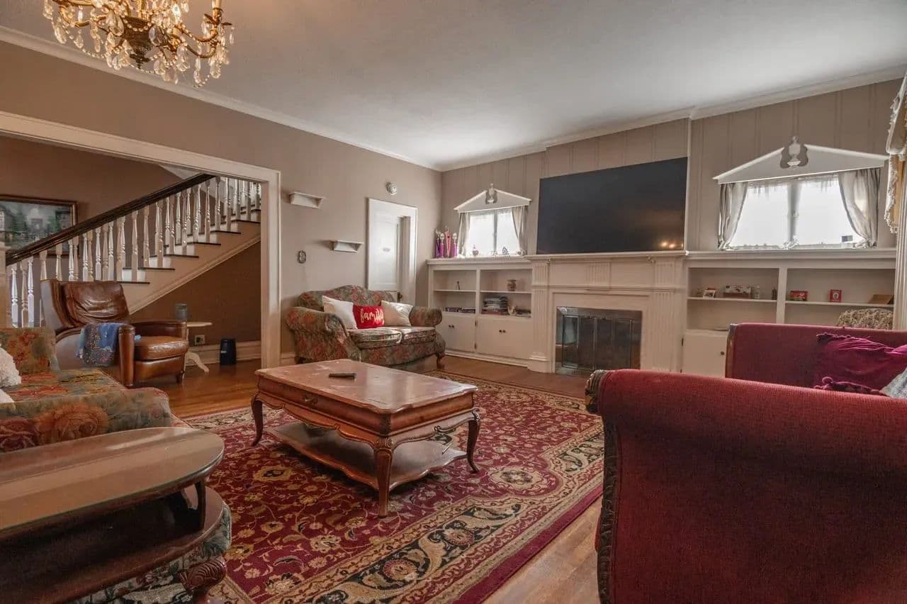 Inside, you'll find remarkable features such as a grand double staircase, leaded glass doors, sparkling chandeliers, and even a private elevator - rare details that make this property unforgettable. The main floor flows beautifully with multiple living spaces, including a bright sunroom ideal for morning coffee or relaxing afternoons. Upstairs, three spacious bedrooms provide comfort and privacy, while the finished basement offers flexibility with a game room, bar, and an additional bedroom.