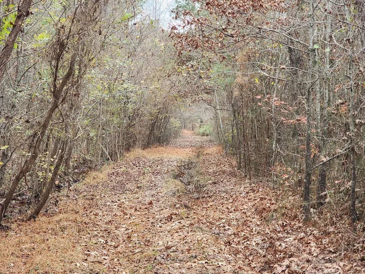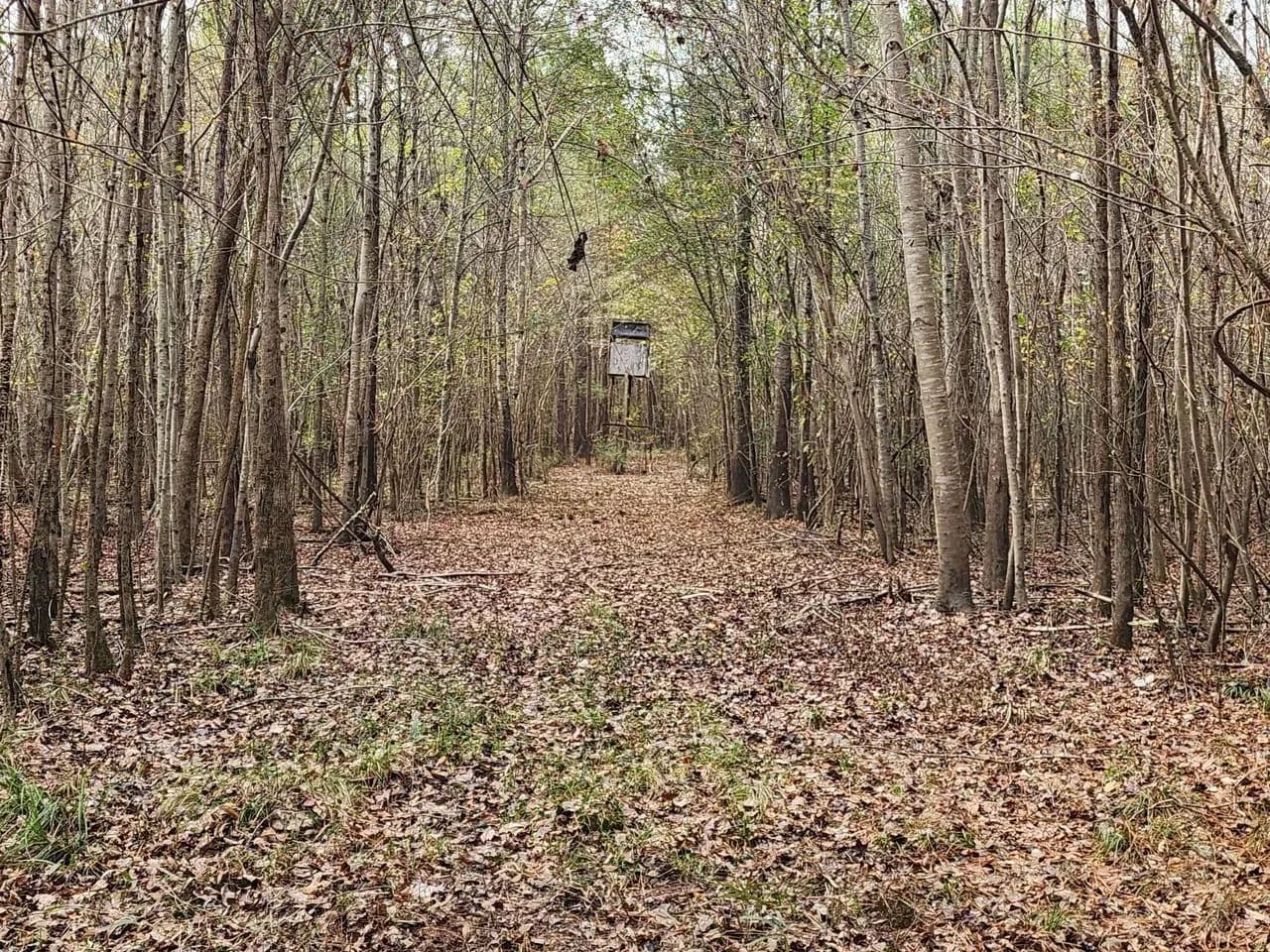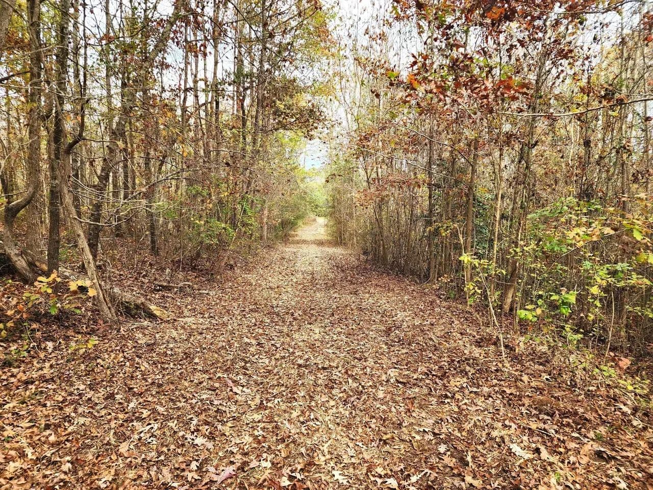 The main entrance to the property is beside 2337 Reges Store Road. Cable across the path requires a combination lock code.