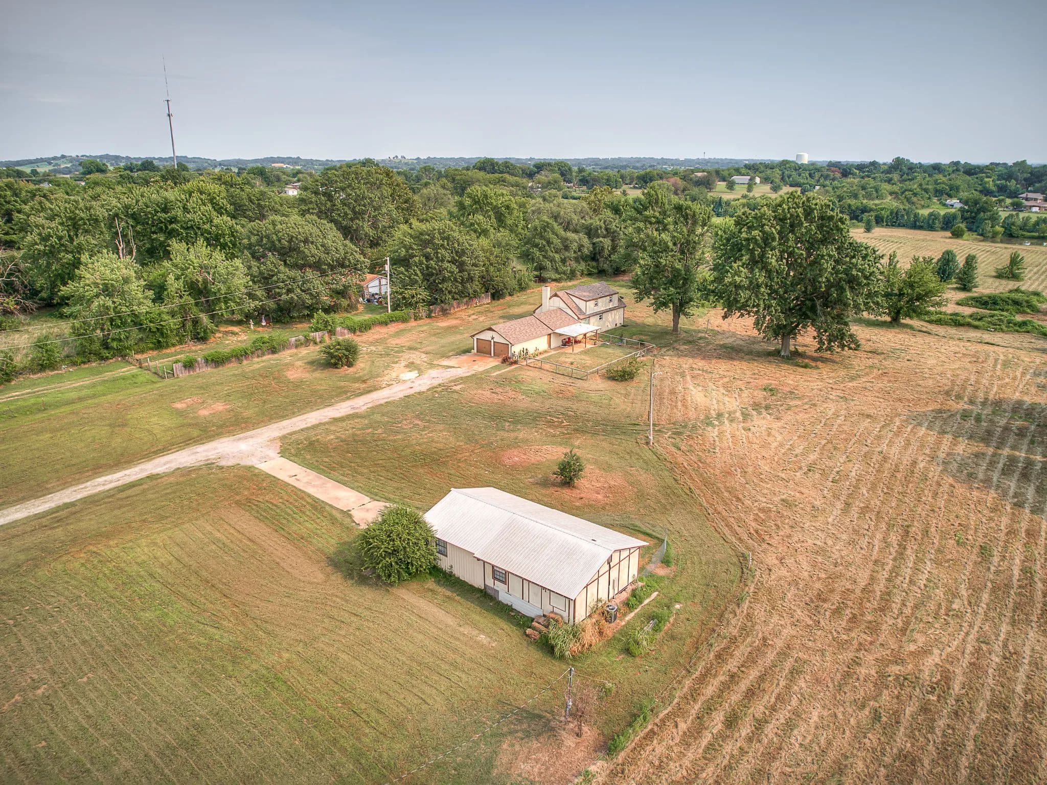 10 +/- ACRES IN COWETA WITH TWO HOMES AND A POND! Prime 10 +/- acre property in a highly sought-after Coweta location, less than 1 mile from Highway 51, 5.5 miles from the Muskogee Turnpike, and 6 miles from the Creek Turnpike. The two homes combine for approximately 3,397 sq. ft. total (CH) of finished living space, with 2,365 sq. ft. in the main home (CH) and 1,032 sq. ft. in the second home built in 2021 (CH). The main home offers 3 bedrooms and 2.5 bathrooms, with a flexible formal dining room that can easily serve as a second living area or home office. Upstairs, oversized rooms provide plenty of space for kids, guests, or hobbies. Recent updates include new flooring, an updated kitchen with stainless steel appliances, a new hot water heater, and a water filtration system, creating the perfect blend of modern comfort and country charm. The second home adds even more versatility with 2 bedrooms and 1 bathroom, perfect for a college-aged child, aging family member, or as a rental income opportunity. The land is equally impressive with open space for a hobby farm, livestock, or gardens. A beautiful pond adds both function and character, supplying water for animals and offering a peaceful spot to relax in the evenings. The acreage is fenced and ready for animals, with room to expand or customize to your needs. This location keeps you close to everything, just 11 miles from Broken Arrow and 16 miles from Wagoner, while still enjoying the peace and privacy of country living. Coweta schools, shopping, restaurants, Walmart Supercenter, the Coweta Sports Complex, and downtown community events are just minutes away, with quick turnpike access for an easy commute to Tulsa and surrounding areas. Opportunities like this do not come around often. Call today to schedule your showing. Buyer’s agents welcome.