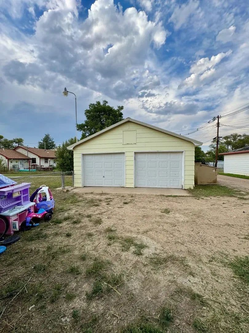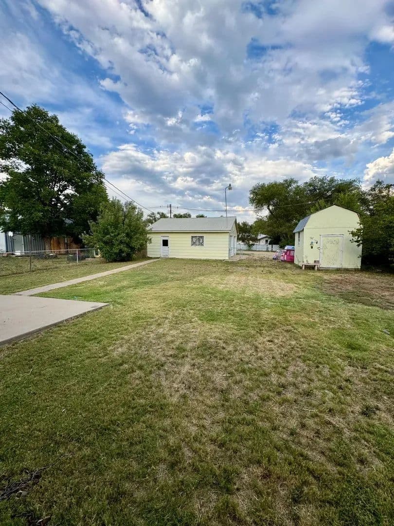 Located on a nice sized lot and close to the schools, sits this 3 bedroom, 1 bathroom ranch style home. There is also a full basement that is partially finished and includes another living room, bedroom, and laundry room. On the main level there are 3 bedrooms, 1 full bathroom, living room, dining room, and a large kitchen with plenty of counter space and cabinetry for storage. The backyard is fully fenced with chain link and also features a storage shed. Both front and back yards have an automatic sprinkler system. At the back of the lot by the alley sits a 2 car garage with 1 automatic door opener. The house and garage both have metal roofs. You have plenty of space here! Schedule your tour today.