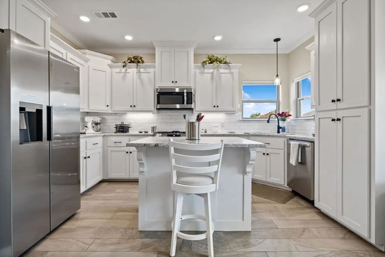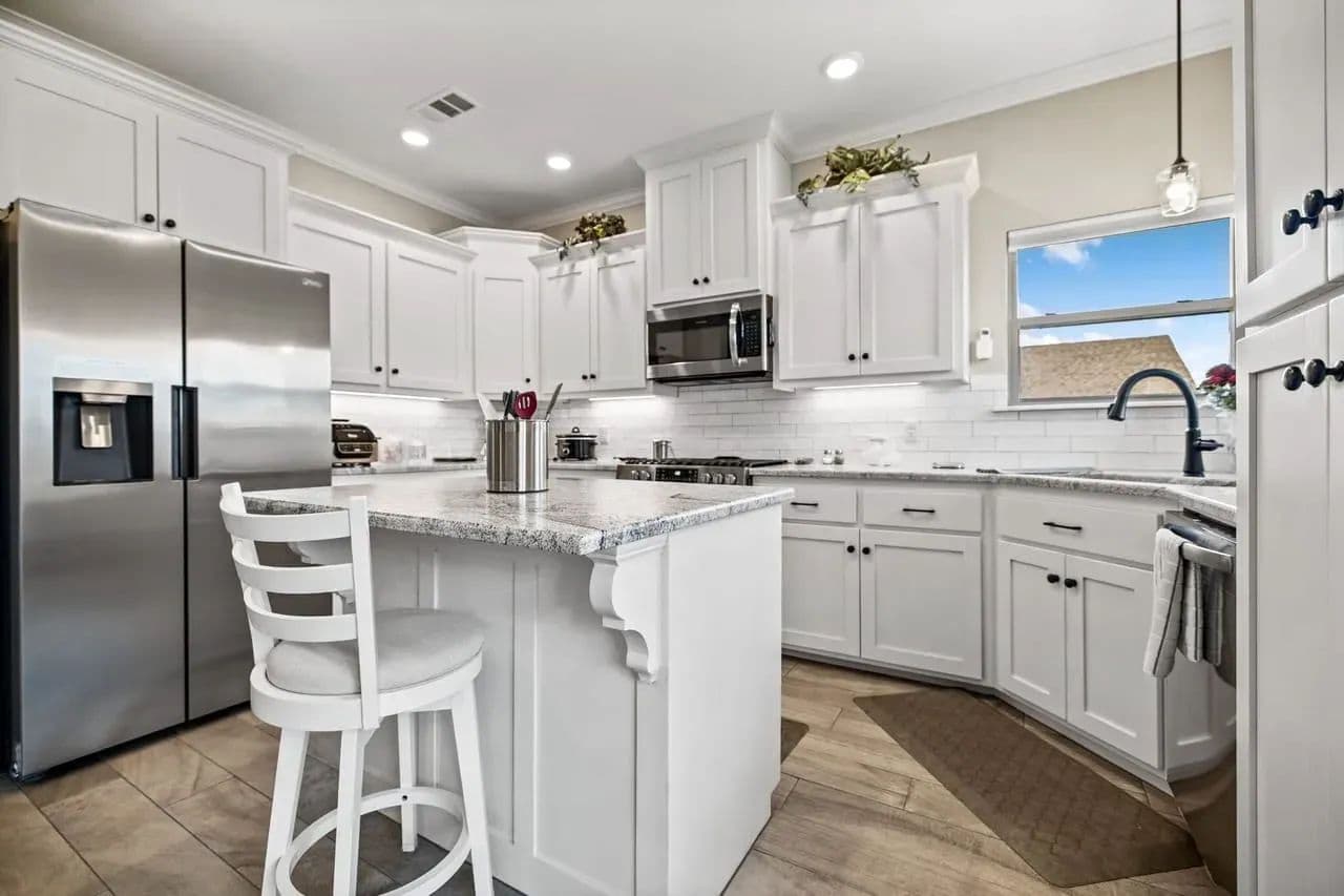 The open-concept kitchen boasts sleek stainless steel appliances, granite countertops, and is perfect for cooking and entertaining. Enjoy relaxing or entertaining on the covered patio, which overlooks a fully fenced private backyard—ideal for pets and outdoor gatherings. Additional highlights include a tankless water heater for energy efficiency and comfort.
