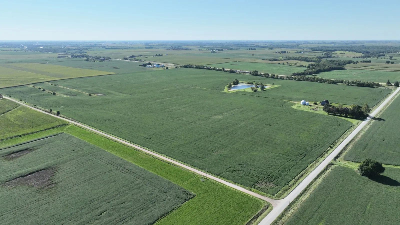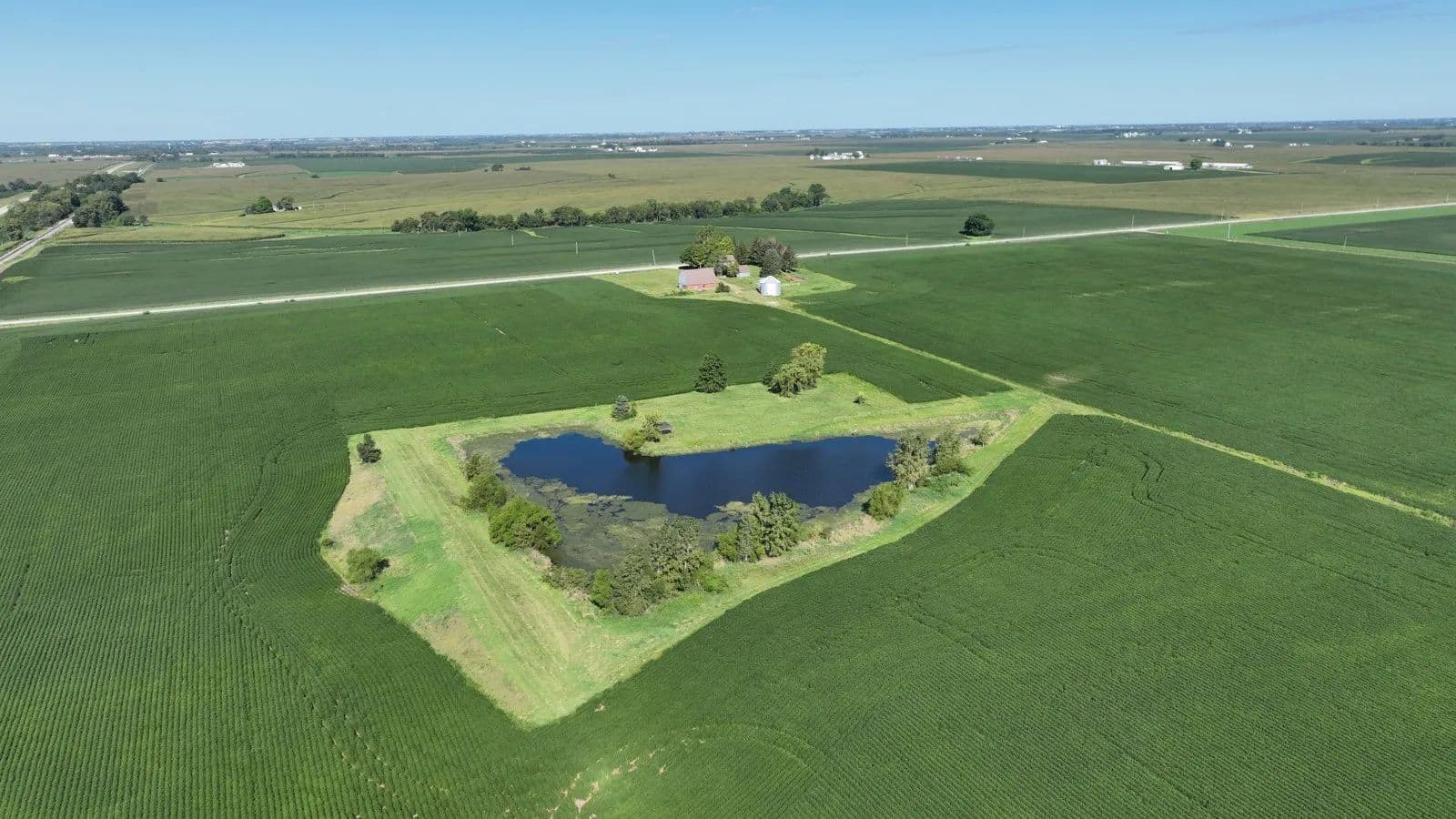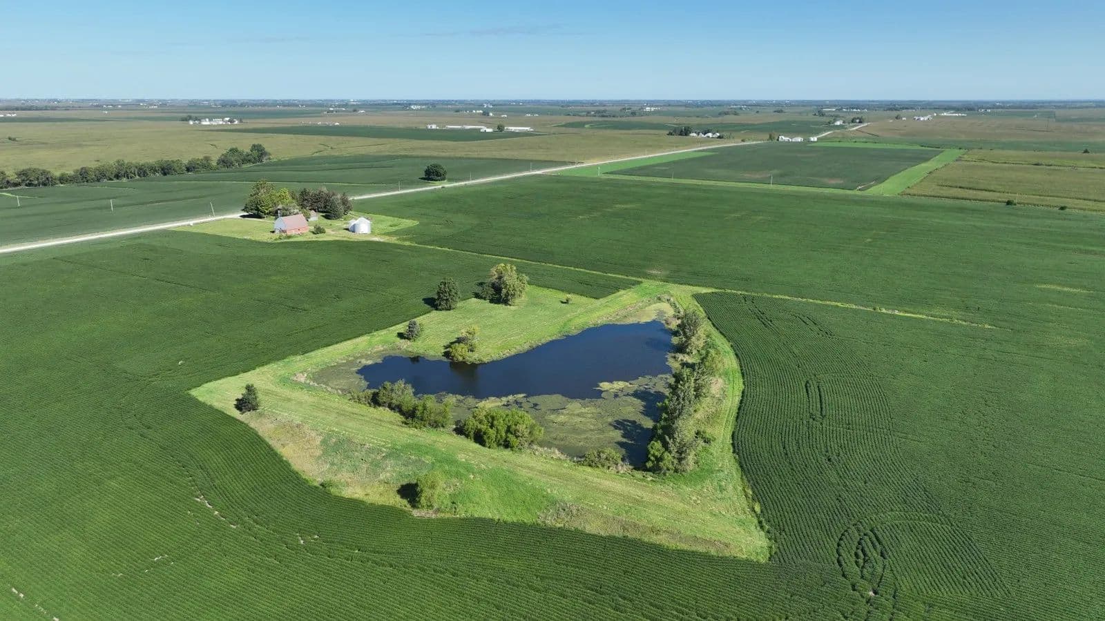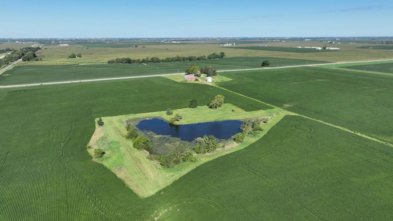 Improvements include a 36'×50' barn (1940), grain bins (approx. 4,000 bu – 1965 and 10,000 bu – 1980), three wells, Alliant electric, and propane tanks serving the house and the large grain bin. A scenic pond—historically stocked with catfish, grass carp, and bluegill—adds recreational and aesthetic value. With productive soils, storage capacity, and reliable utilities, Tract 11 is well-suited for row-crop production, livestock support, or a mixed-use farmstead.