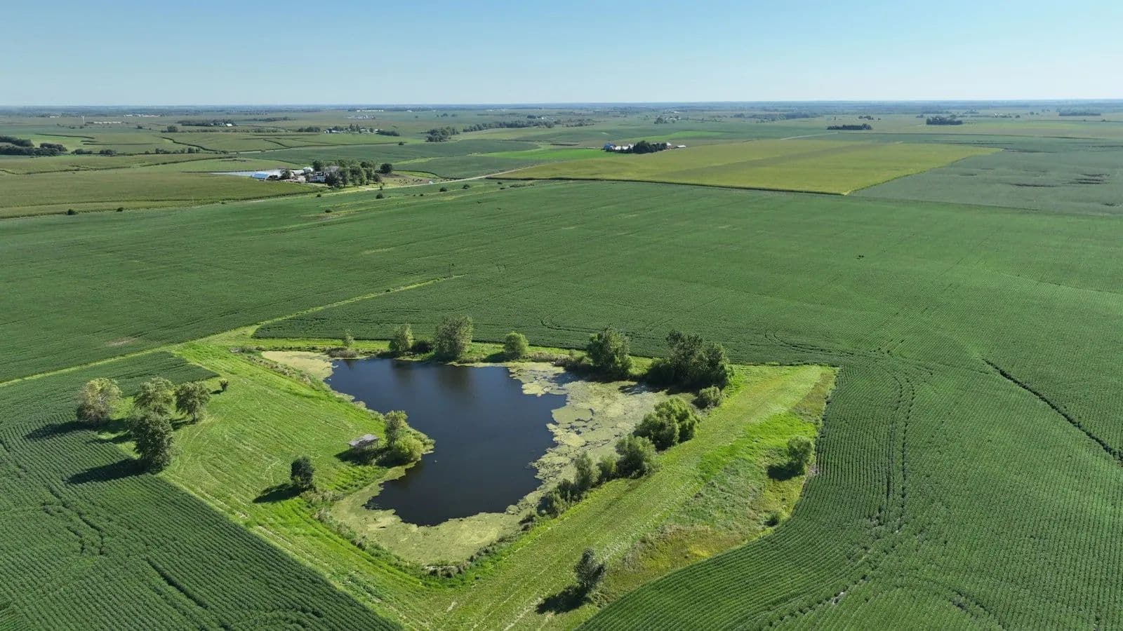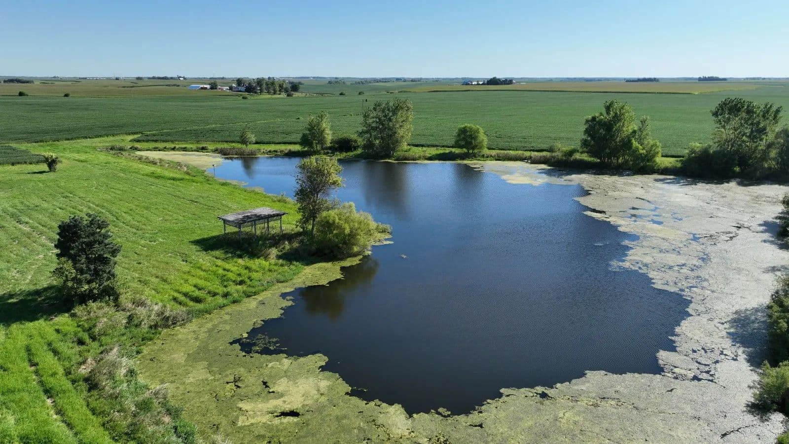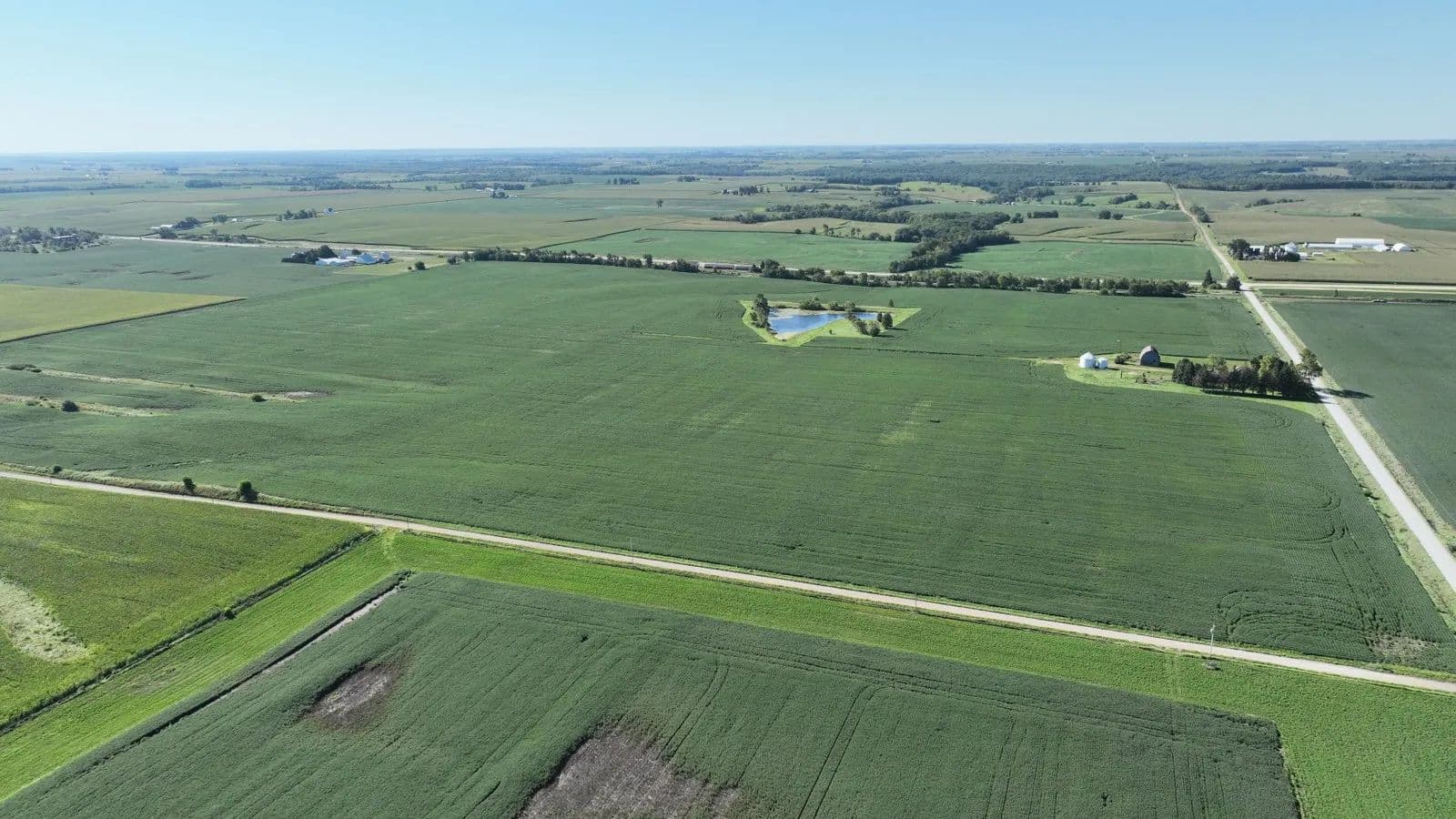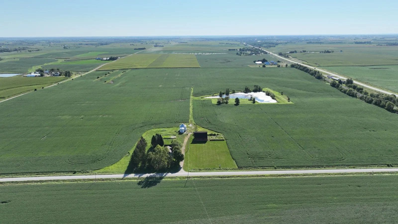 Improvements include a 36'×50' barn (1940), grain bins (approx. 4,000 bu – 1965 and 10,000 bu – 1980), three wells, Alliant electric, and propane tanks serving the house and the large grain bin. A scenic pond—historically stocked with catfish, grass carp, and bluegill—adds recreational and aesthetic value. With productive soils, storage capacity, and reliable utilities, Tract 11 is well-suited for row-crop production, livestock support, or a mixed-use farmstead.