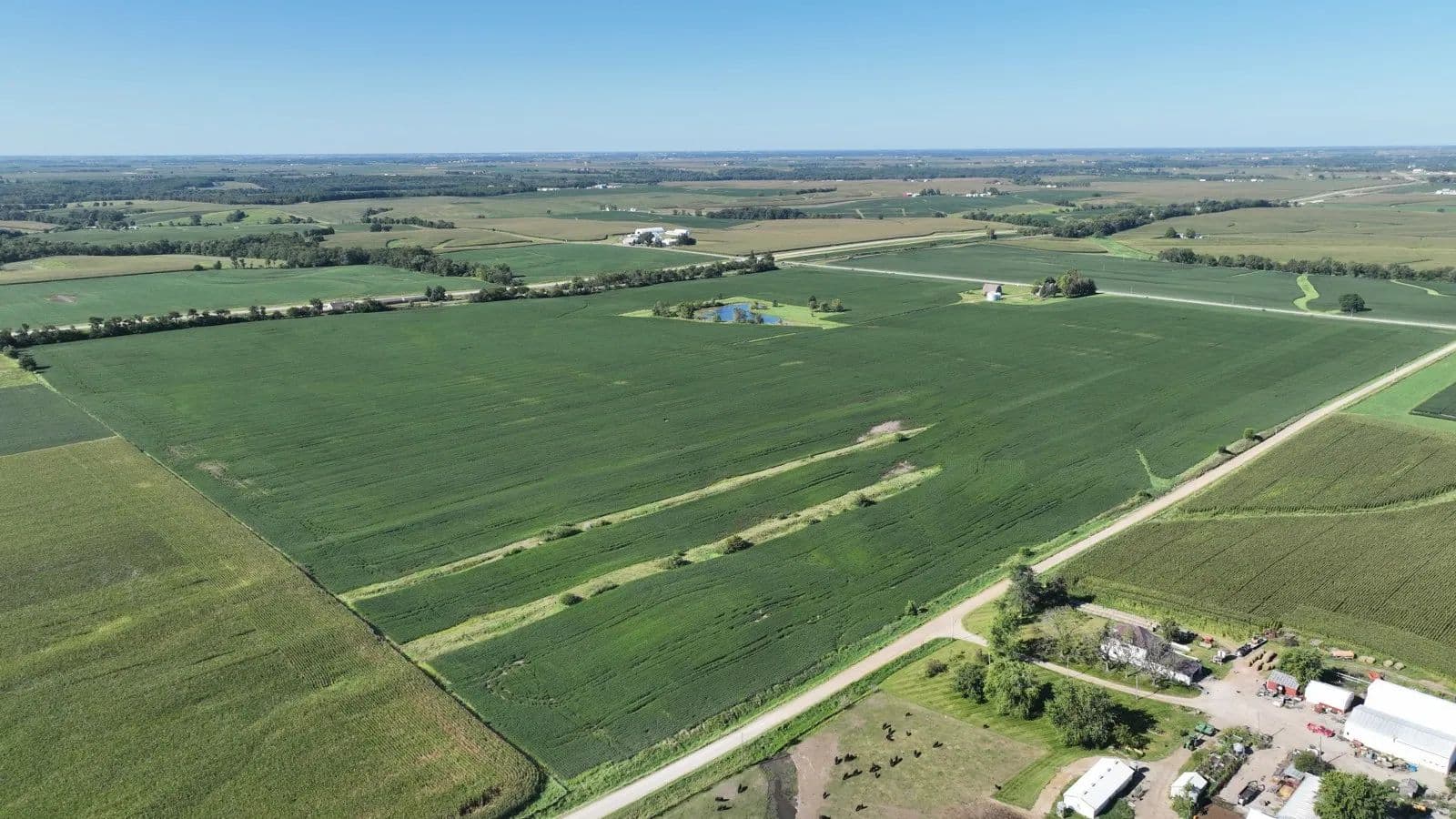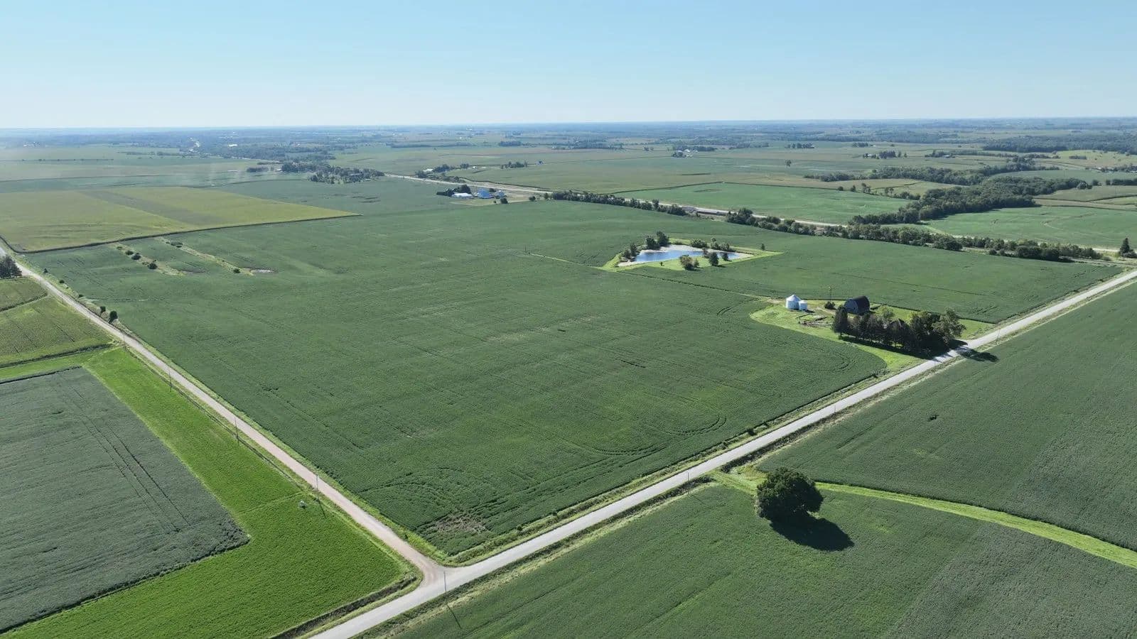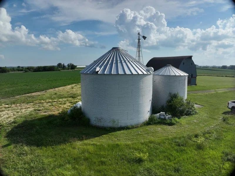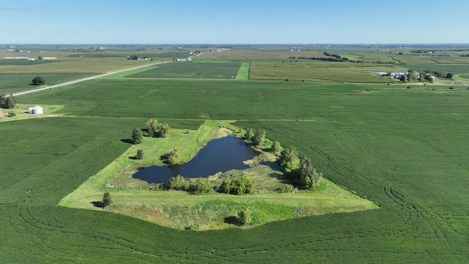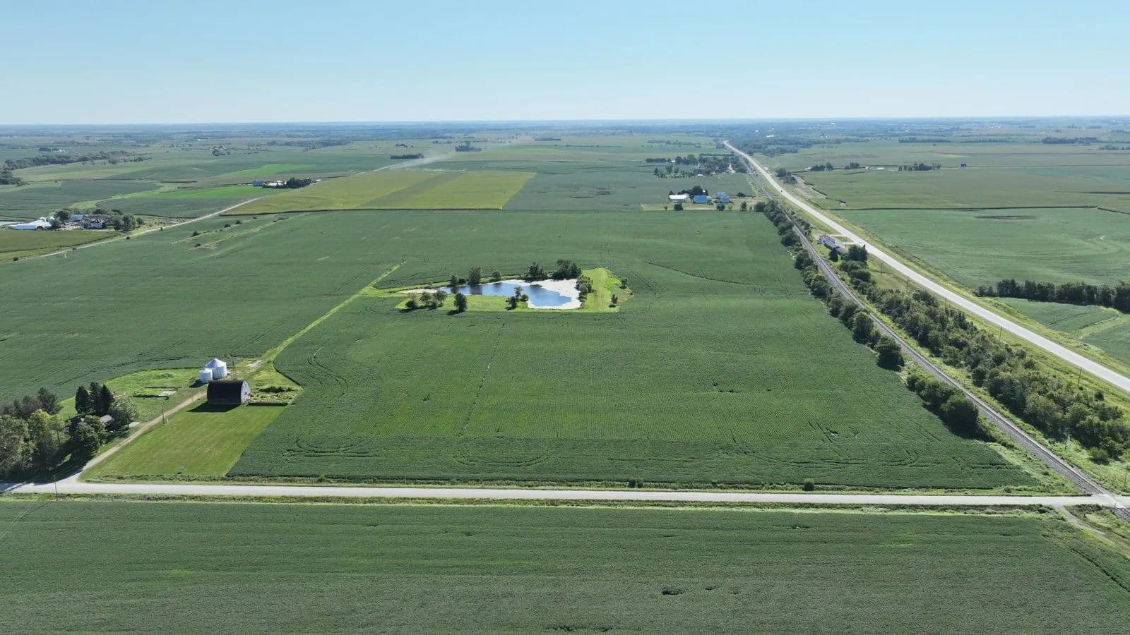 Improvements include a 36'×50' barn (1940), grain bins (approx. 4,000 bu – 1965 and 10,000 bu – 1980), three wells, Alliant electric, and propane tanks serving the house and the large grain bin. A scenic pond—historically stocked with catfish, grass carp, and bluegill—adds recreational and aesthetic value. With productive soils, storage capacity, and reliable utilities, Tract 11 is well-suited for row-crop production, livestock support, or a mixed-use farmstead.