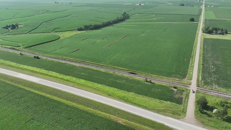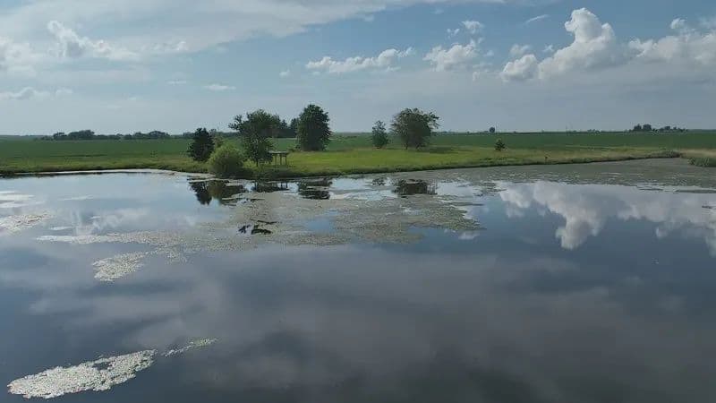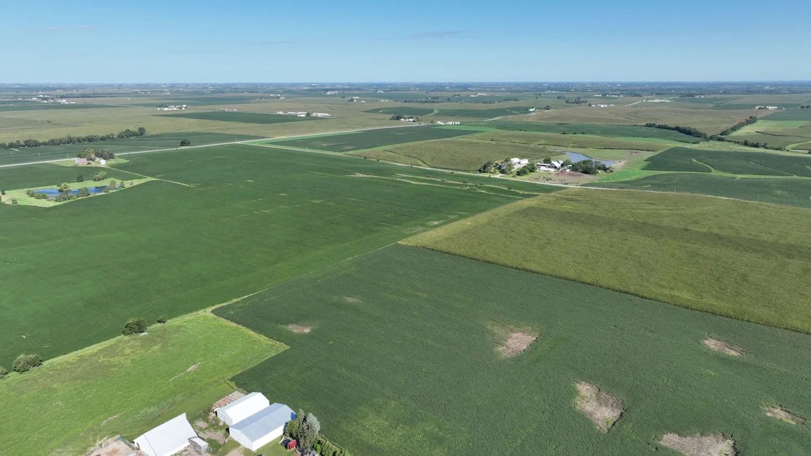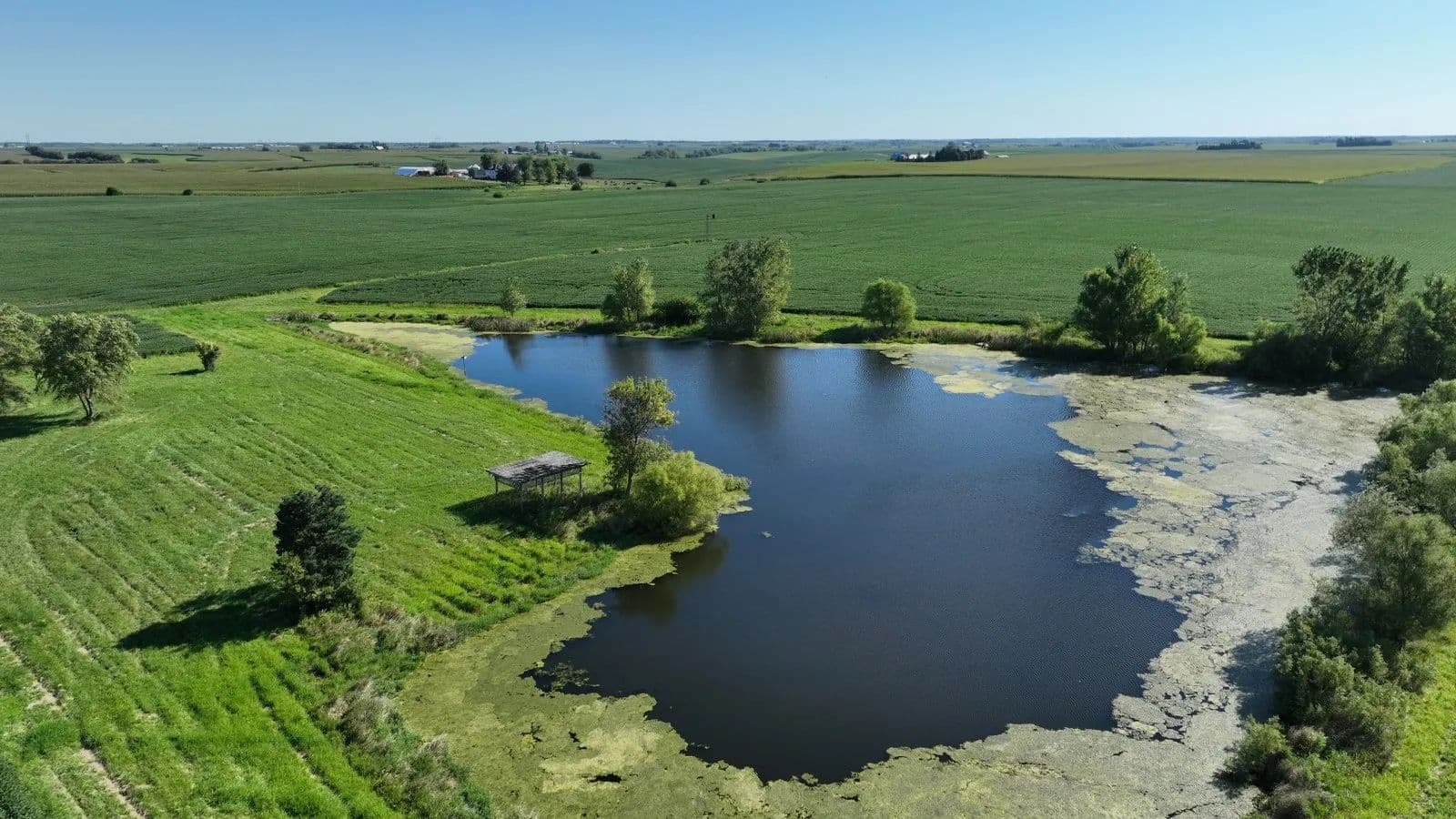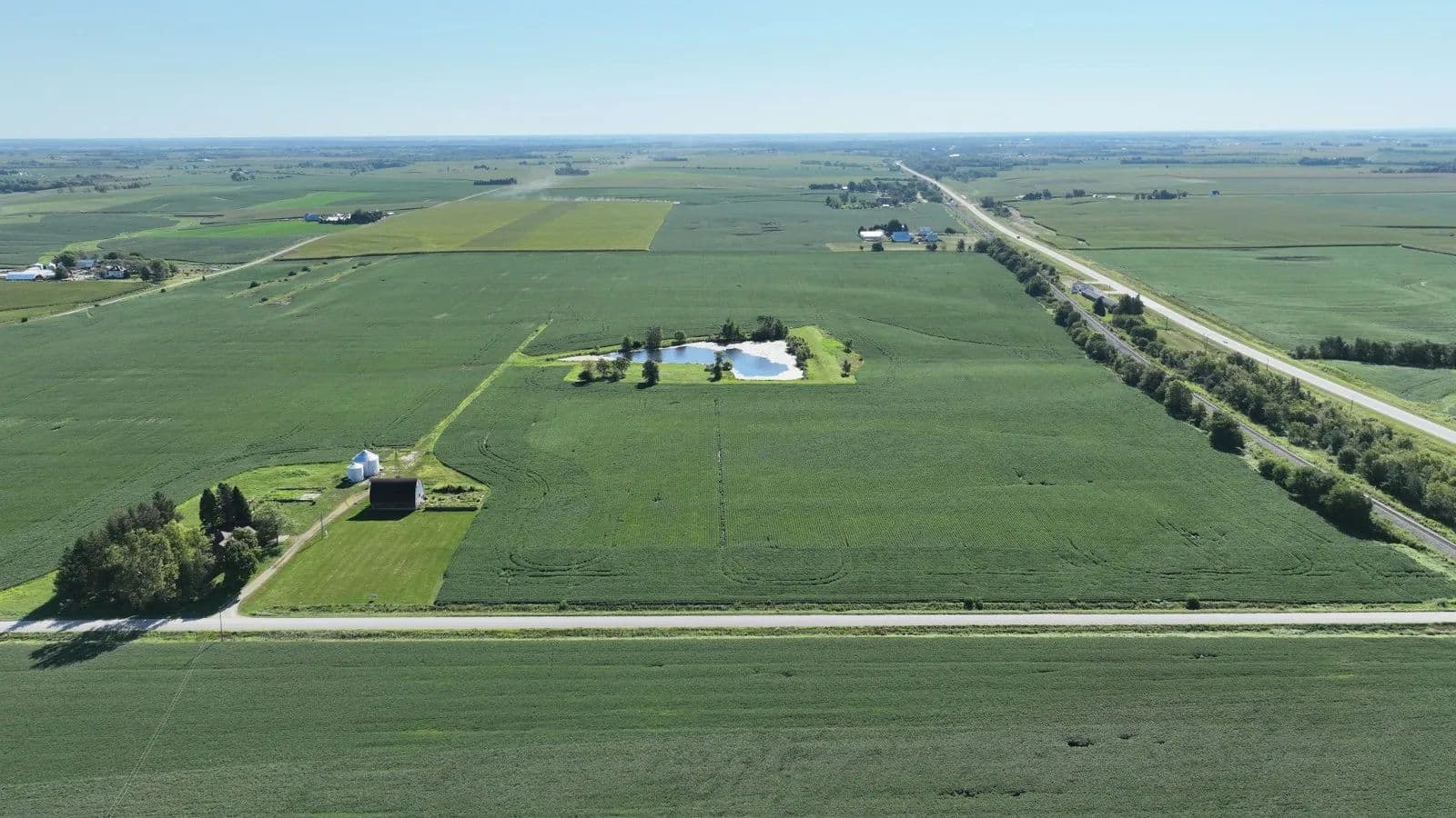 Improvements include a 36'×50' barn (1940), grain bins (approx. 4,000 bu – 1965 and 10,000 bu – 1980), three wells, Alliant electric, and propane tanks serving the house and the large grain bin. A scenic pond—historically stocked with catfish, grass carp, and bluegill—adds recreational and aesthetic value. With productive soils, storage capacity, and reliable utilities, Tract 11 is well-suited for row-crop production, livestock support, or a mixed-use farmstead.