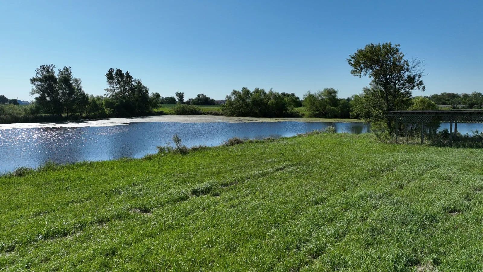 Pond (est. 9–10 ft deep; historically catfish/grass carp/bluegill)