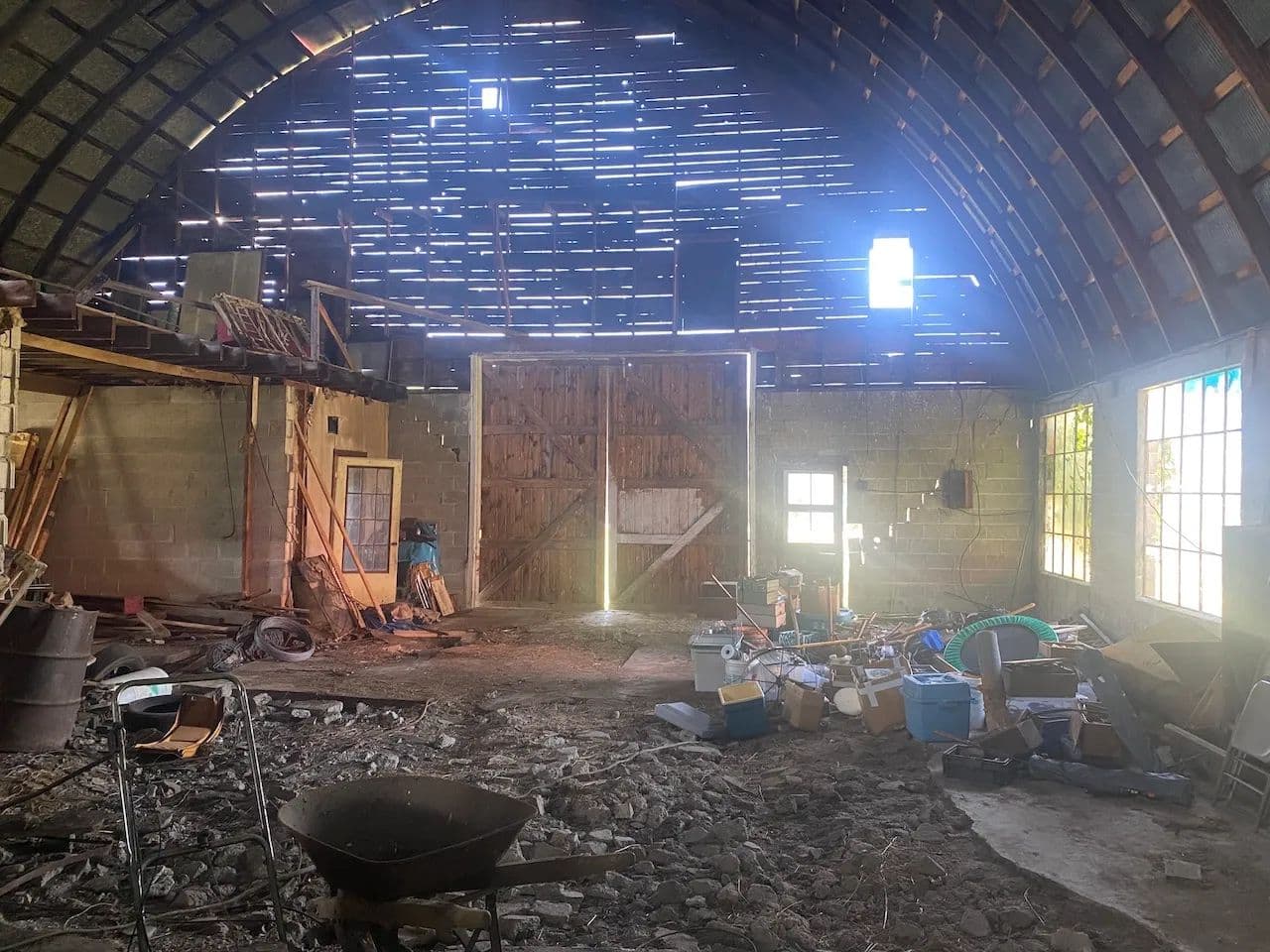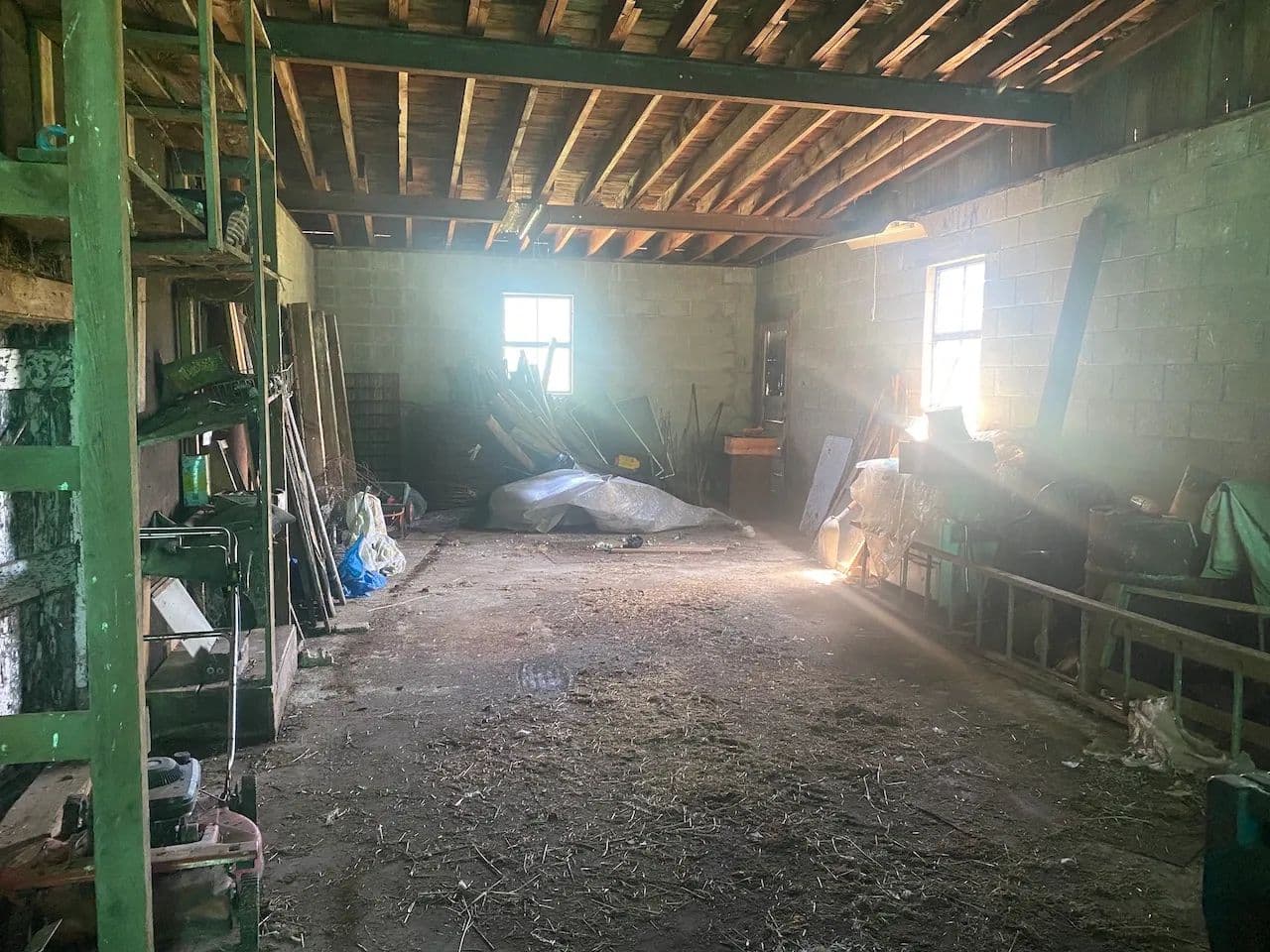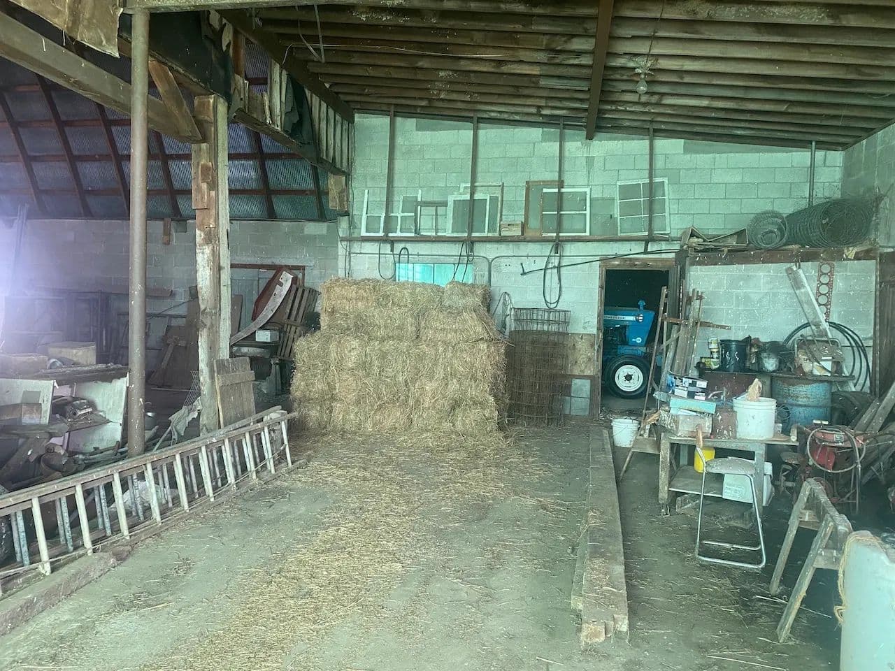 Beyond its building potential, a recent timber cruise revealed over $123,000 in marketable timber ready for harvest. The land includes a large barn with stanchions, a shop, and a gutter cleaner already in place. Several acres of fertile, tillable ground can be rented for extra income, while a small year-round creek meanders through the property.