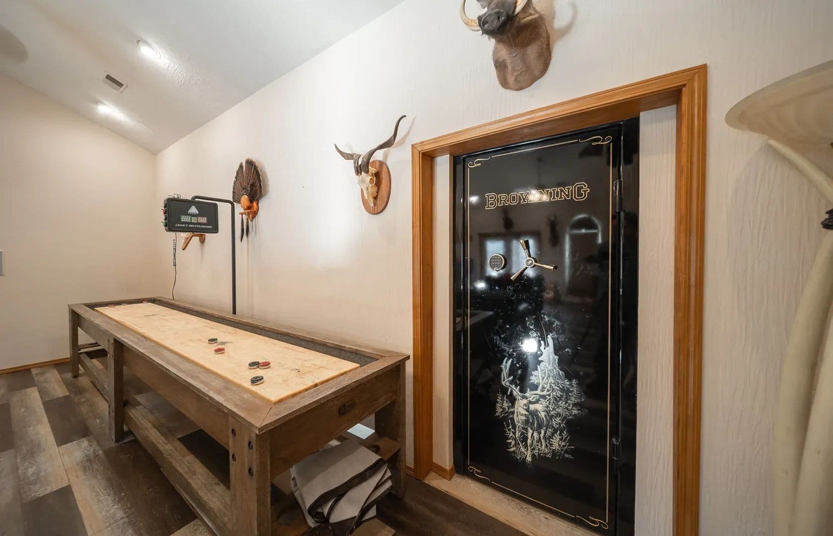 Welcome to Ribbon Drive Retreat, a secluded 42-acre haven set in a park-like setting, tucked away with public access to the Gasconade River at the end of the private driveway. This remarkable property offers the perfect blend of privacy, natural beauty, and convenience, located close to town but worlds away in peace and built as a cozy one-bedroom log cabin, the home has been expanded over time into a spacious 2,900+ sq ft residence featuring 4 bedrooms and 2 full bathrooms. The charm of the original cabin remains, now complemented by thoughtful upgrades and ample space for family and of the home’s standout features is the stunning living/game room with soaring ceilings, a gas fireplace, and walls lined with OSB beneath the drywall, making it effortless to hang taxidermy or artwork wherever you please—a dream setup for hunters or outside and enjoy a private resort-like atmosphere with a state-of-the-art 8-foot diving pool, hot tub, and expansive sun deck, perfect for entertaining or relaxing in nature. Additional highlights include a climate-controlled gun room and a whole-house generator for ultimate comfort and peace of the outdoor enthusiast, Ribbon Drive Retreat delivers outstanding deer and turkey hunting, private shooting range, mature timber, private orchard, and trails that wind through the serene landscape. The park-like grounds offer plenty of space to explore, unwind, and reconnect with you're looking for a full-time residence, hunting lodge, or weekend escape, Ribbon Drive Retreat offers a rare combination of privacy, luxury, and natural beauty, all within easy reach of town and river adventure.