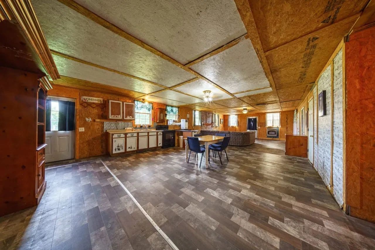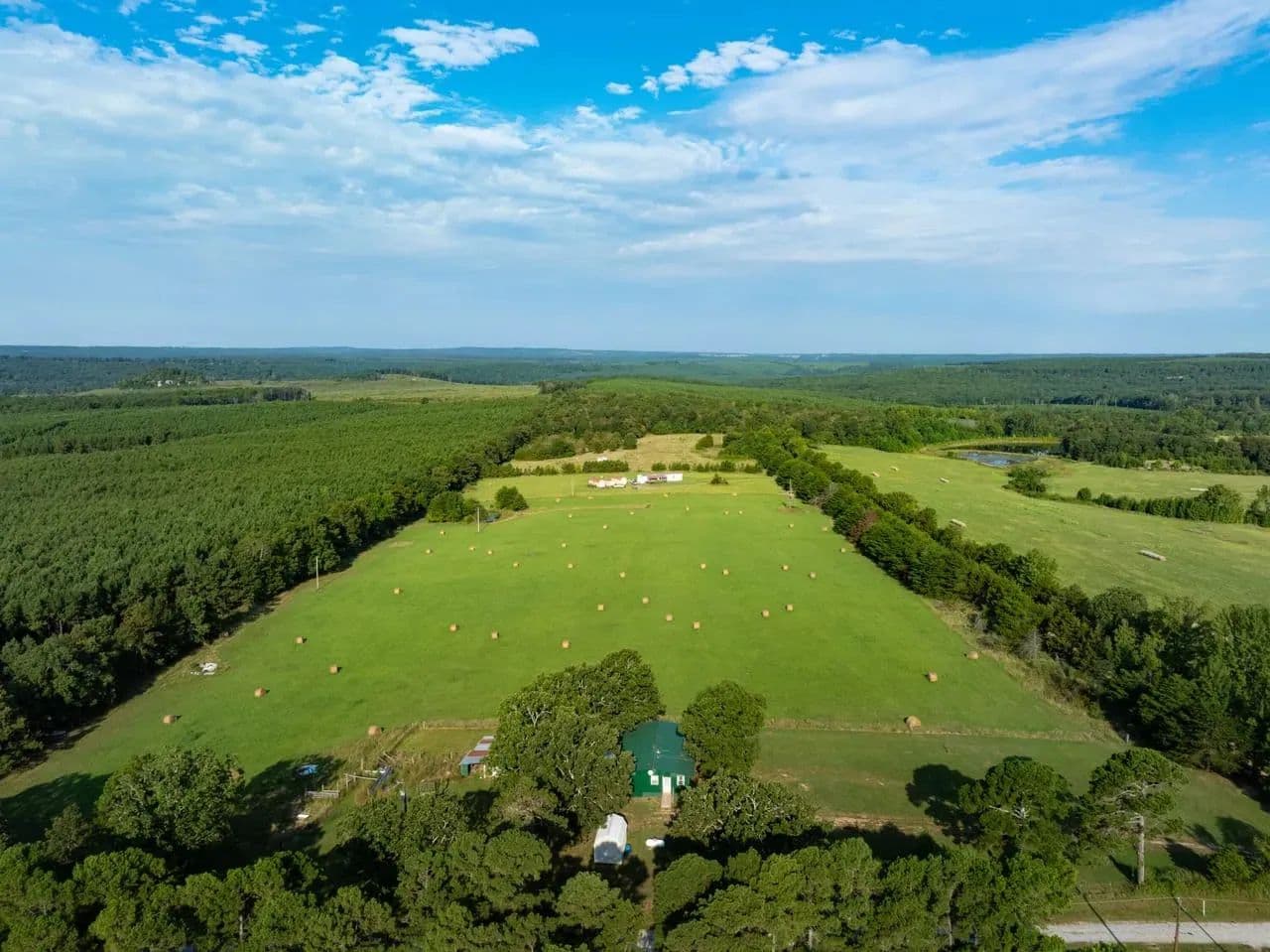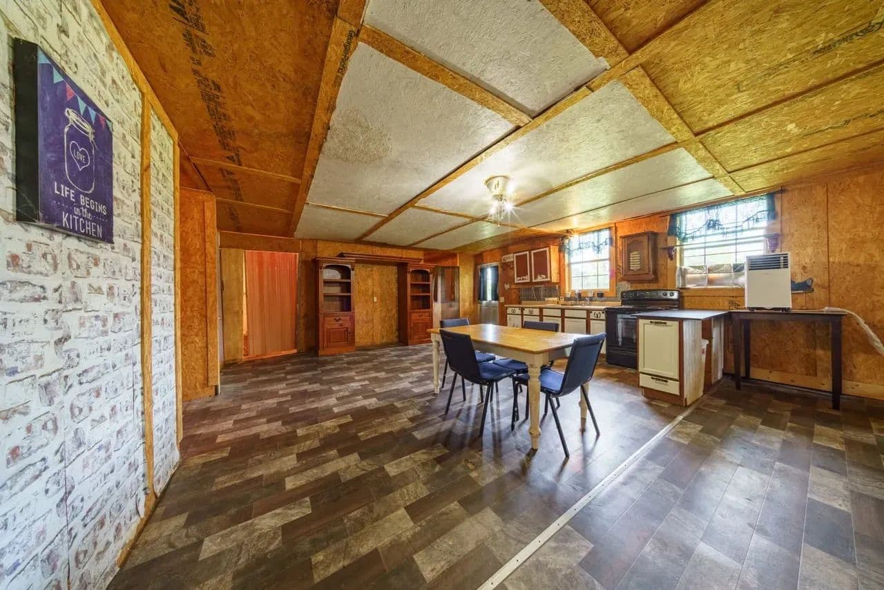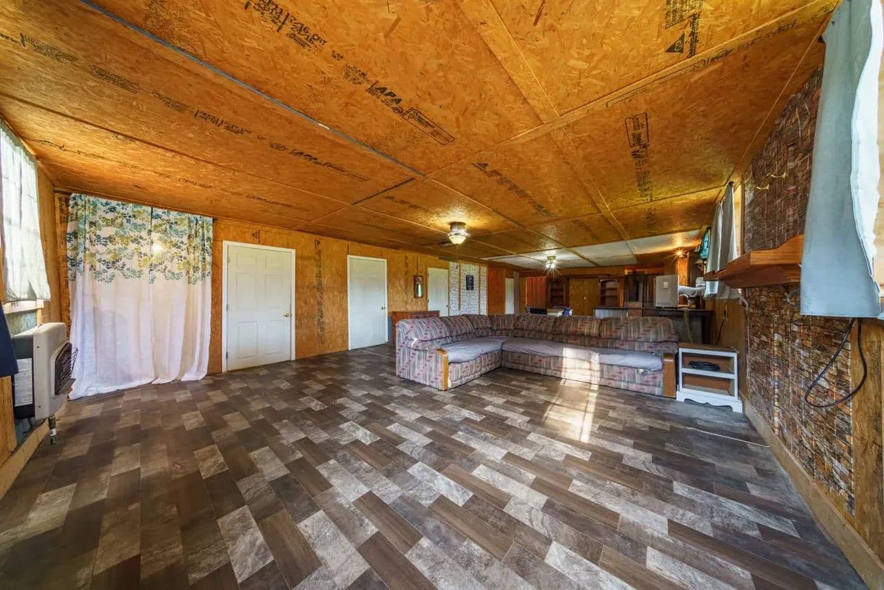 This cozy homestead features a 3-bed, 2-bath rustic cabin—including a roomy laundry area and an oversized walk-in pantry—perfect for fed-up hunters returning from the field. An expansive 800 sq ft covered back porch offers panoramic views of open pastures dotted with frequent sightings of deer, turkey, foxes, and more.