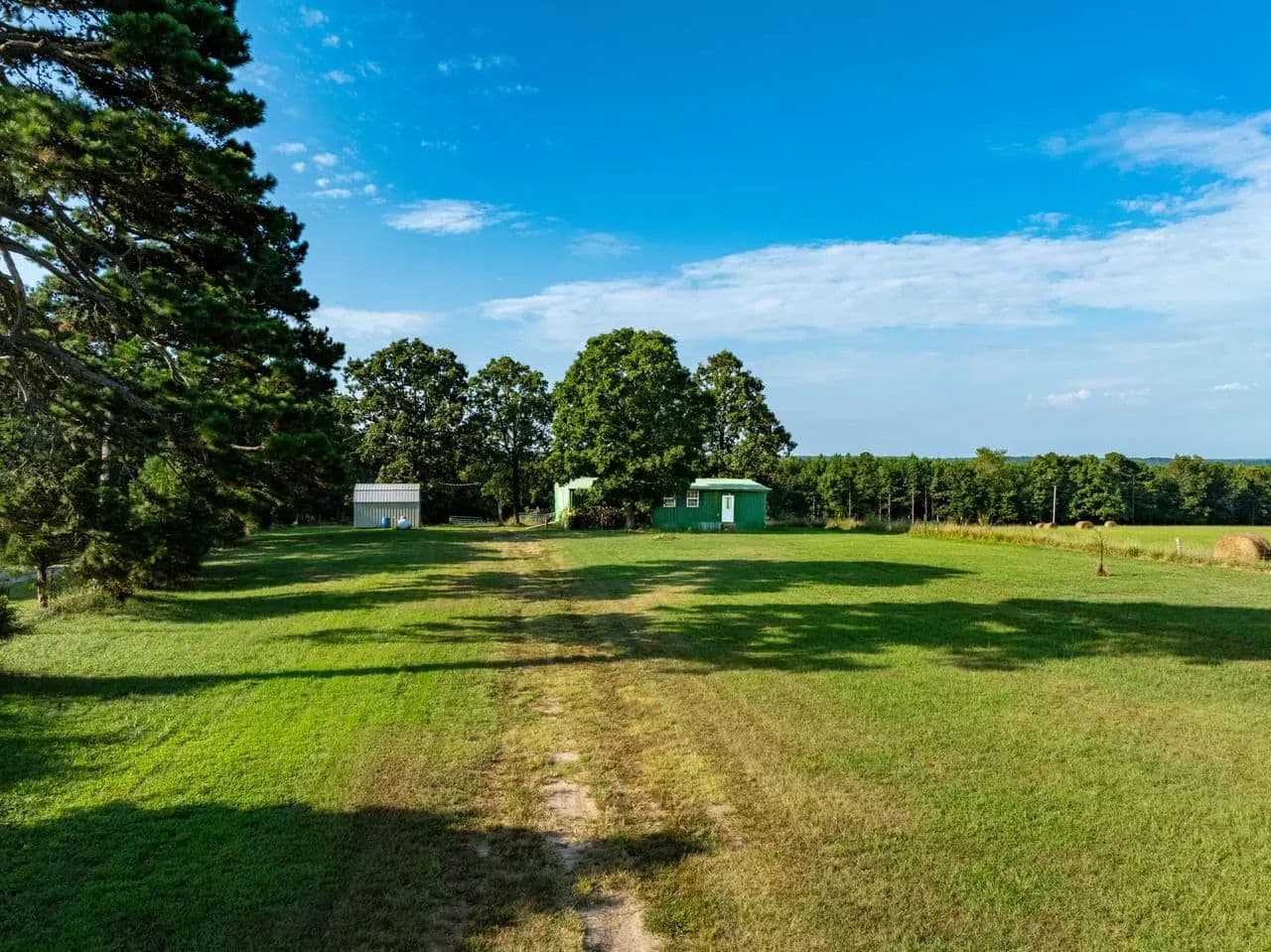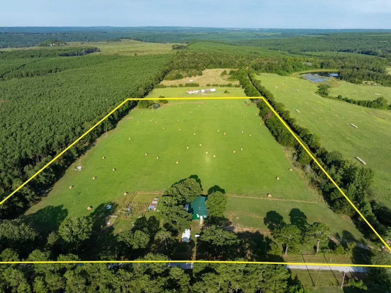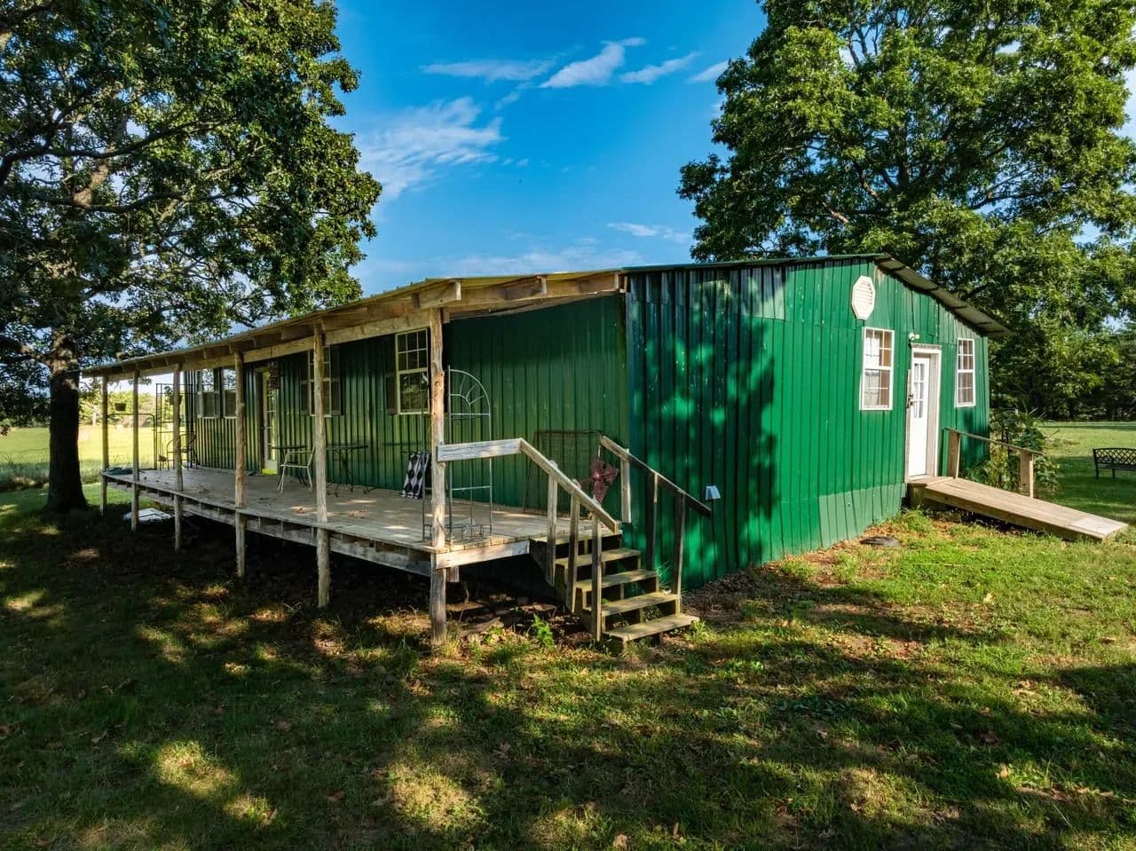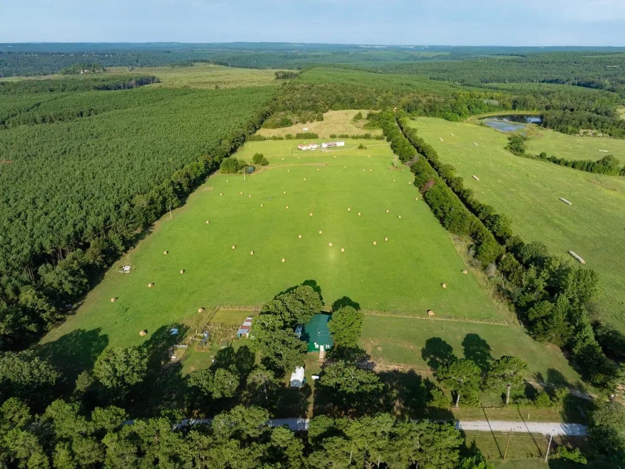 This cozy homestead features a 3-bed, 2-bath rustic cabin—including a roomy laundry area and an oversized walk-in pantry—perfect for fed-up hunters returning from the field. An expansive 800 sq ft covered back porch offers panoramic views of open pastures dotted with frequent sightings of deer, turkey, foxes, and more.