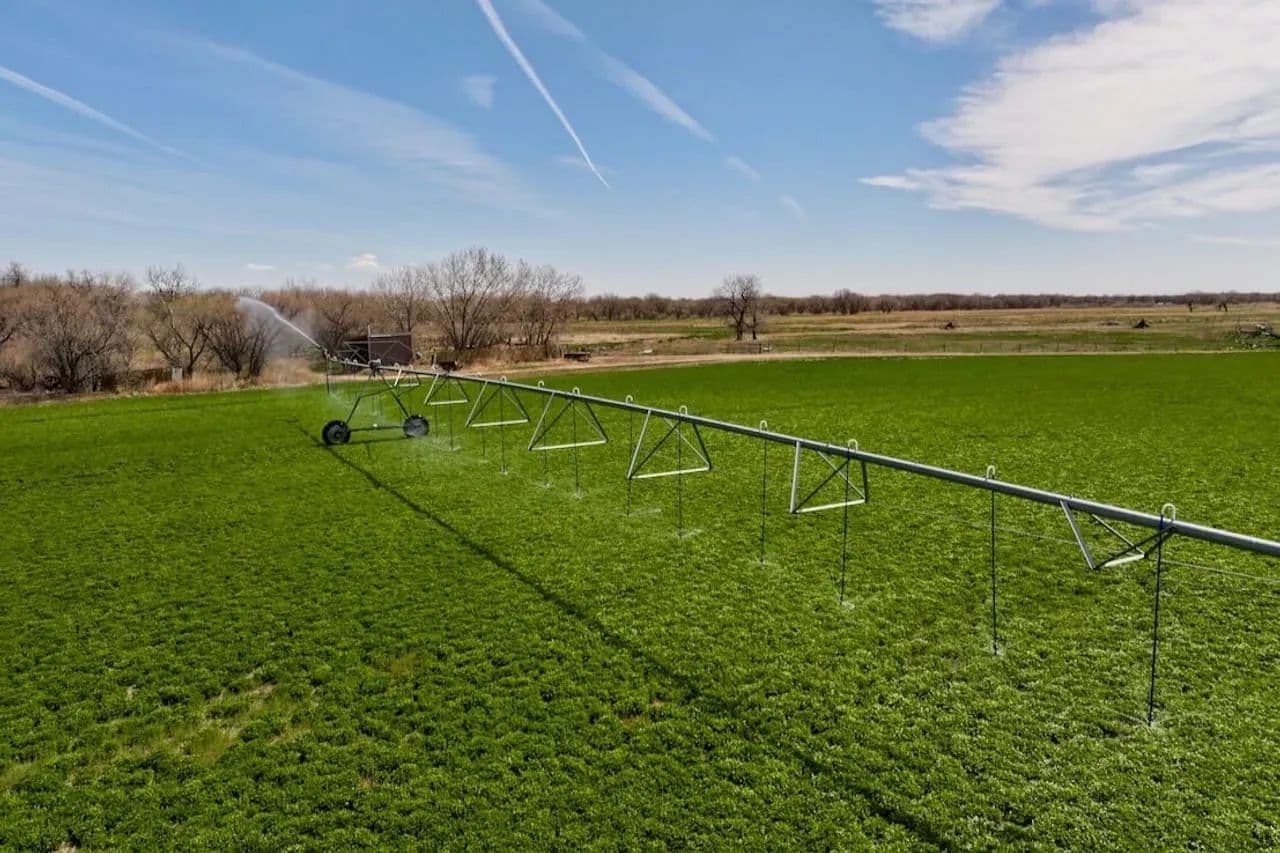 Faith Farm holds valuable water rights, which irrigate approximately 50 acres of alfalfa under a center pivot. In an average year, the irrigated land consistently produces over four tons of hay per acre, making it a reliable contributor to the property’s agricultural value.