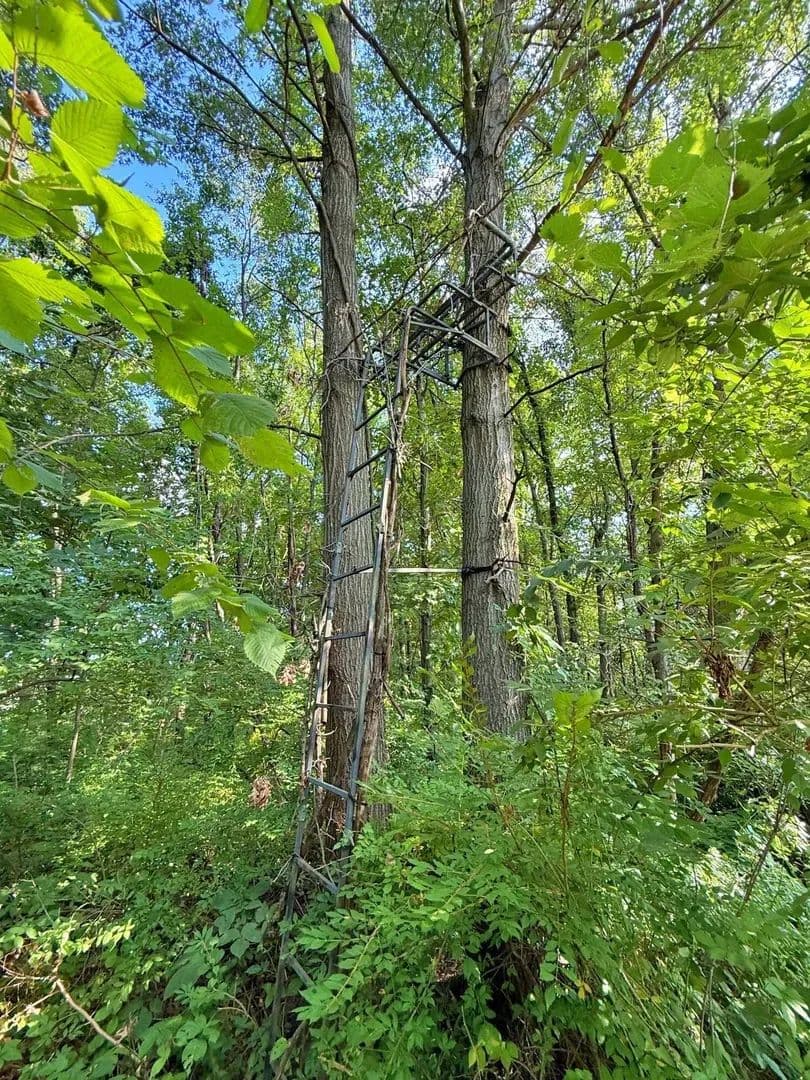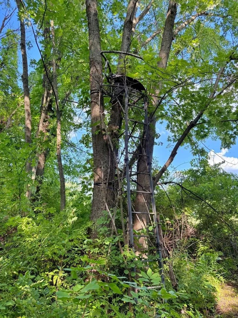 Multiple tree stands already set for hunting season.