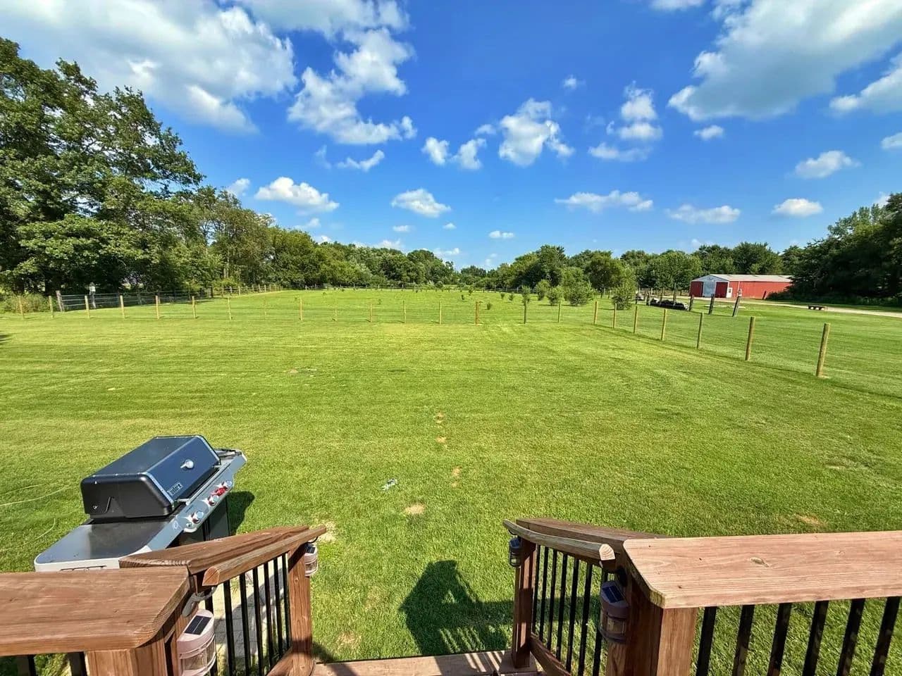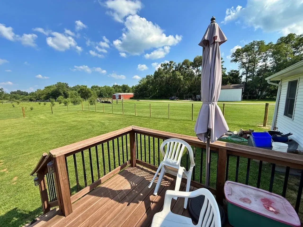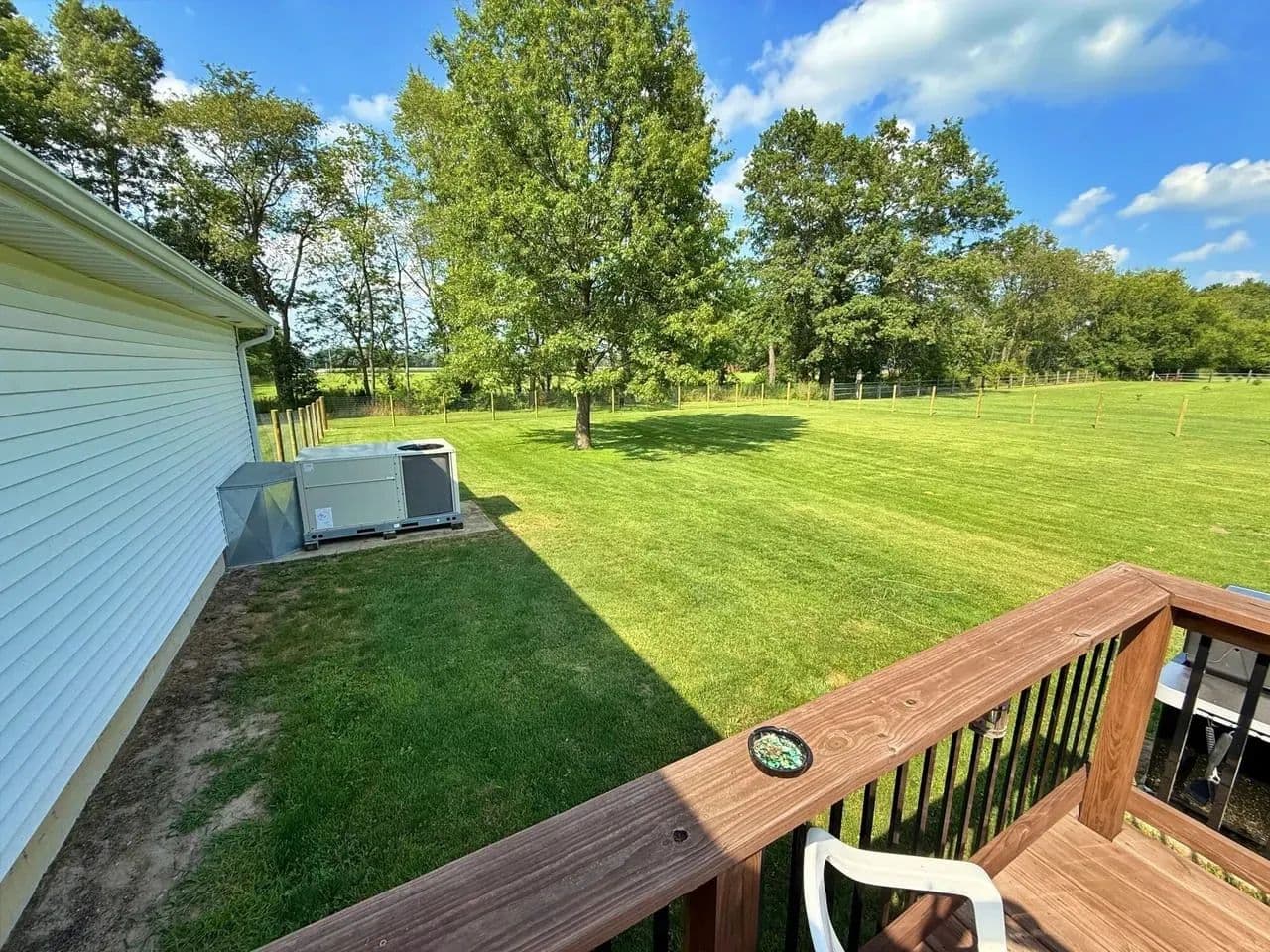 Back deck overlooking a fenced-in-yard.