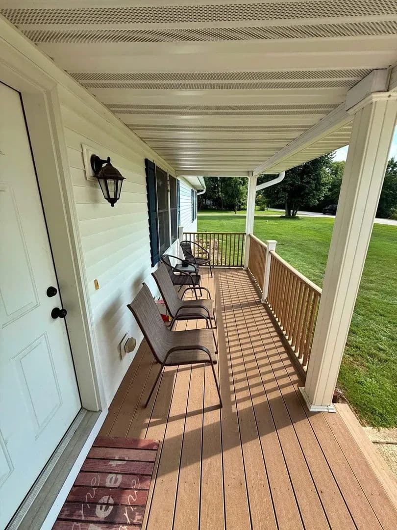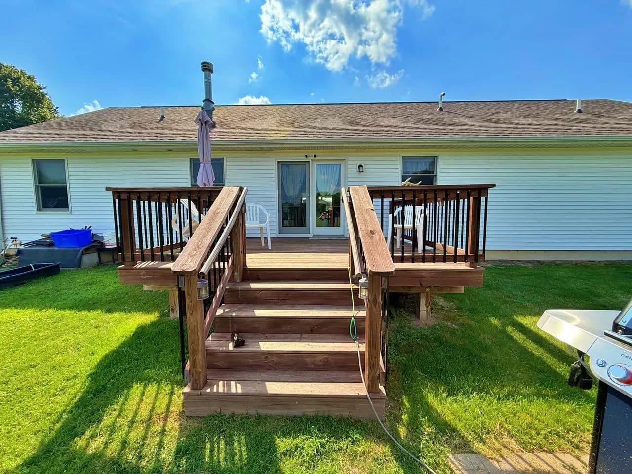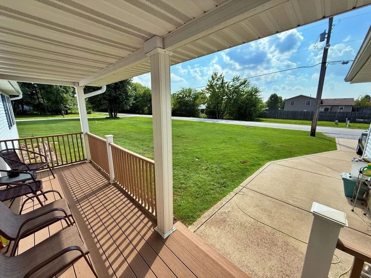 Back deck overlooking a fenced-in-yard.