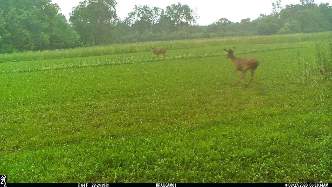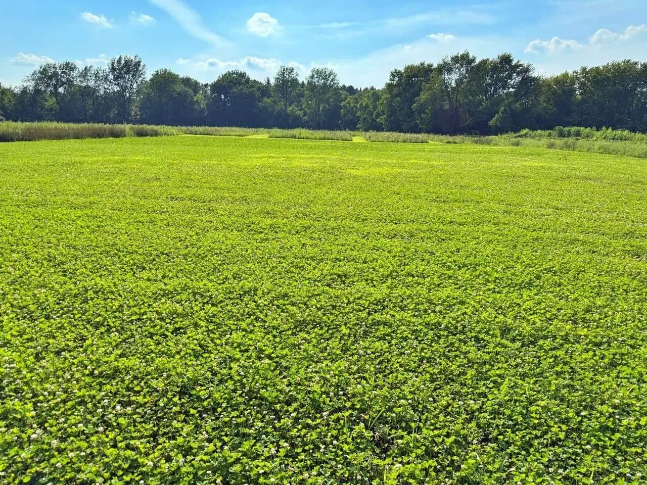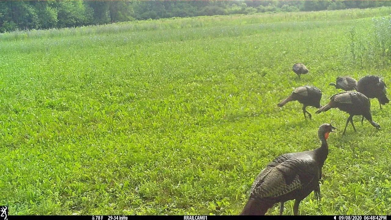 Several open fields, formerly tillable, now planted in clover, brassicas and alfalfa for wildlife.