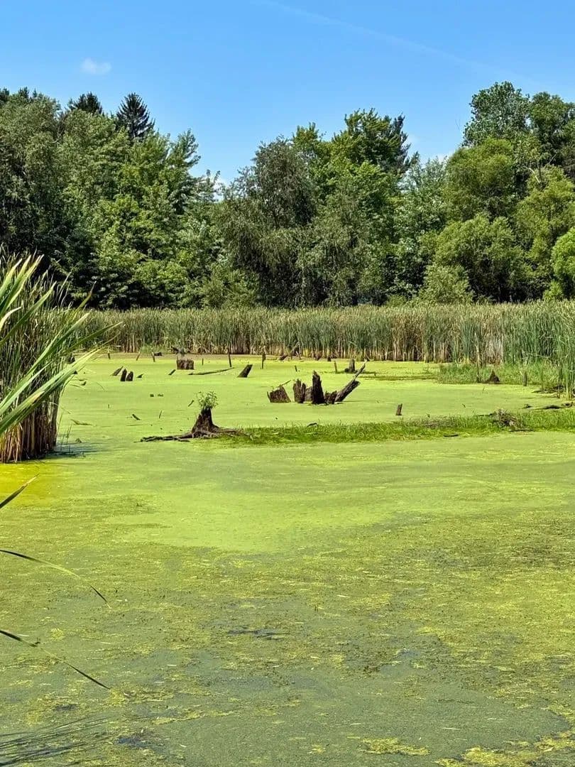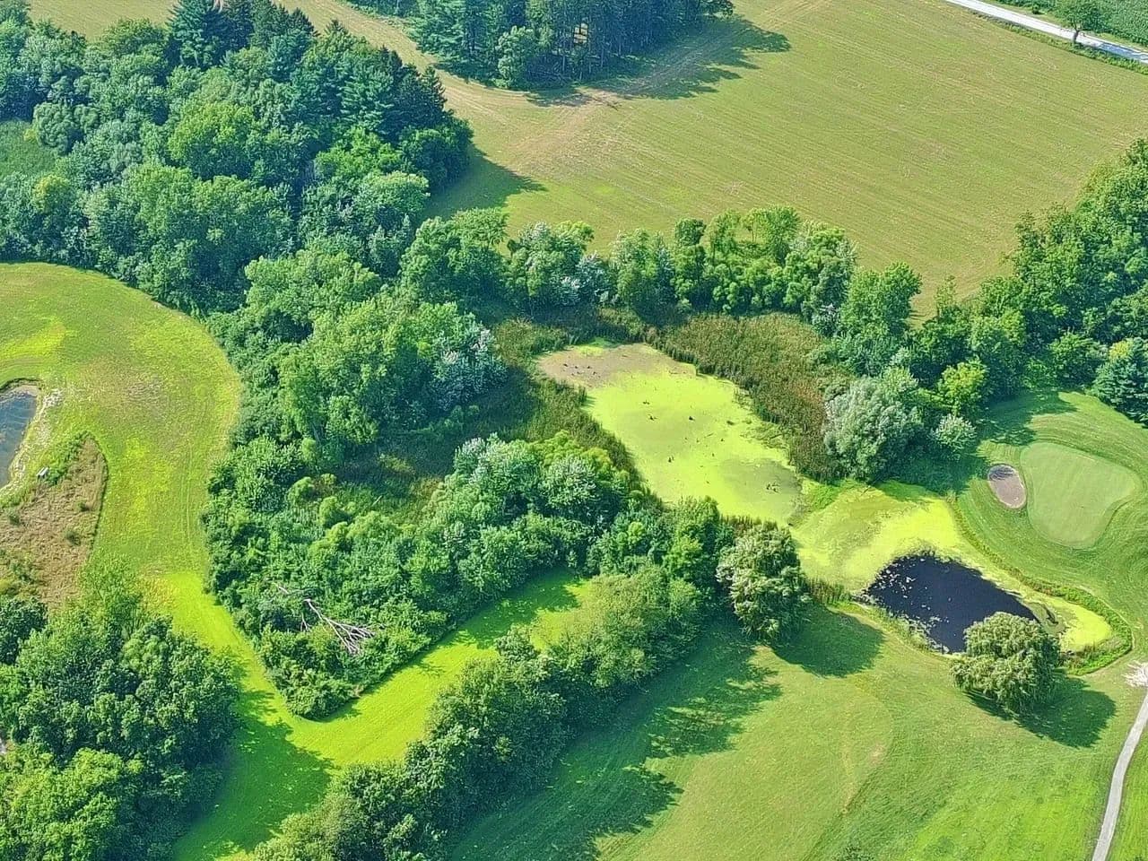 A shallow swamp in the northeast corner and a small pond, along with naturally occurring wetland areas, provide ideal conditions for waterfowl and wildlife.