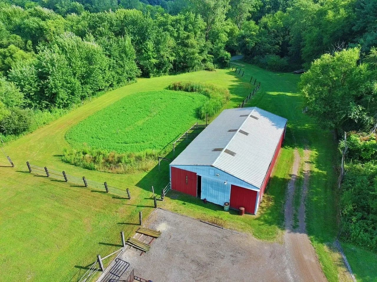 Existing gravel training track right on the property for riding and conditioning horses, running or biking.