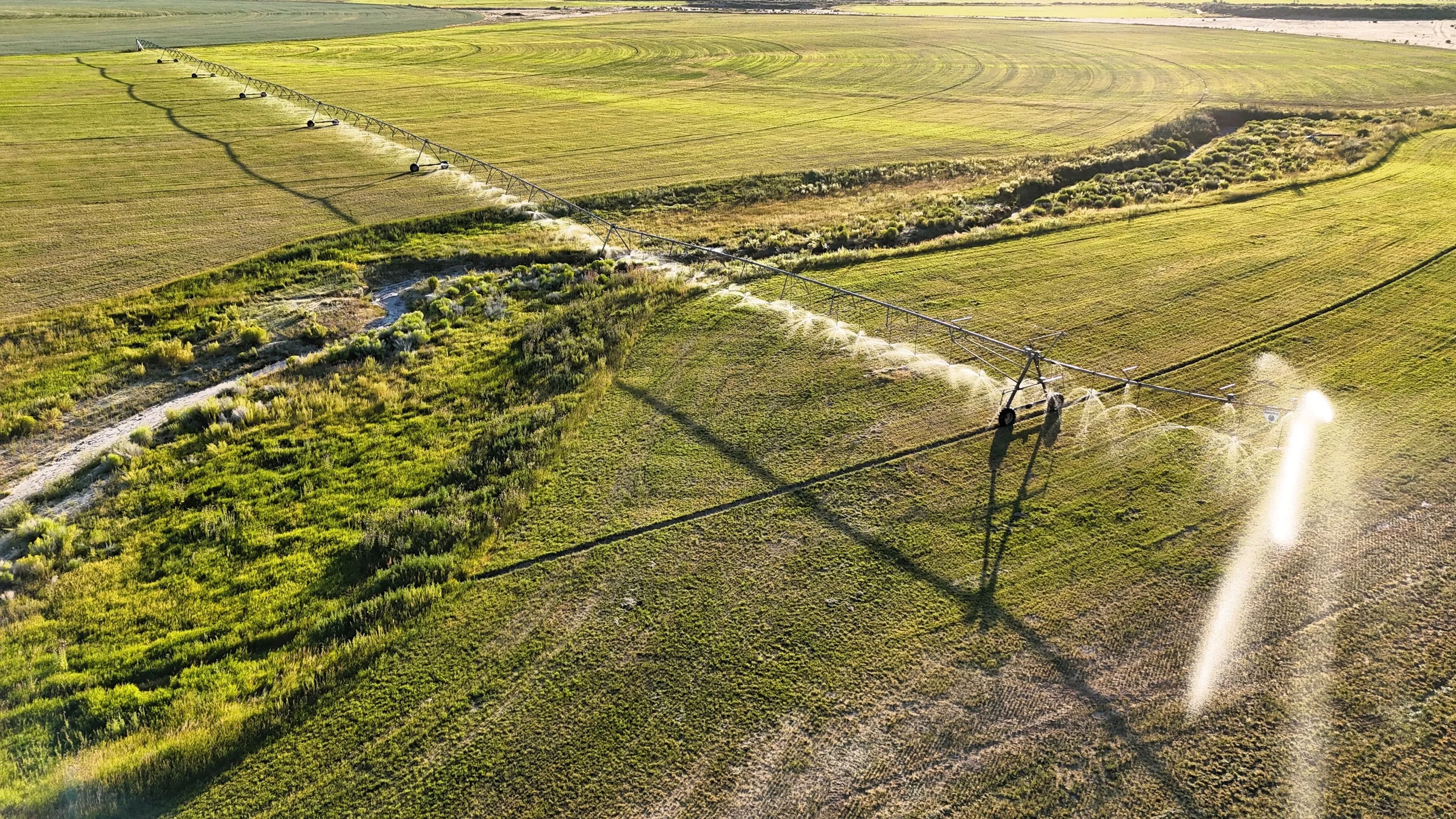 In addition to the farm’s high-quality hay production, the property features a robust water management system, including an updated water delivery system with holding ponds and a new custom pivot system using a variable frequency drive (VFD) for efficient irrigation. The property is also supplied with plenty of irrigation shares and water rights, ensuring the long-term viability of the operation.