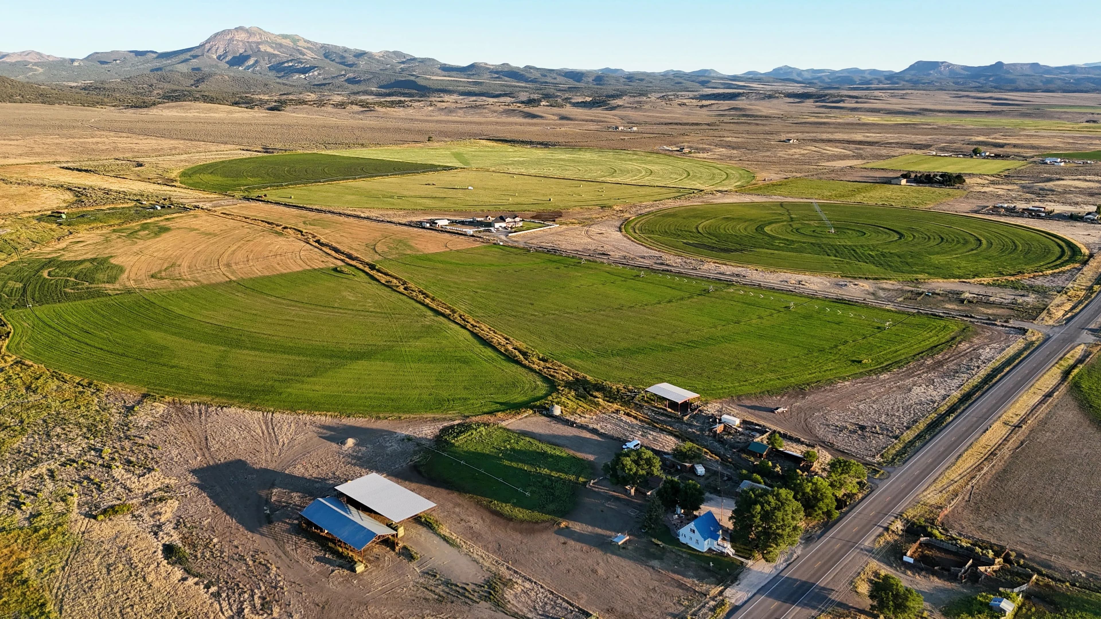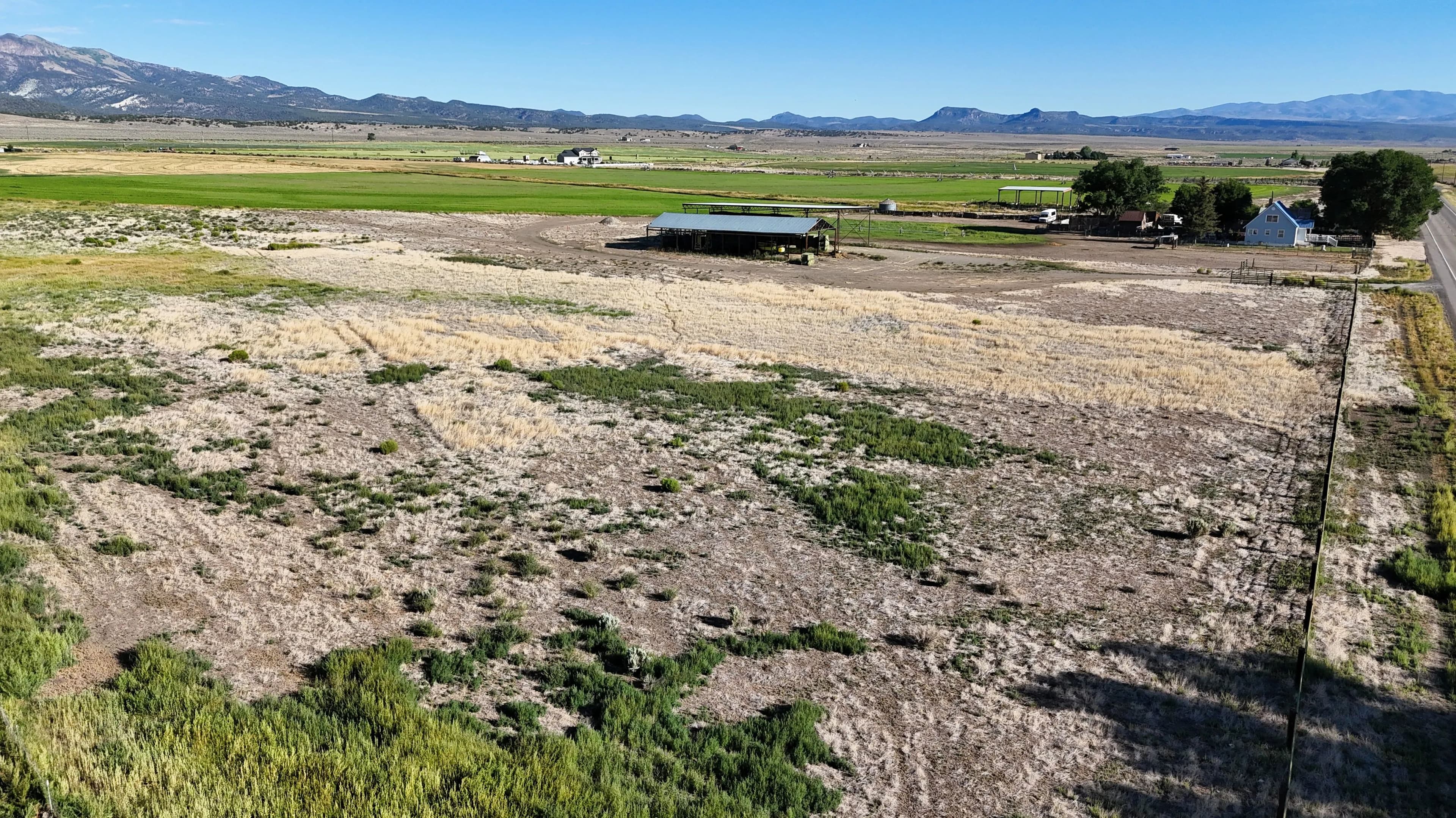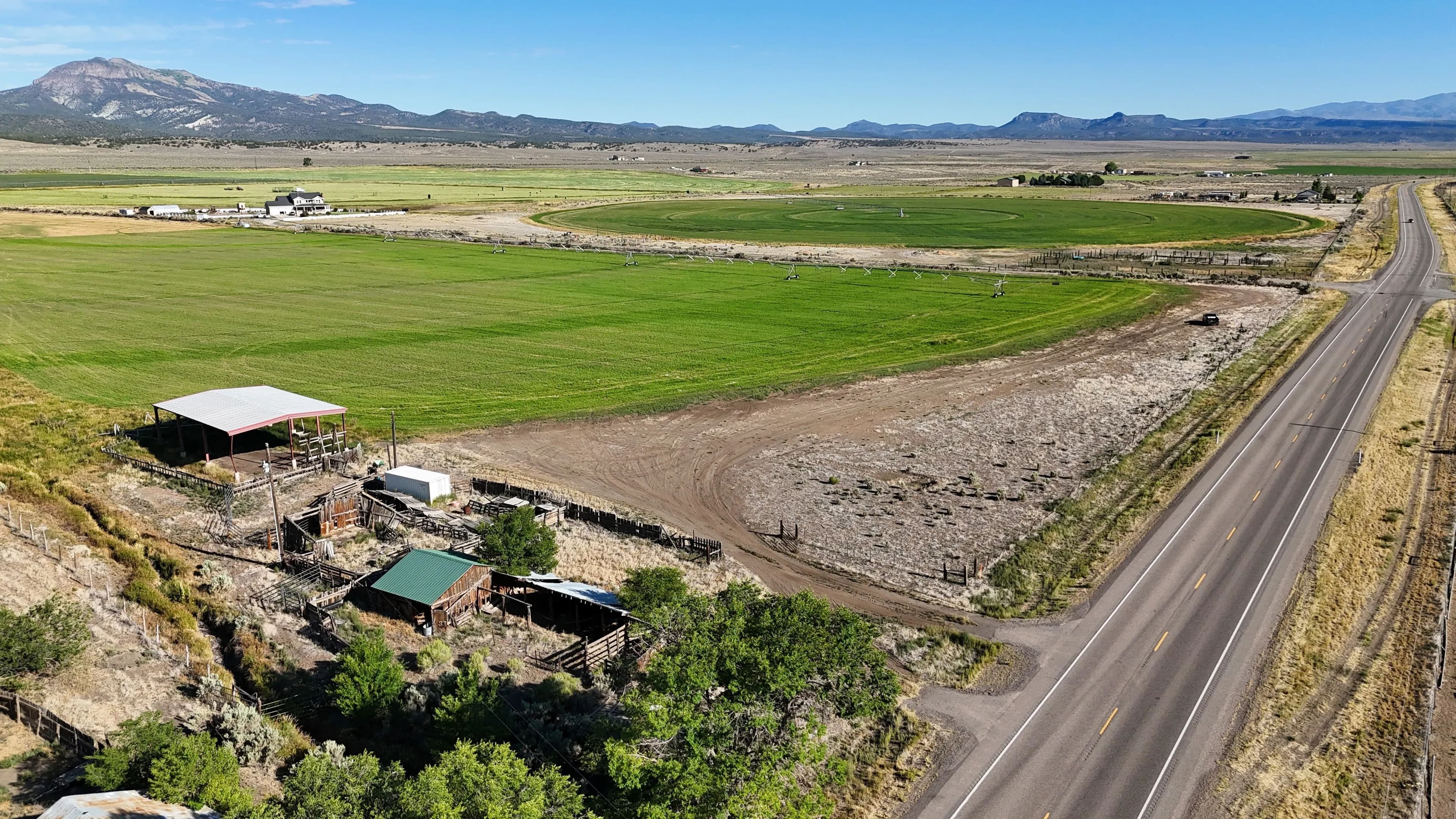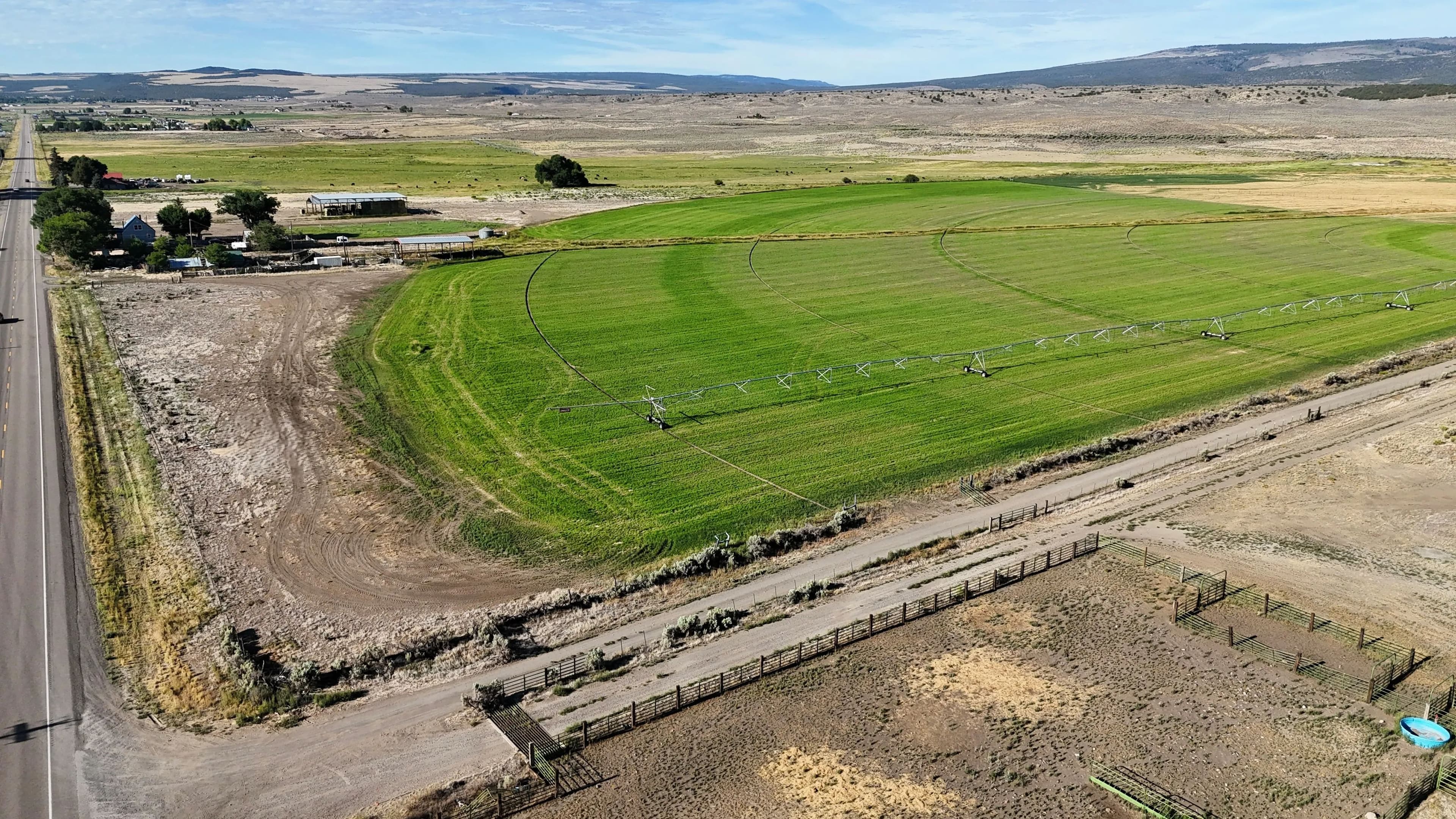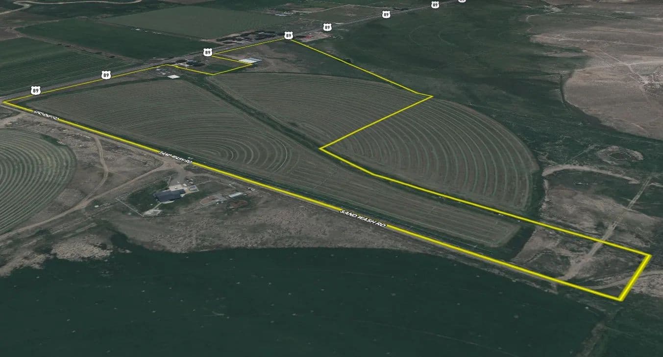 50 acres near Panguitch with Highway 89 frontage, utilities, water rights, barns, irrigation, and agricultural setup. Flat, accessible land with development or agricultural potential.