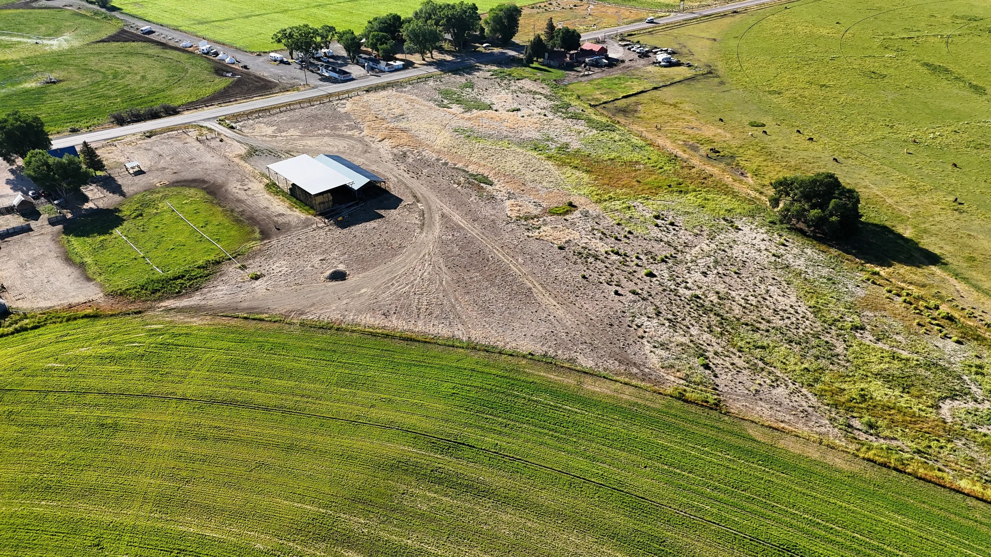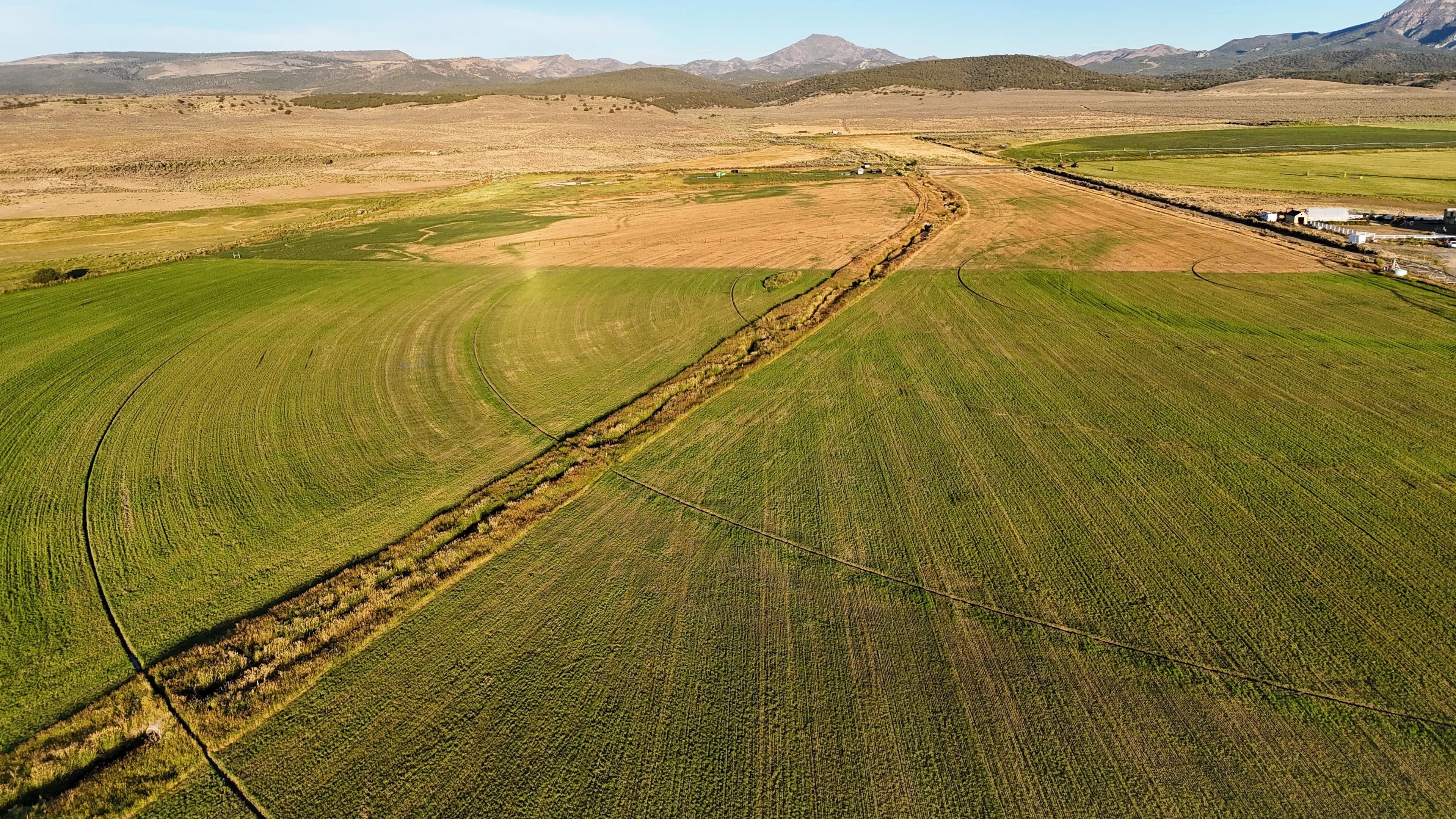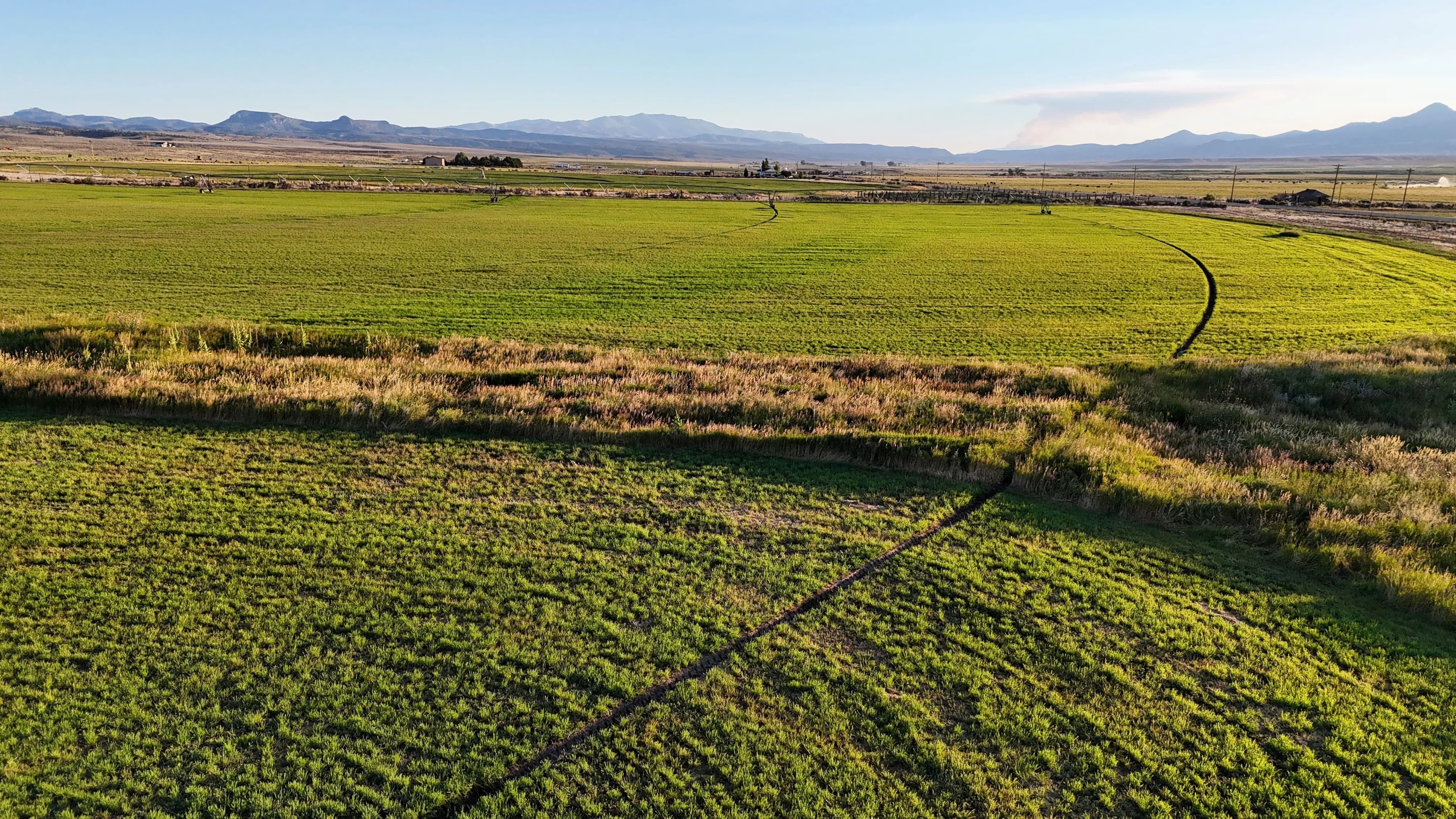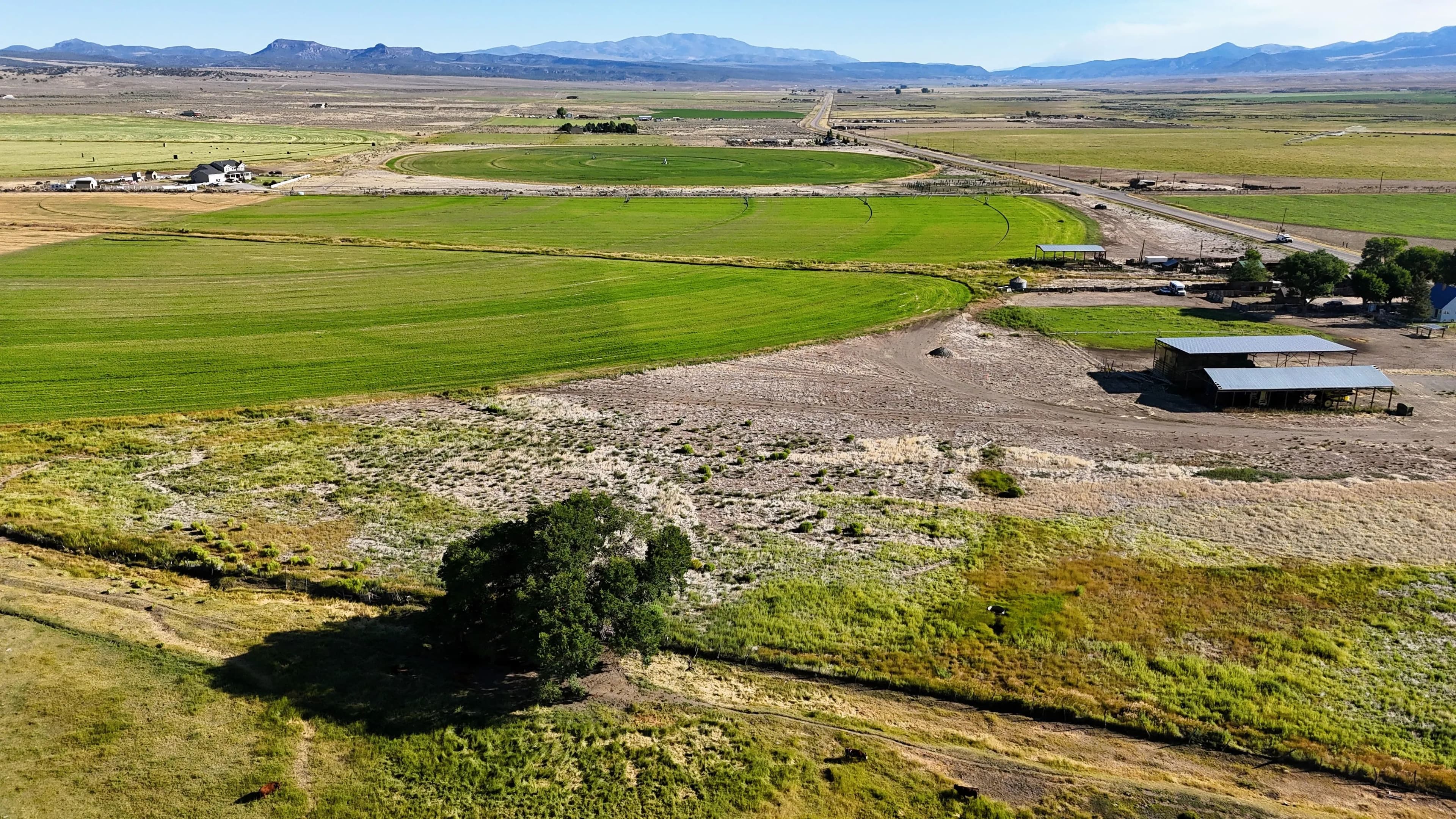 50 acres near Panguitch with Highway 89 frontage, utilities, water rights, barns, irrigation, and agricultural setup. Flat, accessible land with development or agricultural potential.