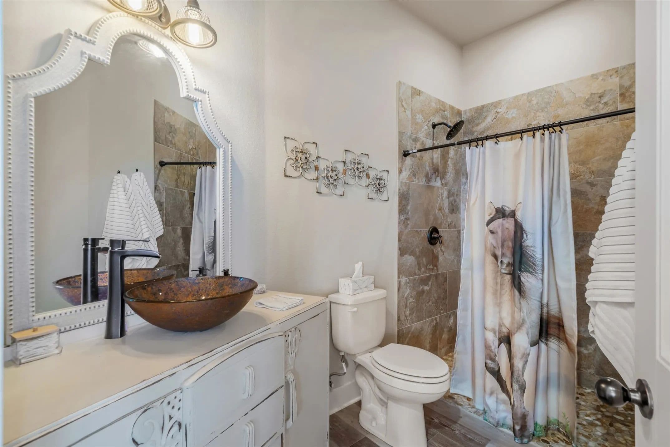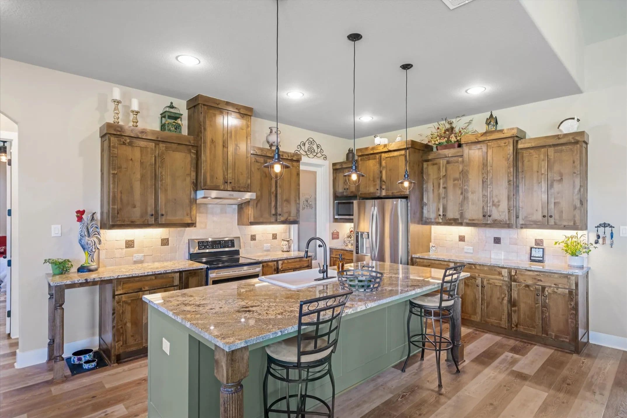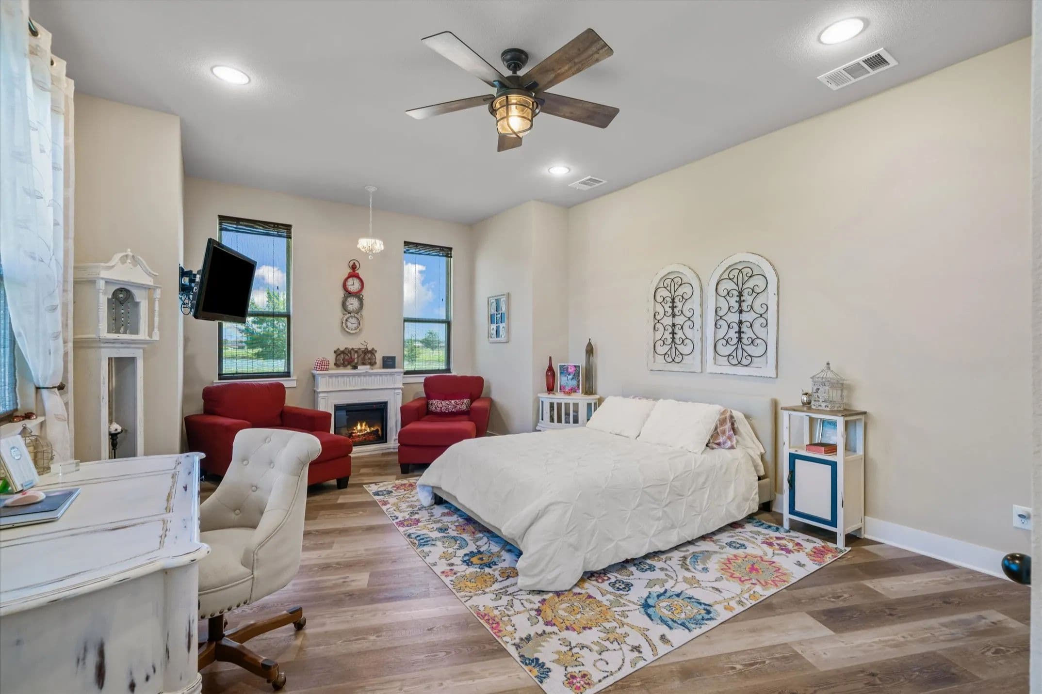 Private Country Retreat on 10 Acres with No HOA! Welcome to your own slice of East Texas paradise, custom-built on 10 beautiful acres of highly sought-after sandy loam soil. This stunning 3-bedroom, 3-bath home perfectly blends rustic charm with modern comforts, featuring an open floor plan, soaring cathedral ceilings, and walls of windows that flood the space with natural light. Designed for multi-generational living or hosting guests, the home offers two spacious primary suites, each with its own fireplace and luxurious ensuite bath complete with double vanities, soaking tub, separate shower, and massive walk-in closet. The heart of the home is the chef’s kitchen, featuring a large island, warm knotty alder pine cabinetry, stainless steel appliances (including a trash compactor), and a walk-in pantry for plenty of storage. The separate utility room includes space for a full-size washer and dryer, a sink, drip-dry area, and room for an additional freezer. Extra touches throughout include luxury vinyl plank flooring, 8-foot doors, vaulted and tray ceilings, custom lighting, and a true concrete safe room. The oversized 2-car garage boasts a dog-washing station