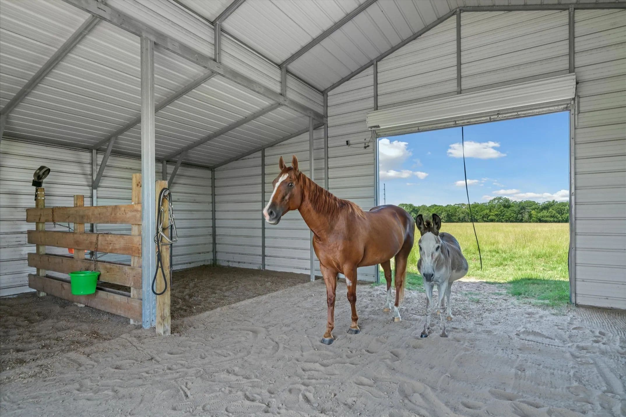 and extra shop storage space. Outside, enjoy your own private stocked pond — home to bass, perch, crappie, and catfish. The 1,250 sq ft barn with sandy floors offers 4 movable stalls, two roll-up doors, and is turnkey-ready for your animals or boarding income. With 8 of the 10 acres AG Exempt and a secondary agricultural water source, the property is primed for hobby farming or ranch life. There’s plenty of room to add a shop, swimming pool, or RV parking, and the