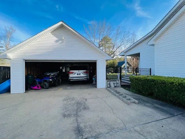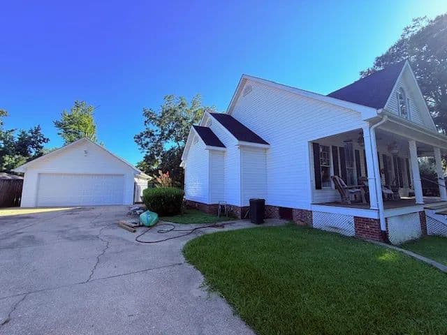 Exquisite custom home nestled on a sprawling one-acre lot, offering a tranquil country ambiance while being just minutes away from Tylertown's vibrant amenities. This captivating residence spans an expansive 2761 square feet of meticulously designed living space, featuring four bedrooms, 2.5 baths, and a host of luxurious amenities. The interior showcases stunning cabinetry, soaring cathedral ceilings, an inviting office space, and an upstairs area that houses one of the bedrooms. The well-appointed kitchen seamlessly transitions into the spacious living room, creating an ideal setting for both relaxation and entertainment. Hardwood floors grace the majority of the home, adding warmth and elegance. Outside, the front porch provides a picturesque vantage point, offering views of majestic hardwoods dotting the yard and the paved driveway. At the rear, a charming back porch overlooks the private, fenced-in backyard, complete with a superbly crafted heated and cooled "she shed" perfect for pursuing hobbies or additional storage. The expansive one-acre lot also features a separate building for storing lawn and yard equipment. Completing this remarkable property is a matching on-slab garage, adding both convenience and charm to the overall appeal. This is a truly exceptional opportunity to embrace a lifestyle of comfort, elegance, and rural serenity, all within reach of Tylertown's conveniences and attractions.