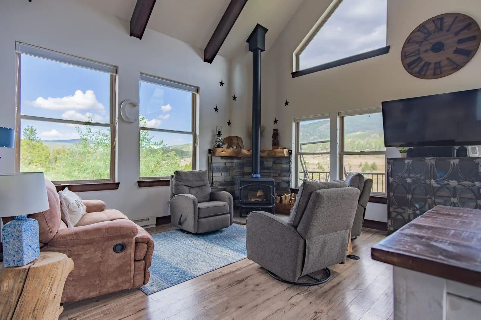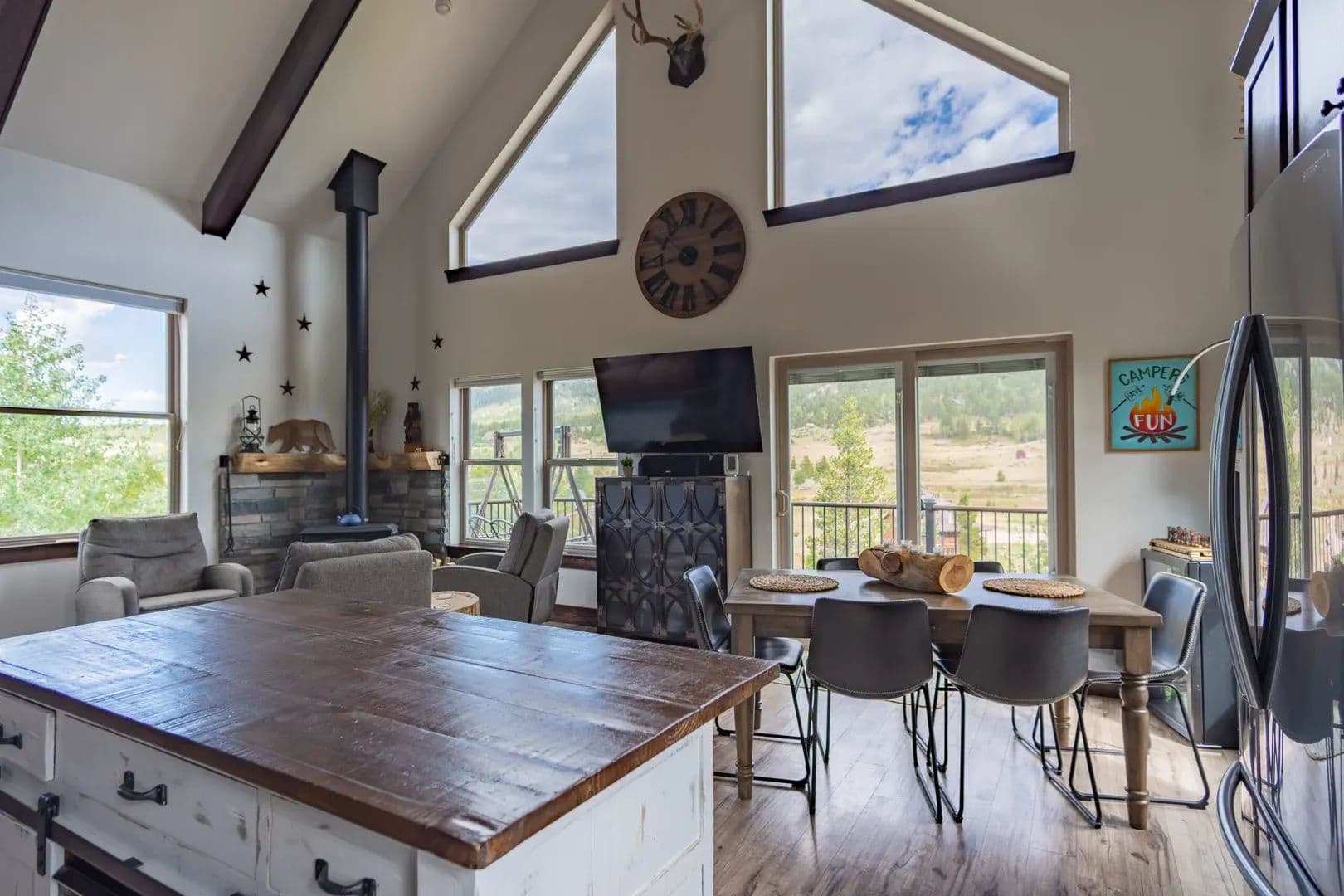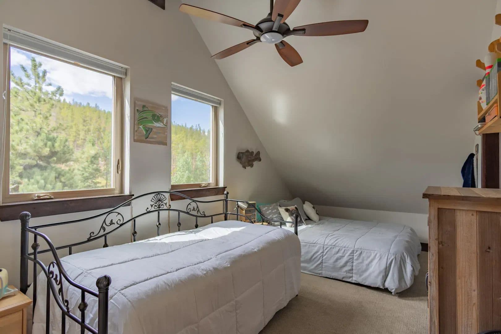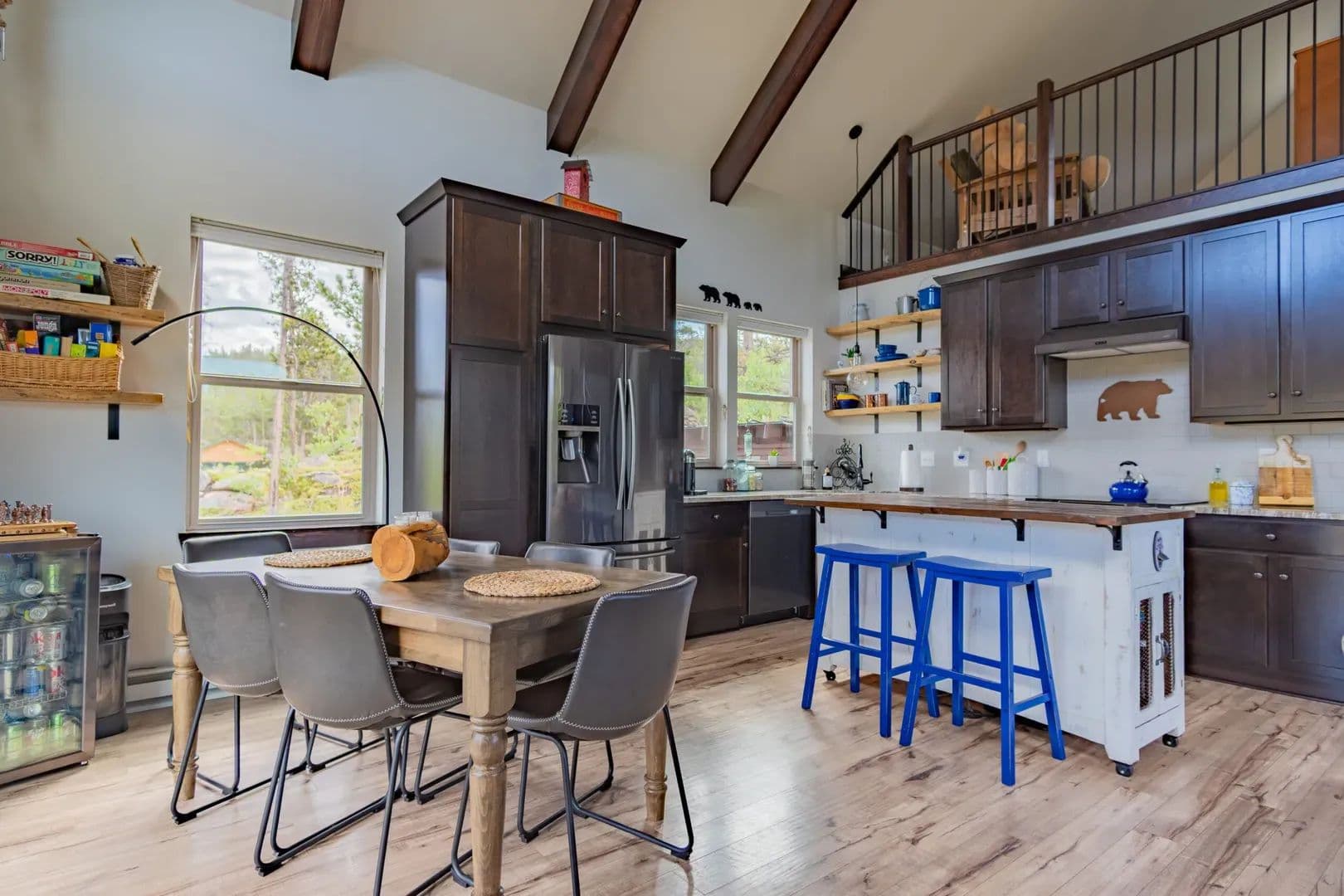Just over an hour NW of Fort Collins and in the sought after mountain enclave that is Crystal Lakes, this beautiful riverfront mountain home on just under 1.5 acres just might surprise you. With over 2100 sqft of space on 3 levels, this well thought out home brings nature indoors. Positioned perfectly on the property, and with large windows to bring in the views, there is room for family and guests to enjoy the Colorado mountains year round. Land This 1.48 acre parcel is sloped toward the North Fork of the Poudre River, with frontage on both sides, and the home is positioned perfectly to take advantage of the topography and the views. Surrounded by towering pines, mountain views and the sound of the river, you’re transported into a place that gives you respite from the everyday. With satellite available everywhere now, you can still check in with the real world anytime you like, but you probably won’t choose to. The Crystal Lakes community is tight knit, well organized and active if you want to participate. National Forest surrounds you and there is access in a multitude of places for you to enjoy all that has to offer. Even though you’ll feel miles away from civilization, you’re only about 15 minutes from Red Feather where a grocery/hardware store has many essentials. There are even a couple of restaurants and a post office as well.