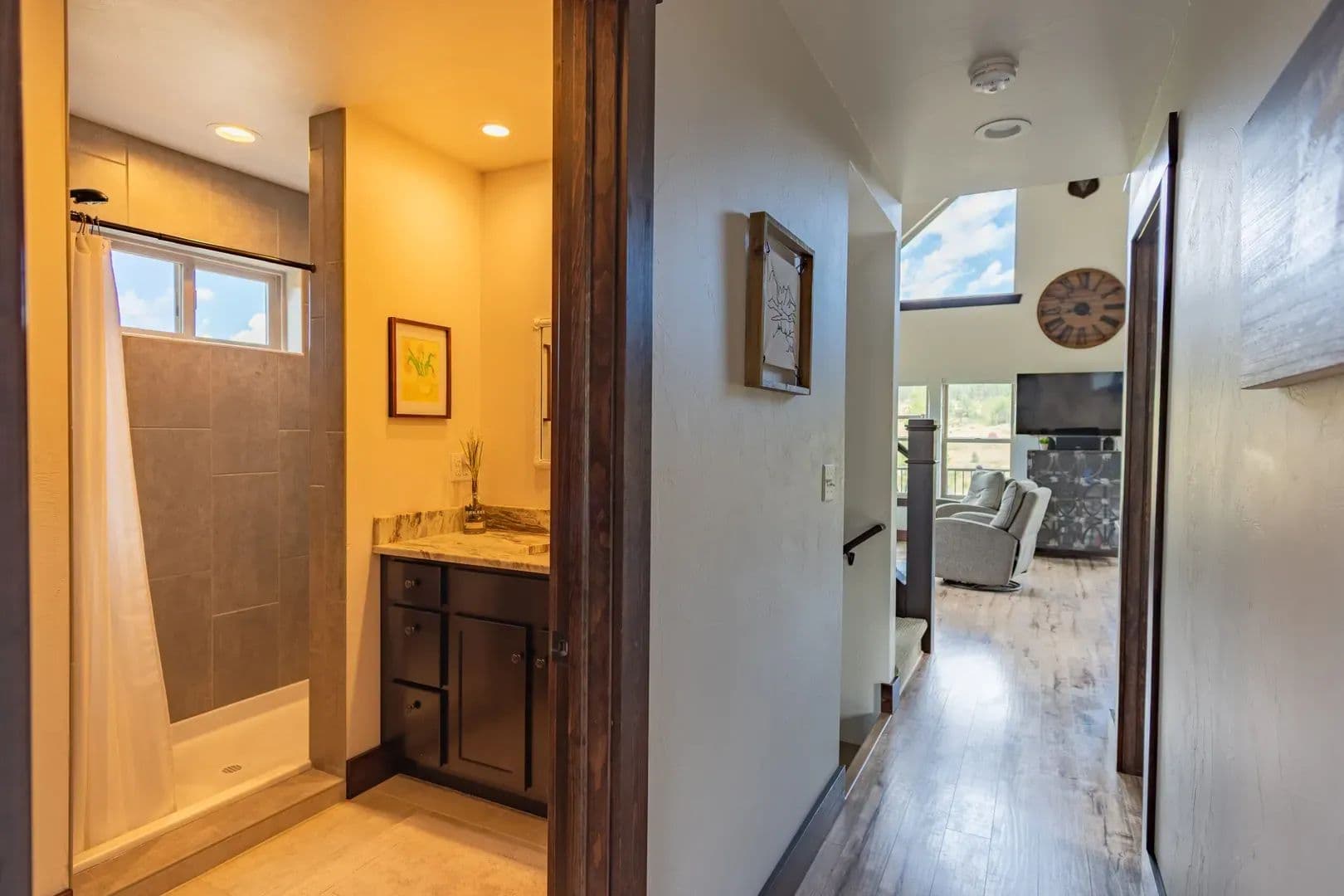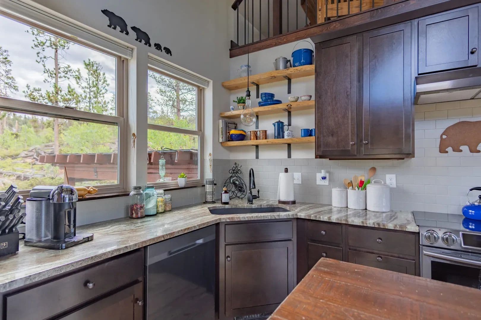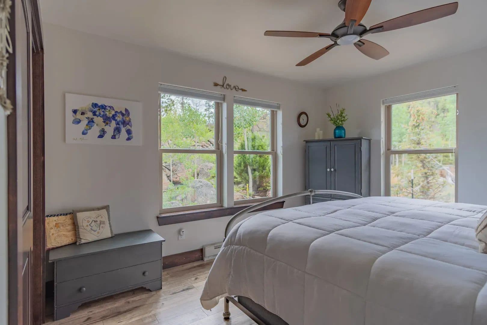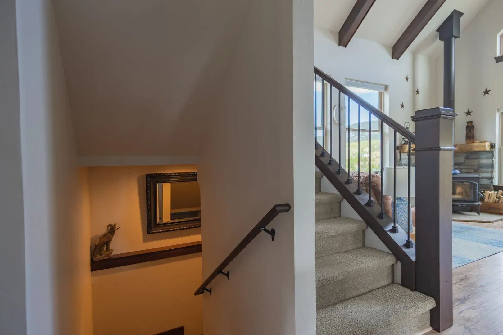 Just over an hour NW of Fort Collins and in the sought after mountain enclave that is Crystal Lakes, this beautiful riverfront mountain home on just under 1.5 acres just might surprise you. With over 2100 sqft of space on 3 levels, this well thought out home brings nature indoors. Positioned perfectly on the property, and with large windows to bring in the views, there is room for family and guests to enjoy the Colorado mountains year round. Land This 1.48 acre parcel is sloped toward the North Fork of the Poudre River, with frontage on both sides, and the home is positioned perfectly to take advantage of the topography and the views. Surrounded by towering pines, mountain views and the sound of the river, you’re transported into a place that gives you respite from the everyday. With satellite available everywhere now, you can still check in with the real world anytime you like, but you probably won’t choose to. The Crystal Lakes community is tight knit, well organized and active if you want to participate. National Forest surrounds you and there is access in a multitude of places for you to enjoy all that has to offer. Even though you’ll feel miles away from civilization, you’re only about 15 minutes from Red Feather where a grocery/hardware store has many essentials. There are even a couple of restaurants and a post office as well.