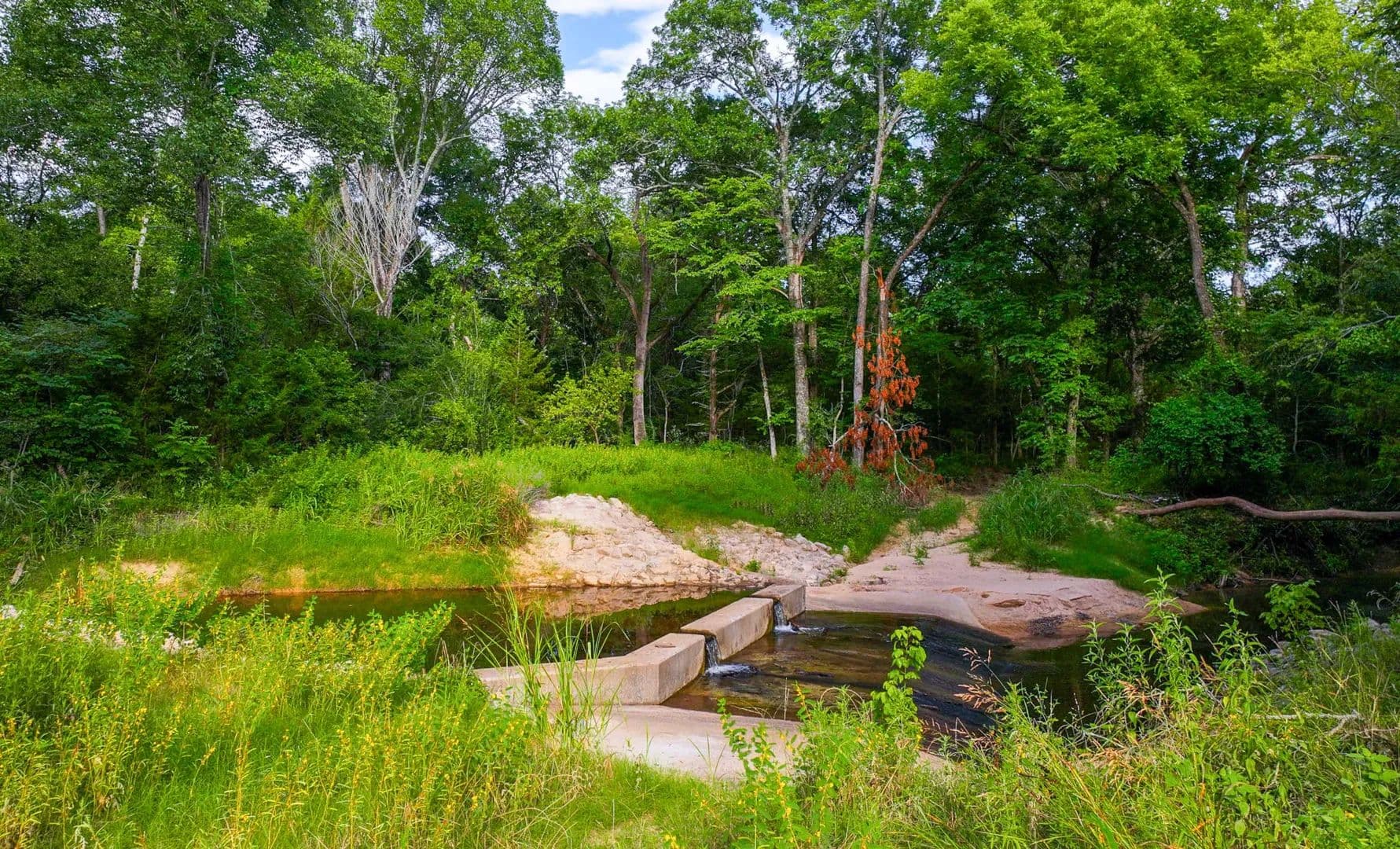 Water is the heartbeat of Flowing Springs Ranch. A live, spring-fed creek winds through the property for more than a mile, its clear waters captured by three large concrete crossings that create a chain of deep, scenic pools. These water features provide year-round fishing for bass, catfish, and perch, while scattered ponds across the ranch expand the opportunities for casting a line or setting out with a canoe. The combination of creek, ponds, and watershed creates one of the most water-rich ranches available this close to the Metroplex.