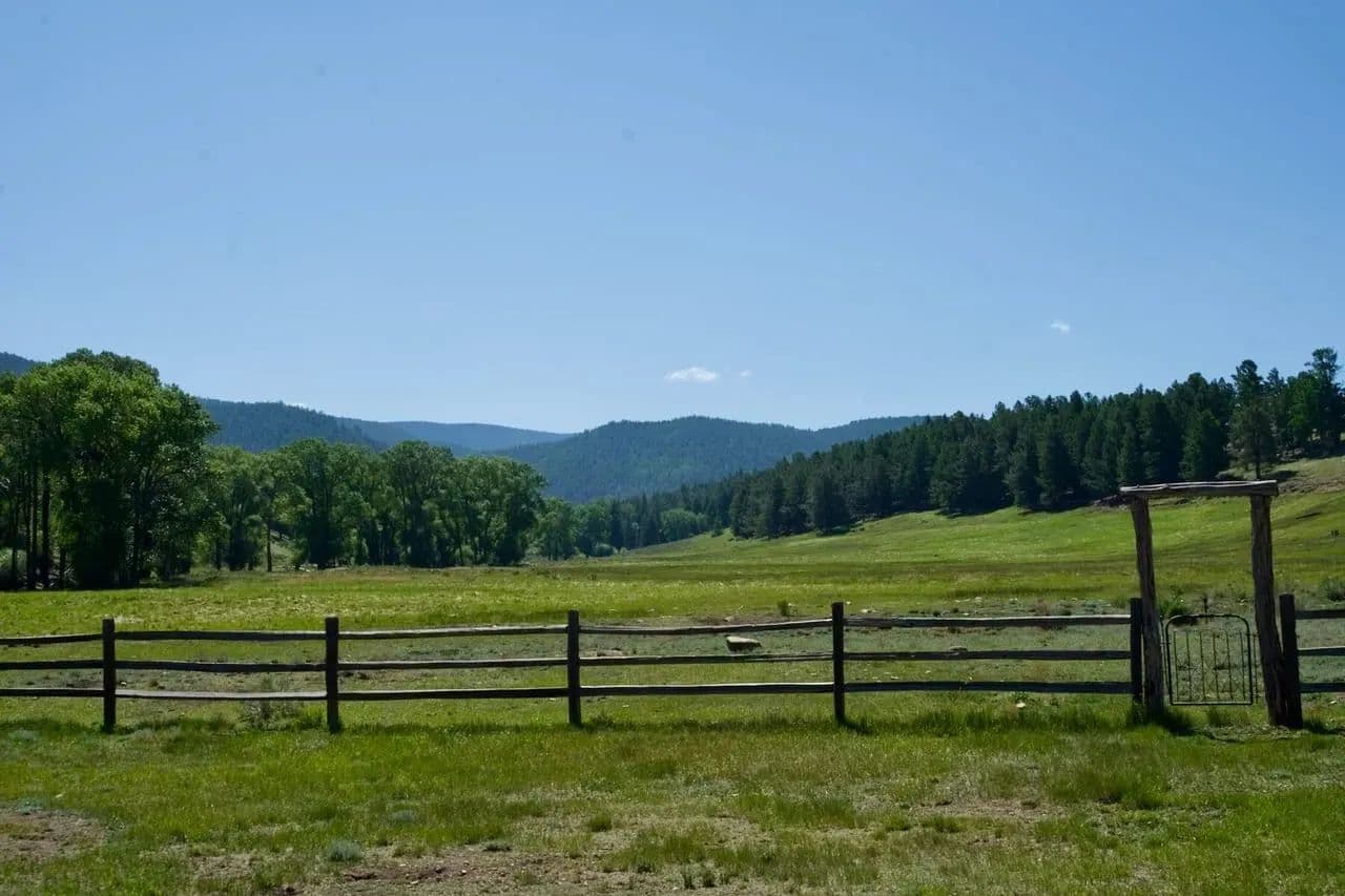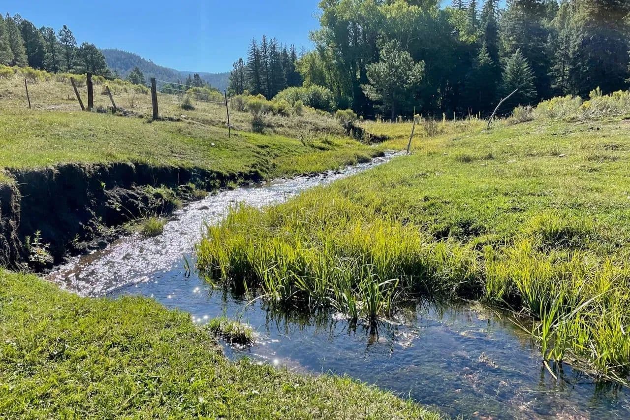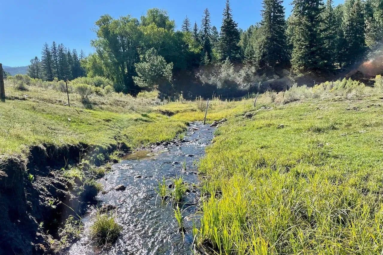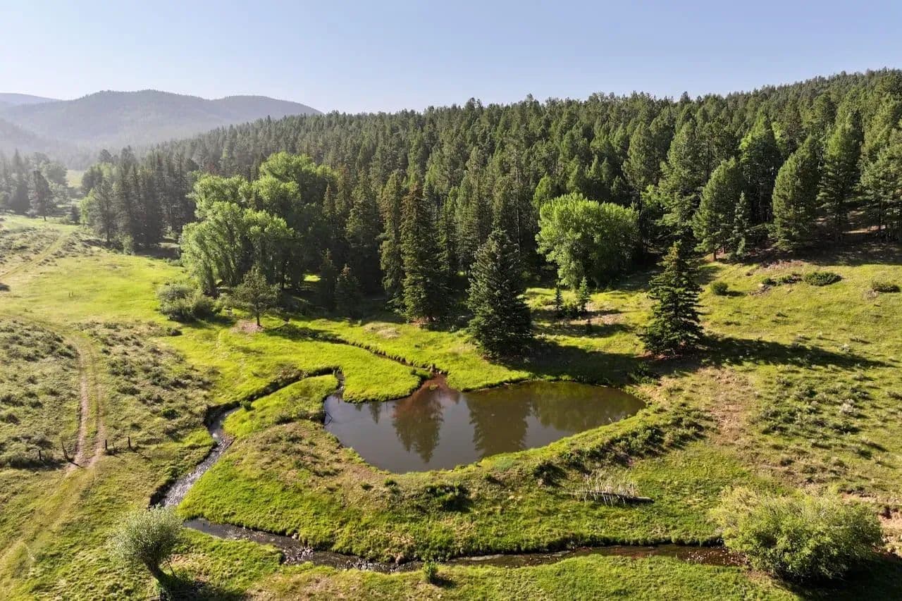 As the crow flies, 13,159-foot Wheeler Peak, the highest in New Mexico, is only 11 miles northwest of Monte Verde Ranch, and can been seen from many parts of the property. The ranch itself lies at elevations of 8200 to 8800 feet, which translates into wonderfully cool summers and mountain splendor in every quarter. The higher portions of the ranch are filled with ponderosa pine and spruce forest, and the lower portions are well-watered meadow sections traversed by both Cieneguilla and American Creeks. The ranch borders the wildlife-rich Colin Neblett State Wildlife Area and several other premier ranch properties, making this one of the loveliest uncrowded neighborhoods in this part of the state.