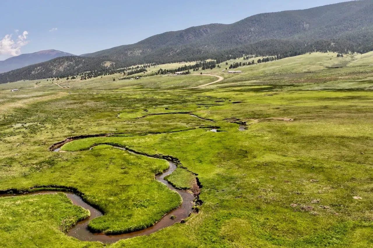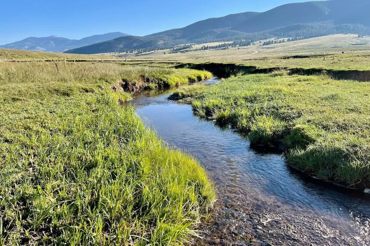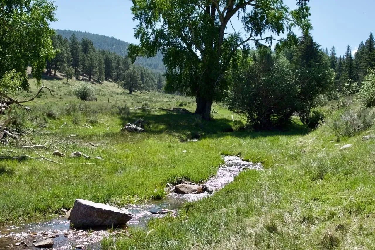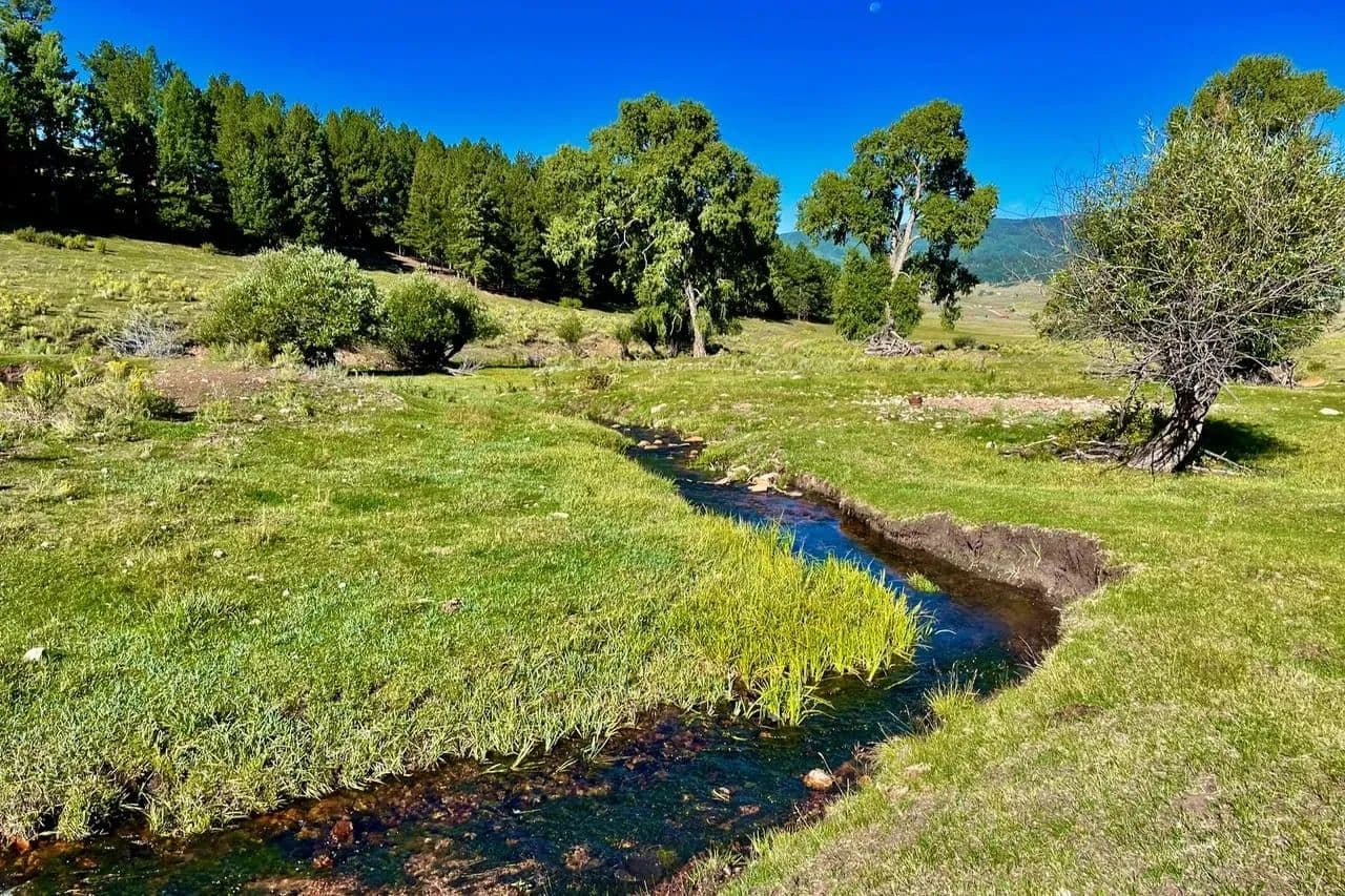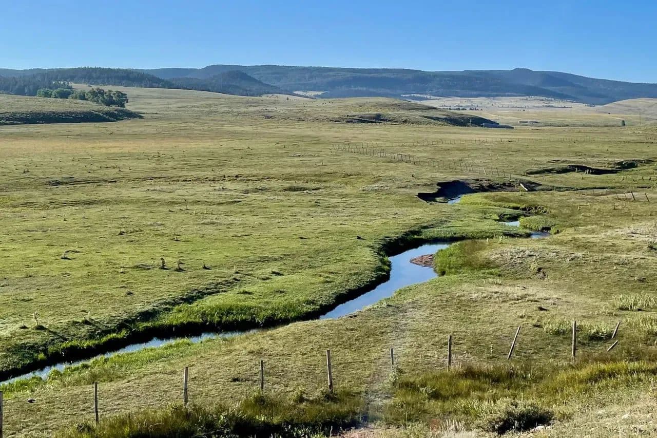 As the crow flies, 13,159-foot Wheeler Peak, the highest in New Mexico, is only 11 miles northwest of Monte Verde Ranch, and can been seen from many parts of the property. The ranch itself lies at elevations of 8200 to 8800 feet, which translates into wonderfully cool summers and mountain splendor in every quarter. The higher portions of the ranch are filled with ponderosa pine and spruce forest, and the lower portions are well-watered meadow sections traversed by both Cieneguilla and American Creeks. The ranch borders the wildlife-rich Colin Neblett State Wildlife Area and several other premier ranch properties, making this one of the loveliest uncrowded neighborhoods in this part of the state.