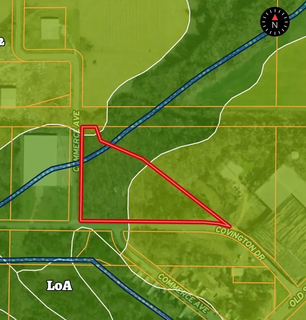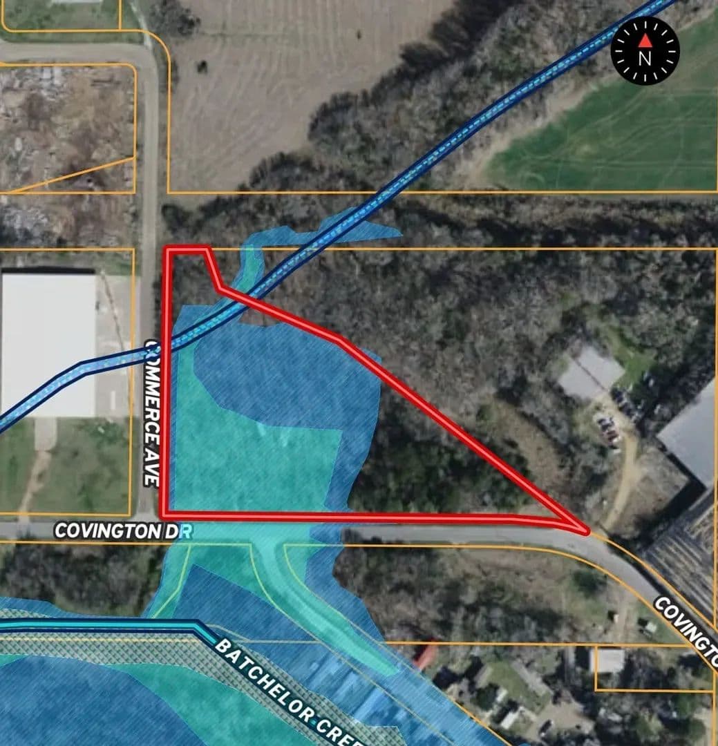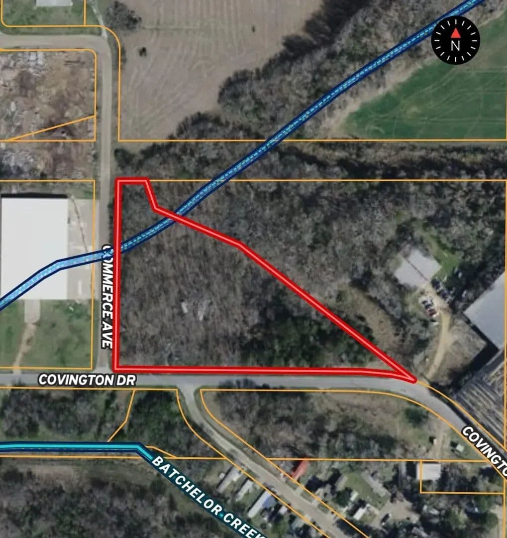 Situated at the corner of Commerce Avenue and Covington Drive in the highly regarded Canton Industrial Park, this 4.26 ± acre wooded tract offers an exceptional location for your next business venture. With its strategic corner position, the property provides excellent visibility and convenient access for customers, clients, or logistics needs.