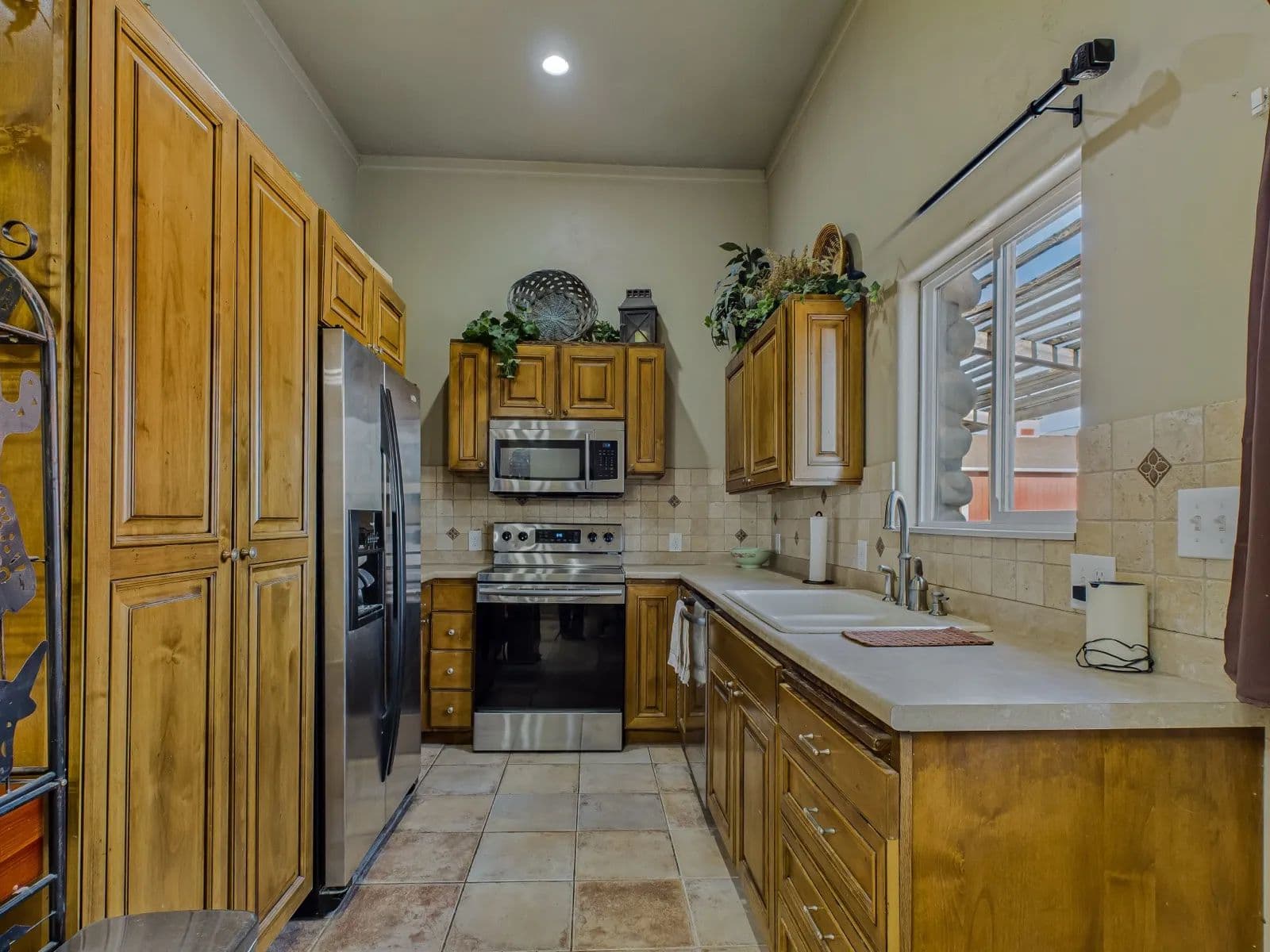 You’re greeted by a new fence, gated main entryway with iron gates, setting the standard for the whole property. Inside the gates is fresh landscaping, leading to the facility that is immediately impressive and entirely move-in ready. Nothing has been left undone.