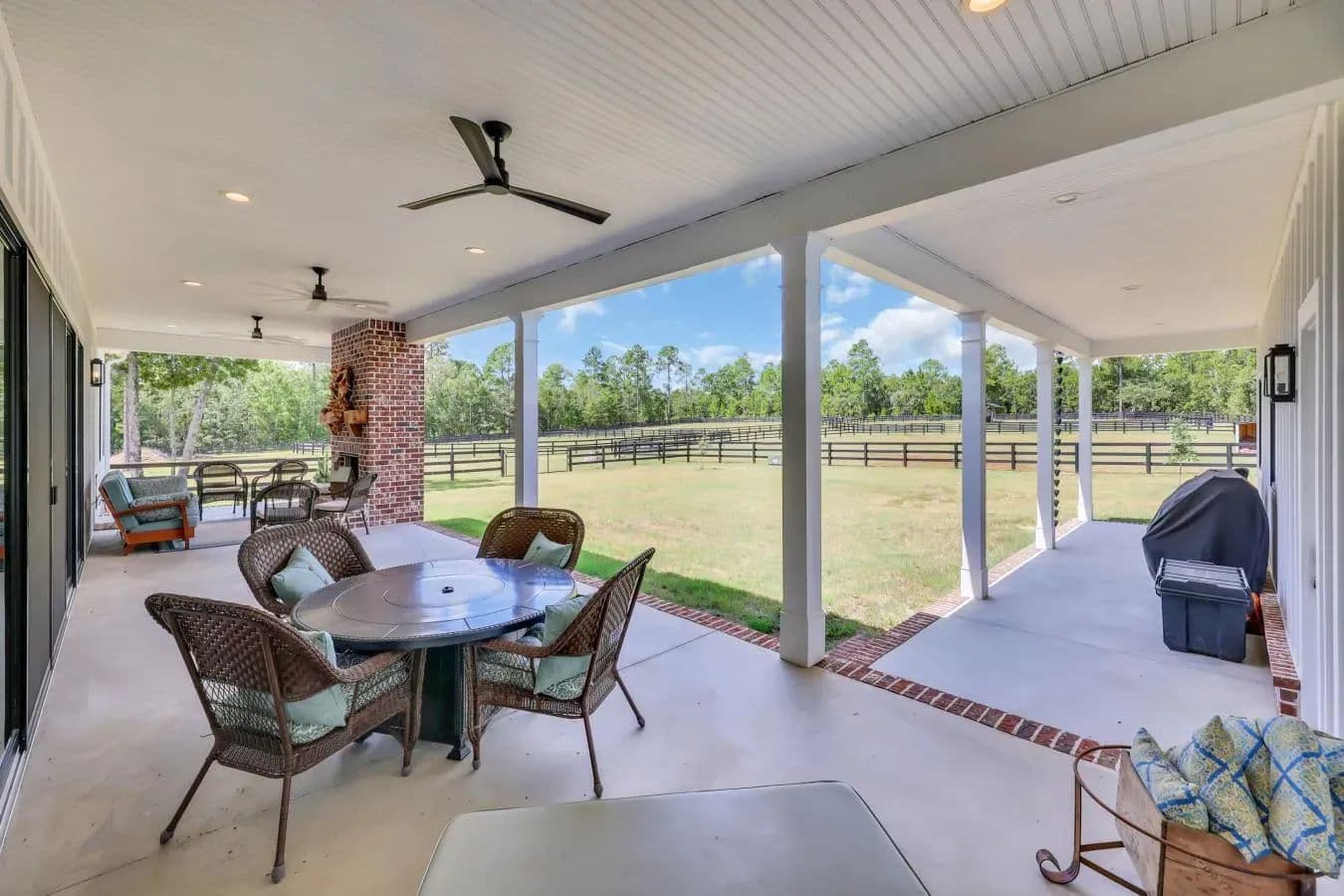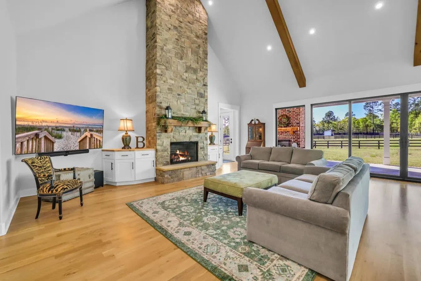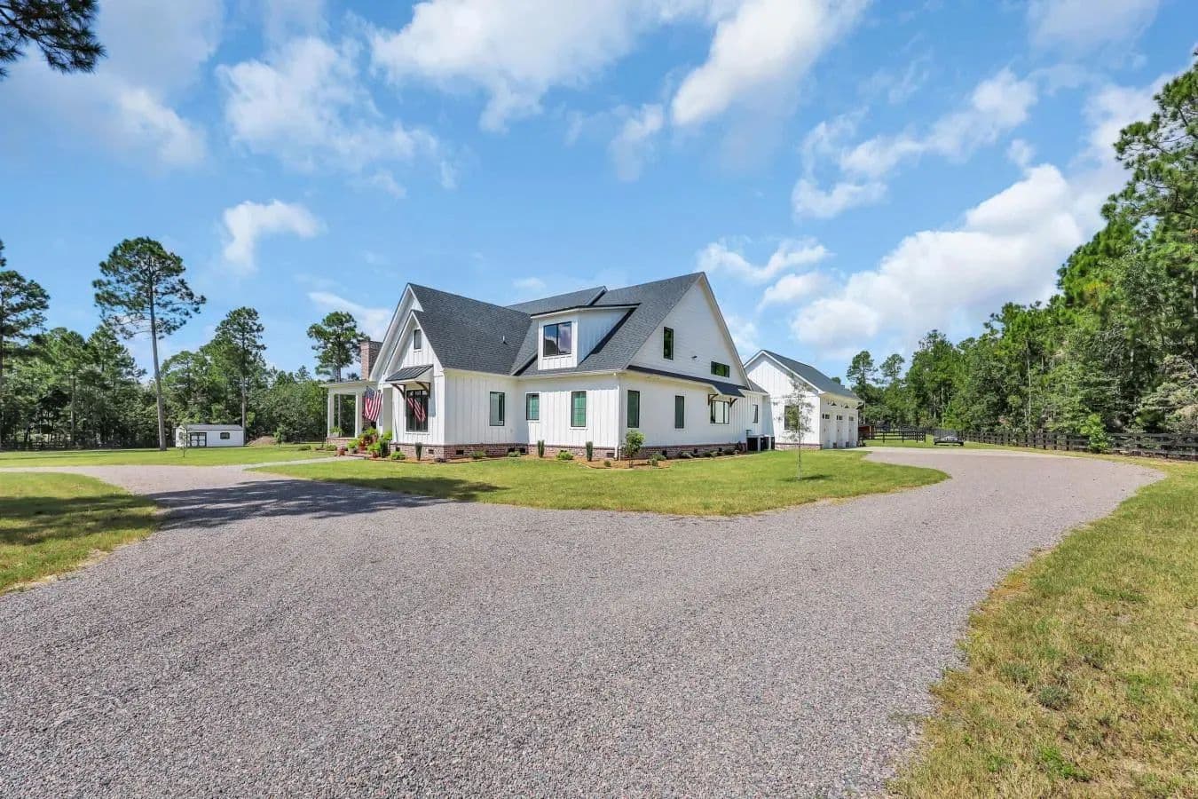 Built in 2022, ''Liberty Farm'' is nestled on 7.5 acres in Aiken's premier equestrian community, Three Runs Plantation. This custom-built home offers an unparalleled blend of luxury living and equestrian convenience. Perfectly positioned directly next to the community's south clubhouse and arenas, this property provides instant access to multiple all-weather rings, cross-country jumps, and over 30 miles of groomed trails-no trailer required. The custom home has 3 bedrooms, 3.5 baths and a bright, open floor plan with soaring 20' ceiling in the great room, walnut entry door, oak floors and top-end finishes throughout. The gourmet kitchen has premium Thermador appliances, beverage refrigerator, custom cabinetry and solid surface countertops. Enjoy cozy evenings by one of three fireplaces, including a dramatic 20-foot stone indoor fireplace and two inviting outdoor brick fireplaces. A three car garage offers plenty of room for cars and toys. Equestrian amenities include four established paddocks, a 12x12 run-in shed with tack room, ample space for a custom barn, direct access to trails on three sides and storage shed for hay. Three Runs Plantation offers a clubhouse, pool, riding arenas, and a welcoming equestrian lifestyle just a short drive from southside shopping and downtown Aiken. Whether a seasonal competitor or full-time resident, this property delivers the perfect combination of modern comfort, luxury living, one of the larger lots available and a coveted arena-side location. A rare opportunity to own a luxury horse property in one of the South's most sought-after communities