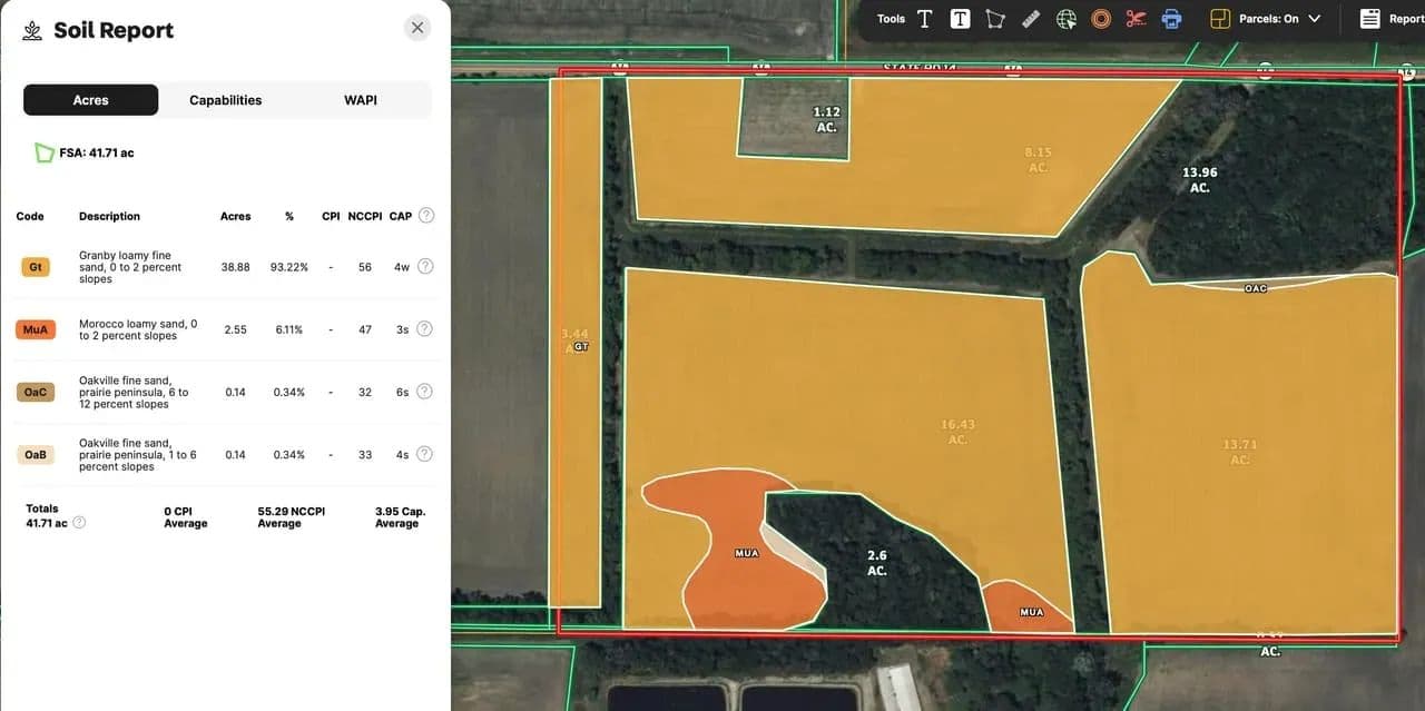 Soils & Production: The tillable acres feature loamy sand soils, well known in this region for strong row crop production. This ground consistently supports crops such as corn and soybeans, offering reliable farming income year after year.