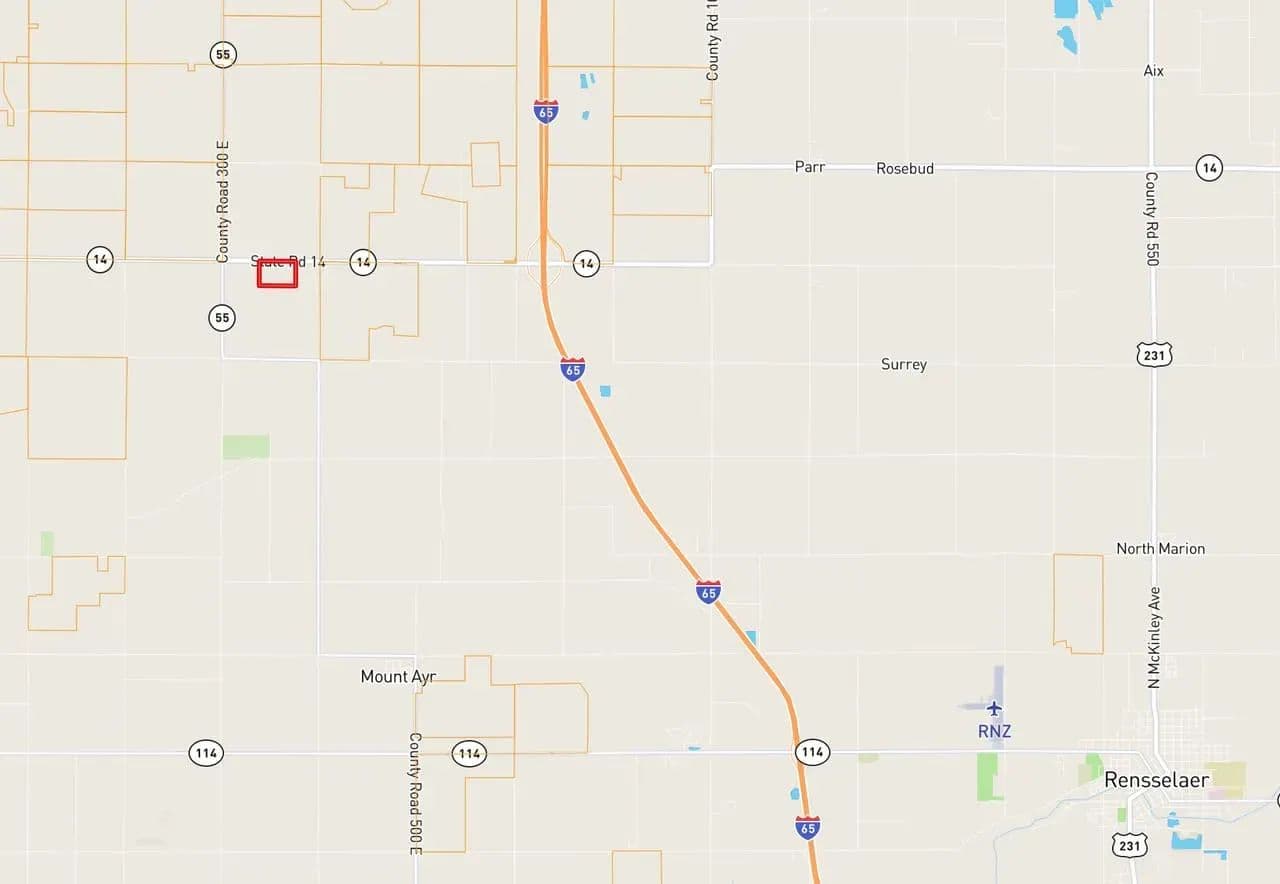 Location: Outstanding frontage on SR 14 and less than one mile from I-65, with quick access to major routes. Just down the road from the renowned Fair Oaks Farms.