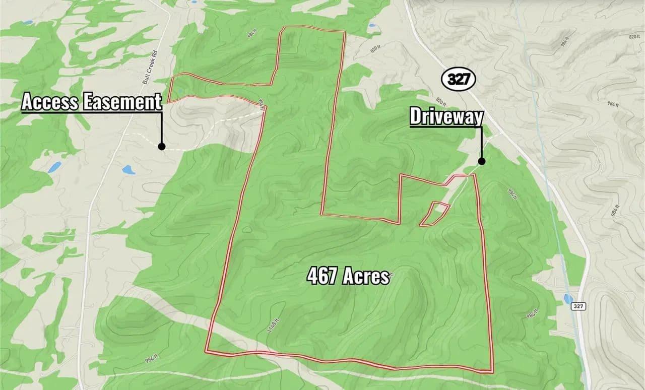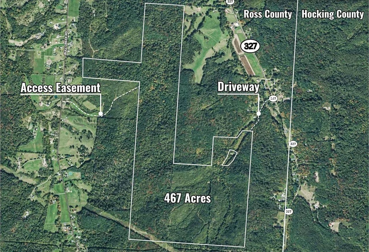 467 acres of land for sale in Ross County, Ohio. This large tract offers a rare opportunity for recreation, investment, or a private retreat. Located just 2 miles south of Laurelville, the property is mostly wooded with areas of marketable timber. Access is provided by a shared driveway from St. Rt. 327 as well as an easement from Bull Creek Rd. There are many possible building sites on the property, and a good portion of the land can be accessed by the ATV trails.