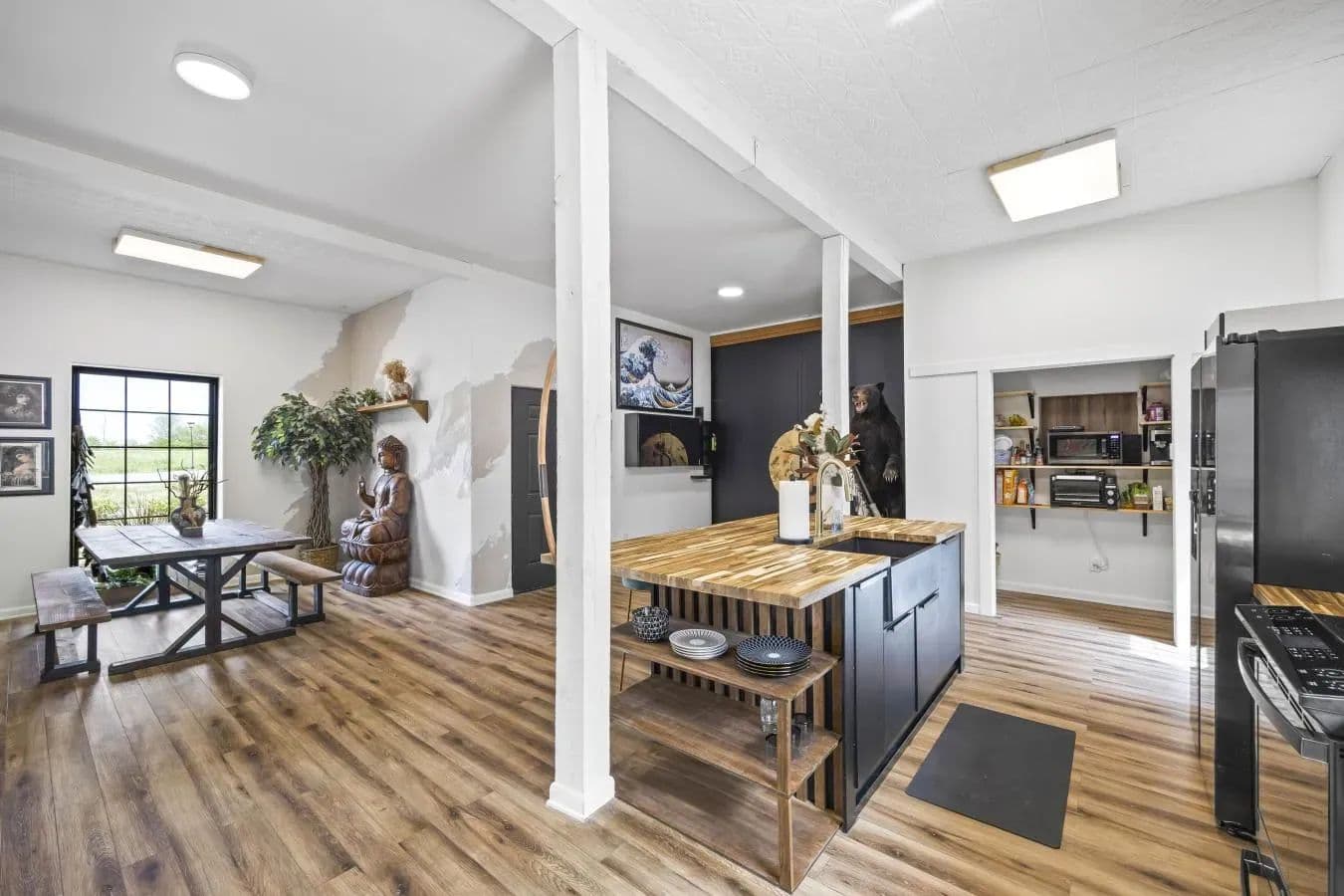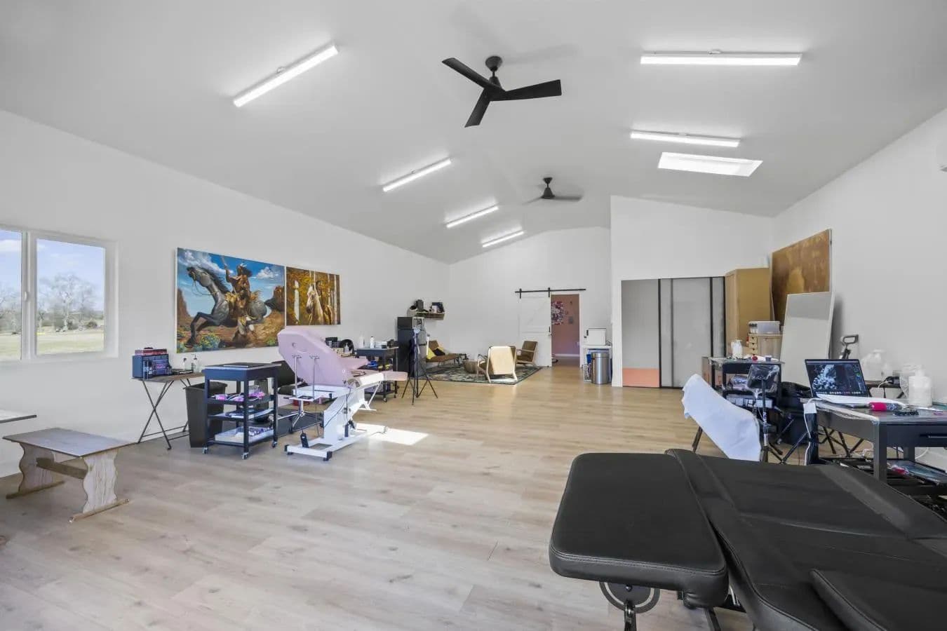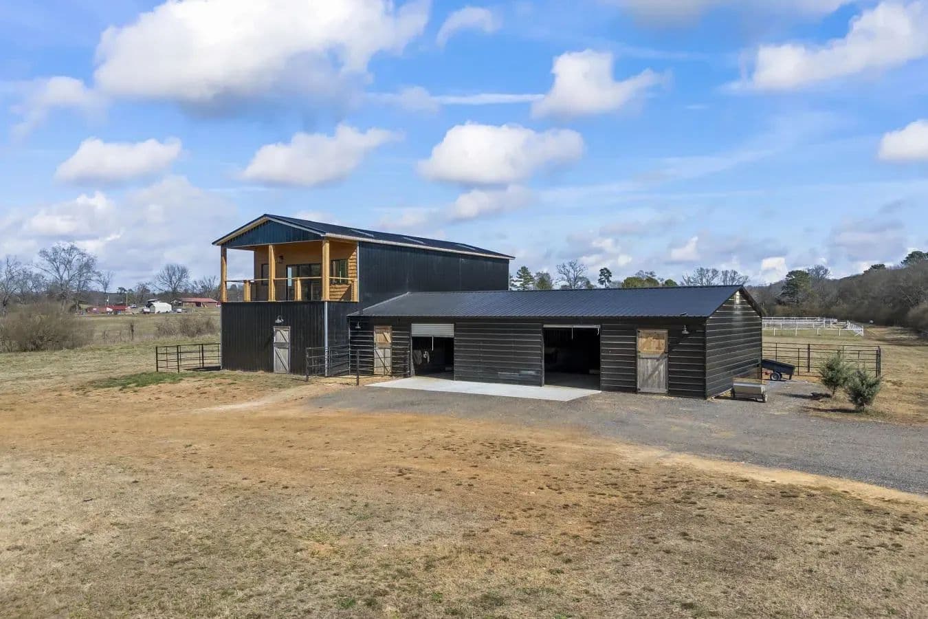 Priced BELOW appraisal!! Walk into instant equity!! Now featuring the main living area, large upscale custom kitchen, and open concept dining room all downstairs. With the addition of a custom vent hood, large island with built in shelves, a huge walk-in pantry and an eat-at bar this kitchen will be an entertainers dream! Upstairs you will find another loft/family room for those cozy nights staying in, the primary owner's suite, as well as an additional room- perfect for a home office or flex room! Set on nearly 13 acres, this turnkey equestrian property is where high-end design meets ultimate functionality. Fully perimeter-fenced, it features four cross-fenced paddocks with brand-new RAM fencing and an additional large pasture with wire fencing-ready for horses, livestock, or your vision. Step through the custom 8'x8' black steel double doors with frosted glass into the barn dominium style home. The hand-painted Venetian plaster walls, built-in custom features, and 10-foot ceilings create an airy, sophisticated feel downstairs. Massive 7'x3' picture windows flood the space with natural light, making the main living area pop with the convenience of a half bath right there. At the back, a striking 10'x10' insulated carriage door with stained chevron wood adds a bold, custom touch. Upstairs, soaring 15-foot vaulted ceilings elevate the space. The primary suite is designed for comfort, offering a large walk-in closet, double vanity, and a large walk-in shower all while blending modern and sleek finishes in every corner. Designed for serious equestrians, the barn is fully equipped with six stalls, all featuring auto waterers and RAM stall mattress systems. Each stall has space for a private run out paddock and the barn also includes an indoor wash rack, feed room, and tack room. A separate hay storage area with a garage door makes loading and unloading seamless, while an interior finished section of the barn is complete with a full bathroom. (PLEASE NOTE: Drywall and insulation are now complete in the barn since pictures have been taken). Above the barn, a versatile living space is designed to impress. A large open room with accordion-style glass doors opens the full length of the wall to a viewing deck overlooking the lighted sand arena. Whether you need a home office, art studio, or future living space, this area is ready to be customized. Two additional rooms serve as guest suites or future bedrooms. Additional Features include: Detached two-car garage, storage shed for extra equipment or workspace, lighted sand arena that is perfect for training or evening rides and the added bonus of a round pen with M10 footing. This property is turnkey for equestrians and ideal for those who appreciate high-end finishes, modern design, and flexible living spaces-all in a stunning rural setting.