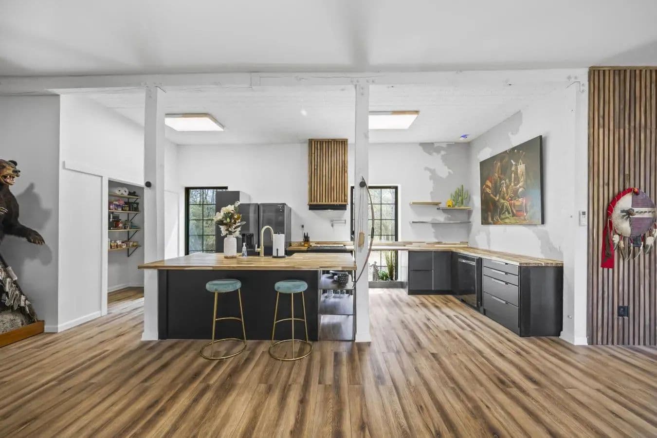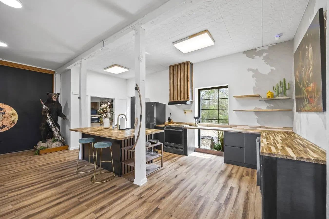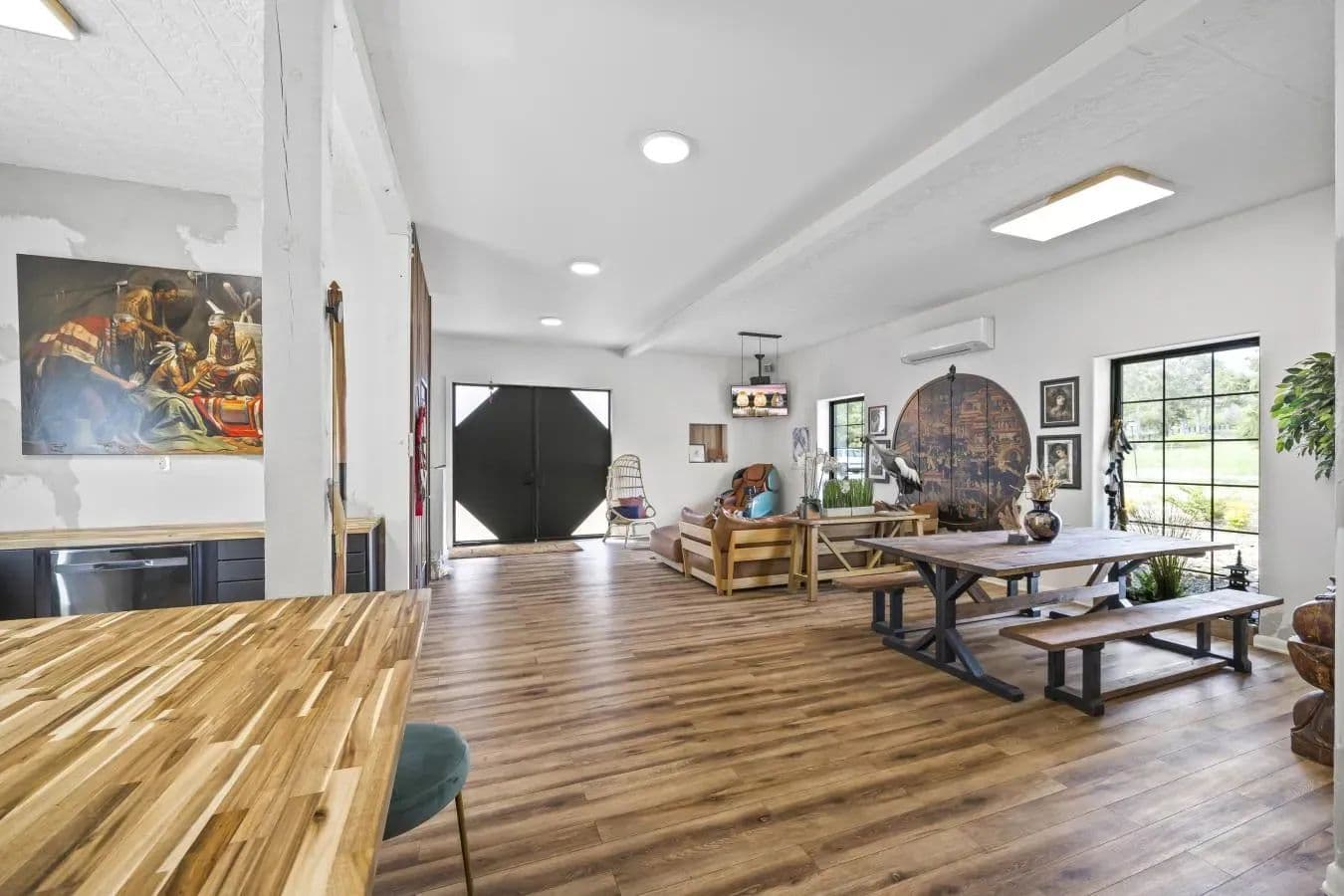Priced BELOW appraisal!! Walk into instant equity!! Now featuring the main living area, large upscale custom kitchen, and open concept dining room all downstairs. With the addition of a custom vent hood, large island with built in shelves, a huge walk-in pantry and an eat-at bar this kitchen will be an entertainers dream! Upstairs you will find another loft/family room for those cozy nights staying in, the primary owner's suite, as well as an additional room- perfect for a home office or flex room! Set on nearly 13 acres, this turnkey equestrian property is where high-end design meets ultimate functionality. Fully perimeter-fenced, it features four cross-fenced paddocks with brand-new RAM fencing and an additional large pasture with wire fencing-ready for horses, livestock, or your vision. Step through the custom 8'x8' black steel double doors with frosted glass into the barn dominium style home. The hand-painted Venetian plaster walls, built-in custom features, and 10-foot ceilings create an airy, sophisticated feel downstairs. Massive 7'x3' picture windows flood the space with natural light, making the main living area pop with the convenience of a half bath right there. At the back, a striking 10'x10' insulated carriage door with stained chevron wood adds a bold, custom touch. Upstairs, soaring 15-foot vaulted ceilings elevate the space. The primary suite is designed for comfort, offering a large walk-in closet, double vanity, and a large walk-in shower all while blending modern and sleek finishes in every corner. Designed for serious equestrians, the barn is fully equipped with six stalls, all featuring auto waterers and RAM stall mattress systems. Each stall has space for a private run out paddock and the barn also includes an indoor wash rack, feed room, and tack room. A separate hay storage area with a garage door makes loading and unloading seamless, while an interior finished section of the barn is complete with a full bathroom. (PLEASE NOTE: Drywall and insulation are now complete in the barn since pictures have been taken). Above the barn, a versatile living space is designed to impress. A large open room with accordion-style glass doors opens the full length of the wall to a viewing deck overlooking the lighted sand arena. Whether you need a home office, art studio, or future living space, this area is ready to be customized. Two additional rooms serve as guest suites or future bedrooms. Additional Features include: Detached two-car garage, storage shed for extra equipment or workspace, lighted sand arena that is perfect for training or evening rides and the added bonus of a round pen with M10 footing. This property is turnkey for equestrians and ideal for those who appreciate high-end finishes, modern design, and flexible living spaces-all in a stunning rural setting.