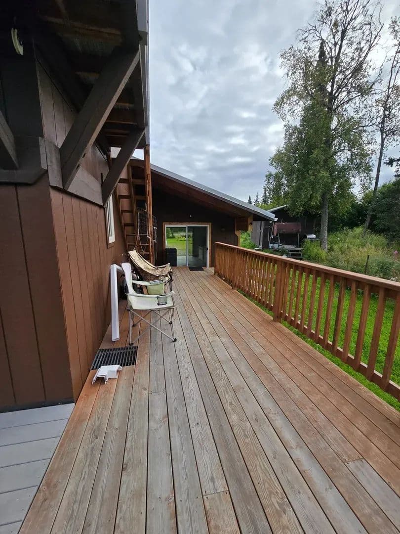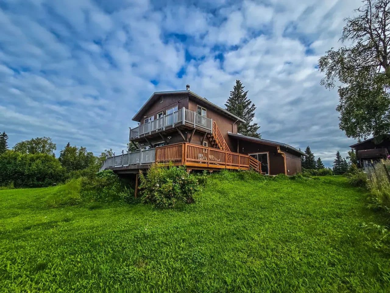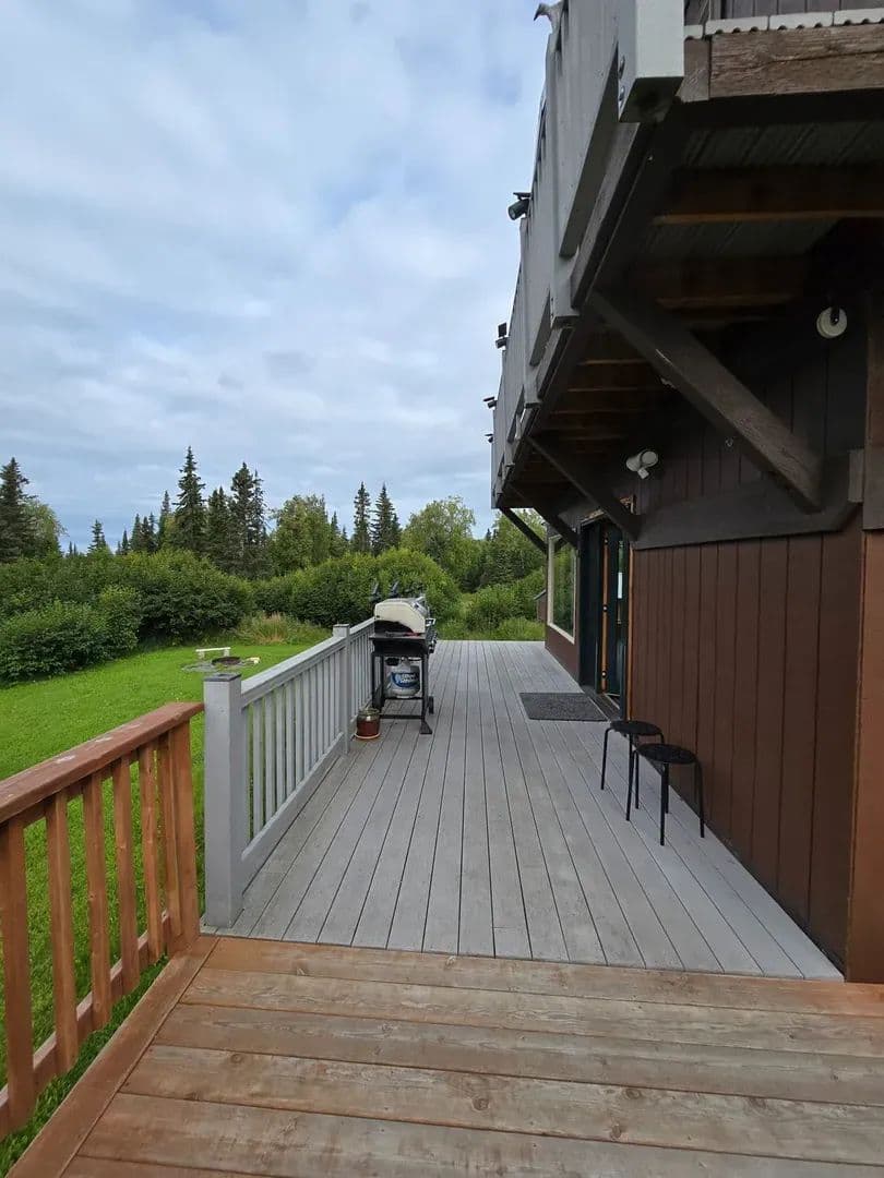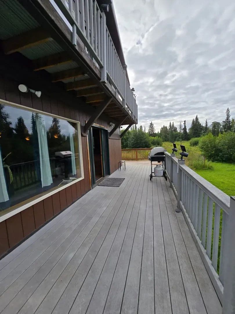 Huge $26K price reduction! Move in before winter sets in! Beautiful VIEW, private 2 bedroom 2 bath 1 car garage Chalet style on 1.13 landscaped acres in Kasilof. Huge open spaces & 2 levels of wrap around trek decks. Spacious Master suite loft. Basement is spacious 2 bedroom with exterior access. Wood stove, arctic entry and functional kitchen with tons of Storage, Laundry/utility room. Great Horse Property! 5 bay pole barn for all your toys; ample space for guest parking & RV. Open kitchen design with TONS of storage. Spacious 24 x 24 basement with heat and exterior door access. Oil Heat in downstairs bedroom Oil heat in living room and wood stove as a back up. Laundry room and garage access from main home. All appliances stay to include the state of art smoker and freezer.