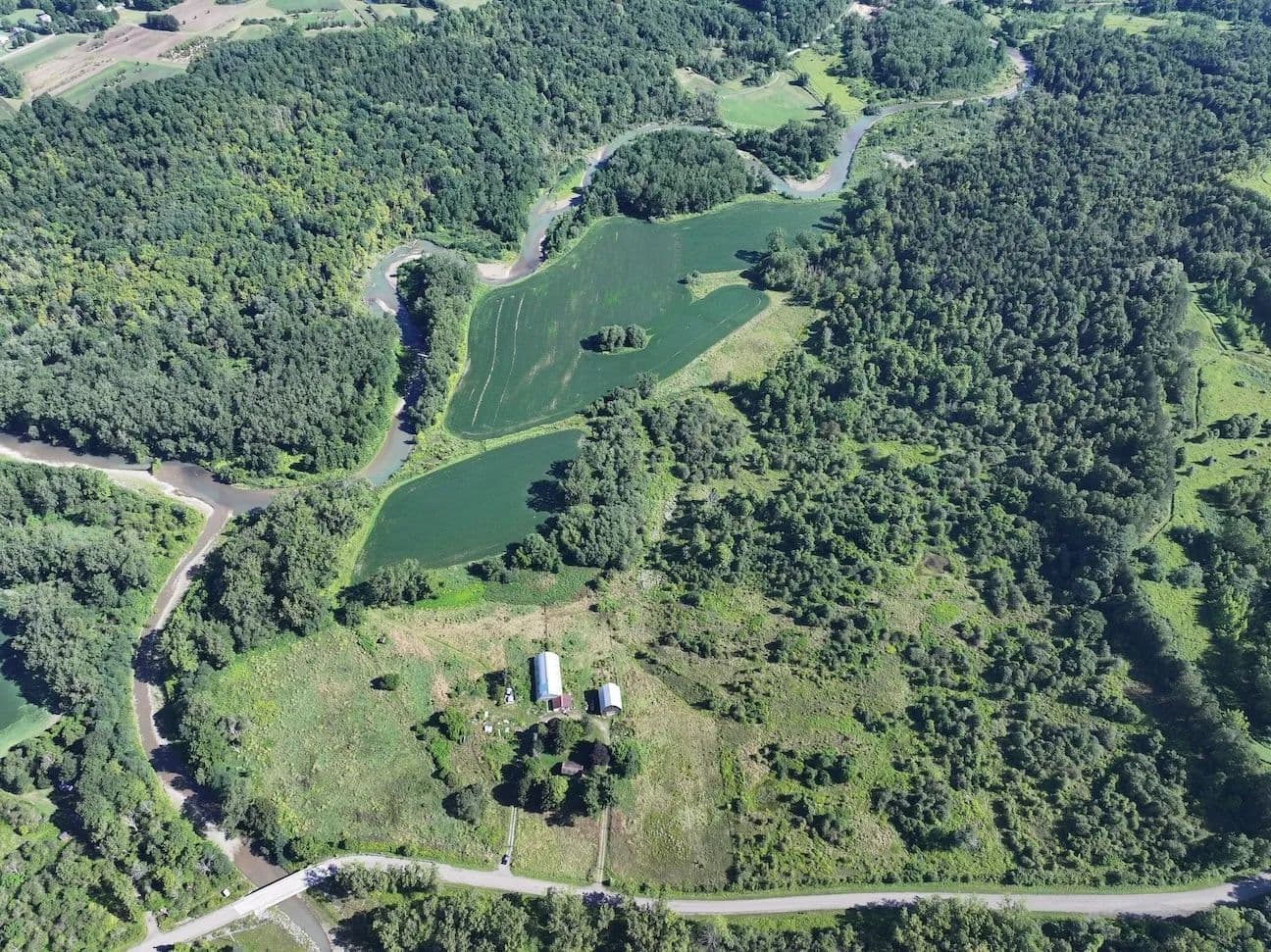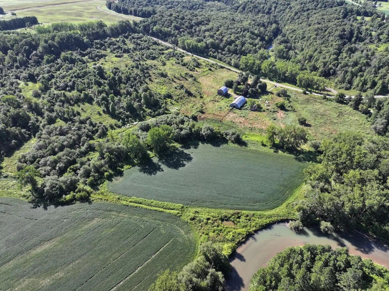 Located on a secluded but maintained road, this 94-acre farm sits back along the Cattaraugus Creek offering multiple opportunities for its next owner. The property is split up by approximately 50 acres of tillable land which is farmed annually, and approximately 40 acres of scattered woods, brush, overgrowth, pond, and around 5 acres of lawn surround the house and outbuildings. The outbuildings consist of a 40 x 50 barn which can be used for cattle or storage with a loft that was previously used for hay storage. There is a 36 x 26 milking parlor and workshop that connects to a 50 x 100 arched steel building that can be used for stalls for cattle or for storage.