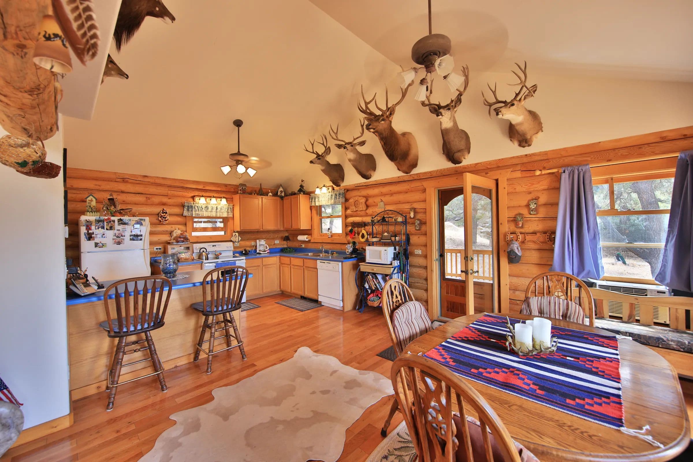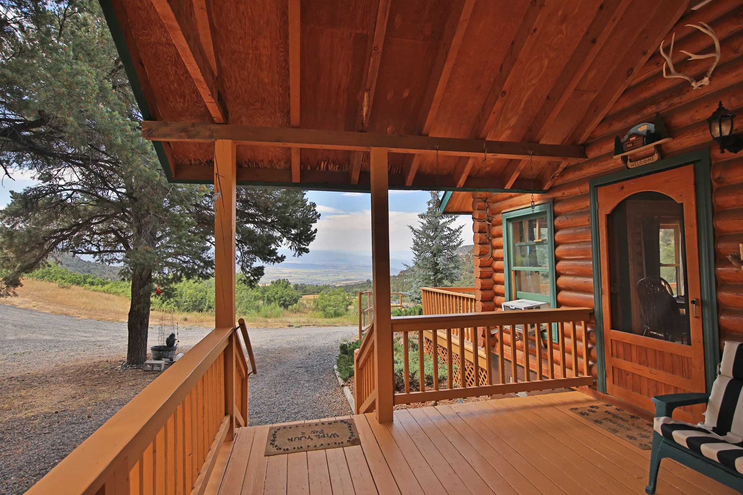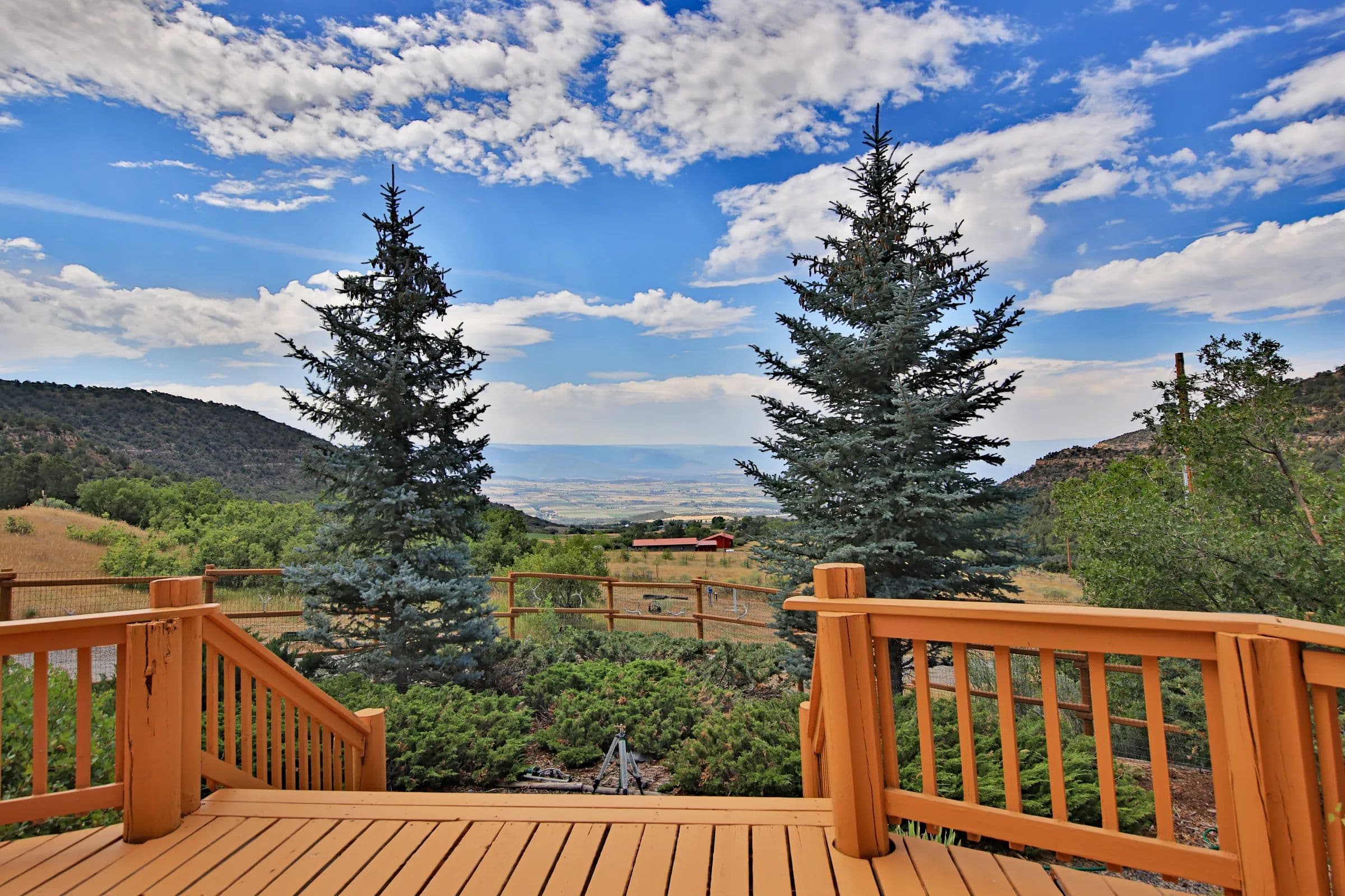Longview Ranch offers 23.75 scenic acres in Western Colorado with breathtaking views of Plateau Valley, Grand Mesa, and the Battlement Mesa Mountain Range. This meticulously maintained private mountain property borders BLM land to the east and features a fully furnished 3-bedroom, 2-bath rustic log home that blends classic charm with modern comfort. The open floor plan showcases vaulted wood ceilings, knotty pine flooring, wood-trimmed finishes, and expansive windows that frame panoramic mountain views. Two fireplaces, hot water radiant baseboard heat, ceiling fans, included appliances, washer/dryer, freezer, and a water softener make this home completely move-in ready—ideal for full-time living or a seasonal mountain getaway. Outdoor features include multiple wooden decks, tiered retaining walls, mature pine and cedar trees, and a fenced grove of 30 Blue Spruce trees. A detached garage, RV parking with hookups, and storage shed provide added functionality. The land offers partially fenced pastures, mountain grass meadows, natural terrain, and conveys with mineral rights. Services include a well, septic system, landline, cell service, satellite internet, and reliable delivery from USPS, FedEx, and UPS. Located in the heart of Plateau Valley, this Colorado mountain property is perfect for those seeking privacy, wildlife, and year-round outdoor recreation in a peaceful and scenic setting.