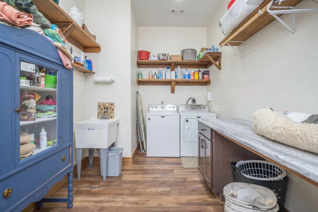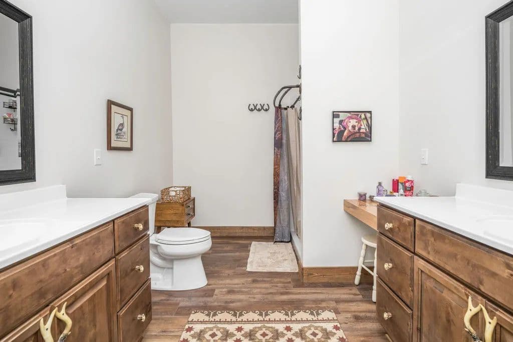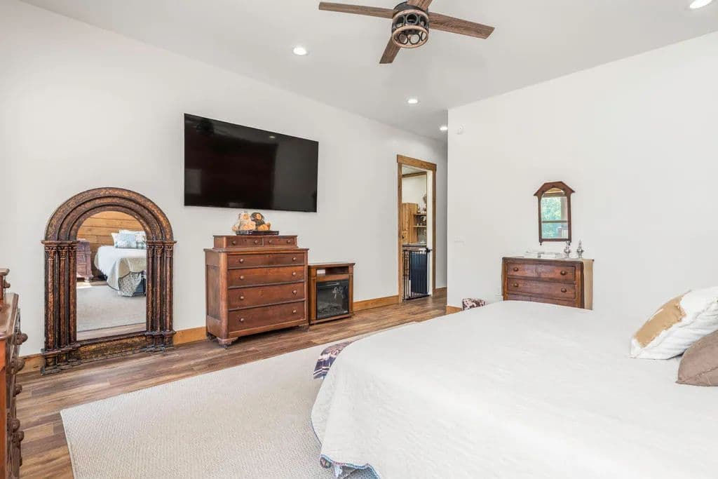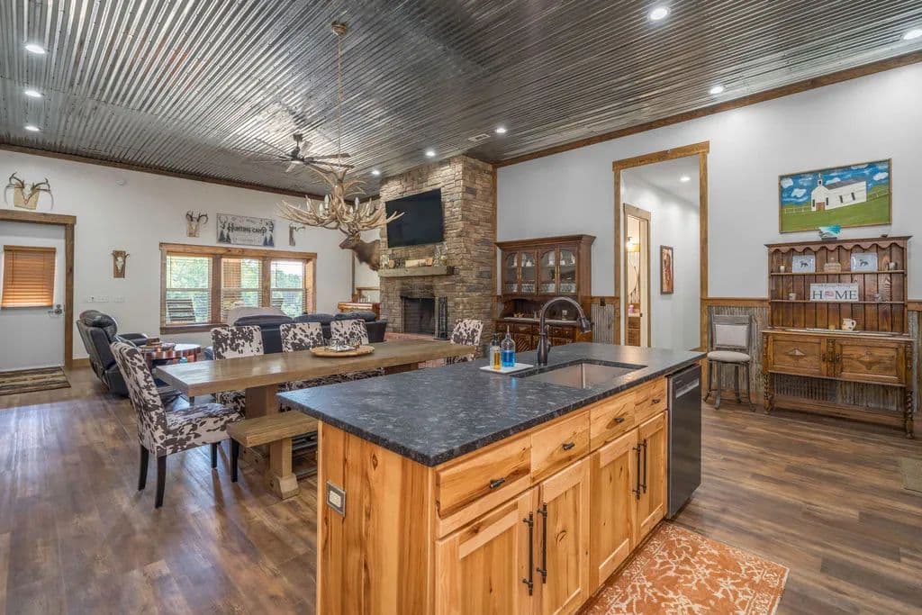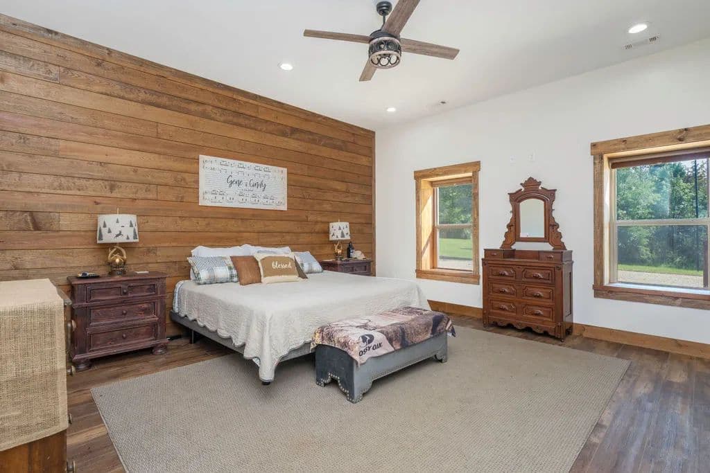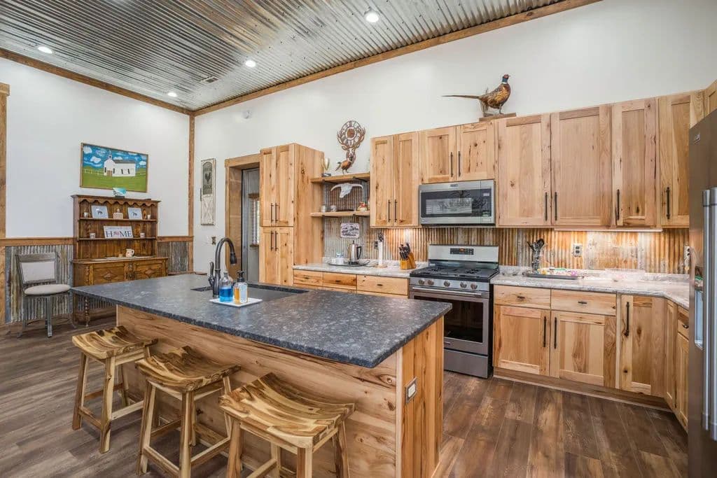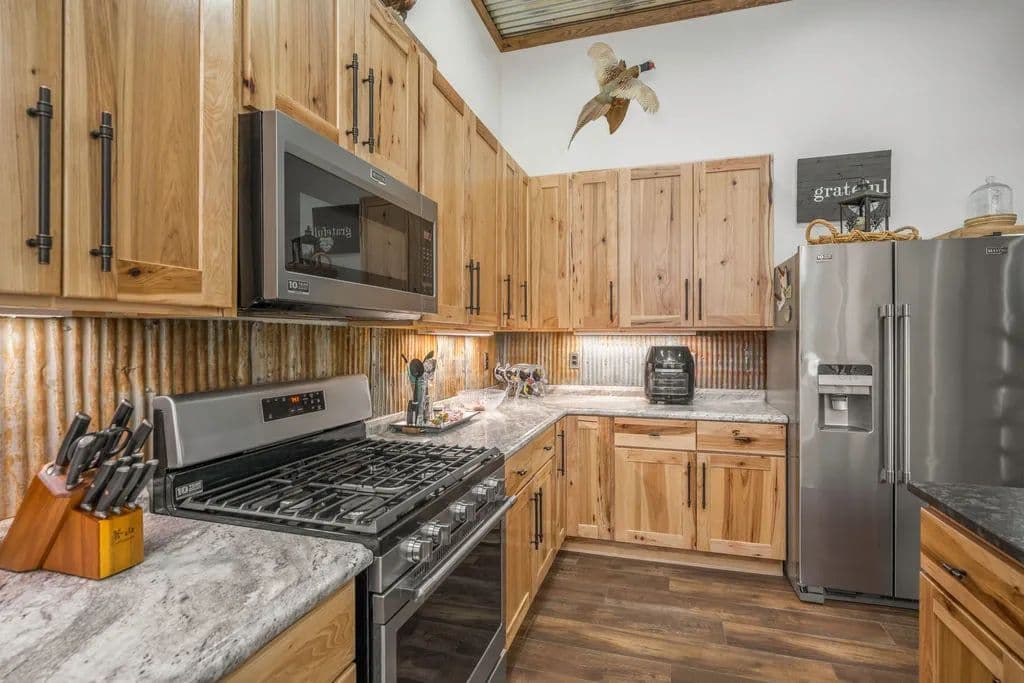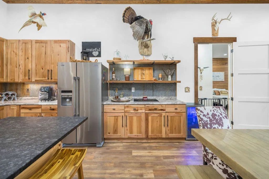 A fully furnished 3,600 sq. ft. 4 Bedroom 2.5 Bathroom Barndominium serves as a comfortable hunting lodge with an open floor plan, large 26′ x 28′ back porch, and Generac generator for backup power. Multiple sheds provide ample storage for equipment and vehicles, including a 30′ x 40′ attached shed and a 35′ x 42′ equipment shed.