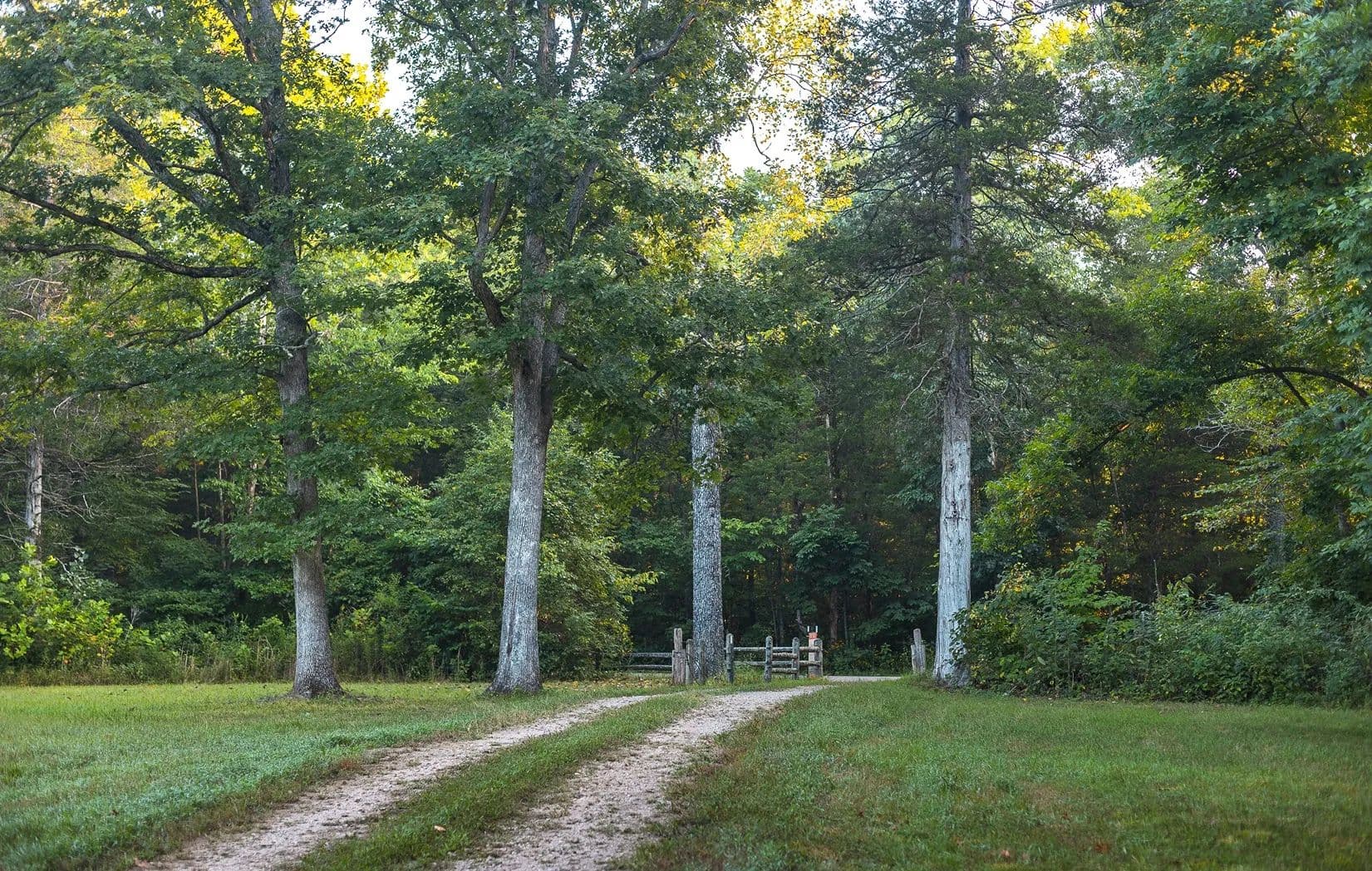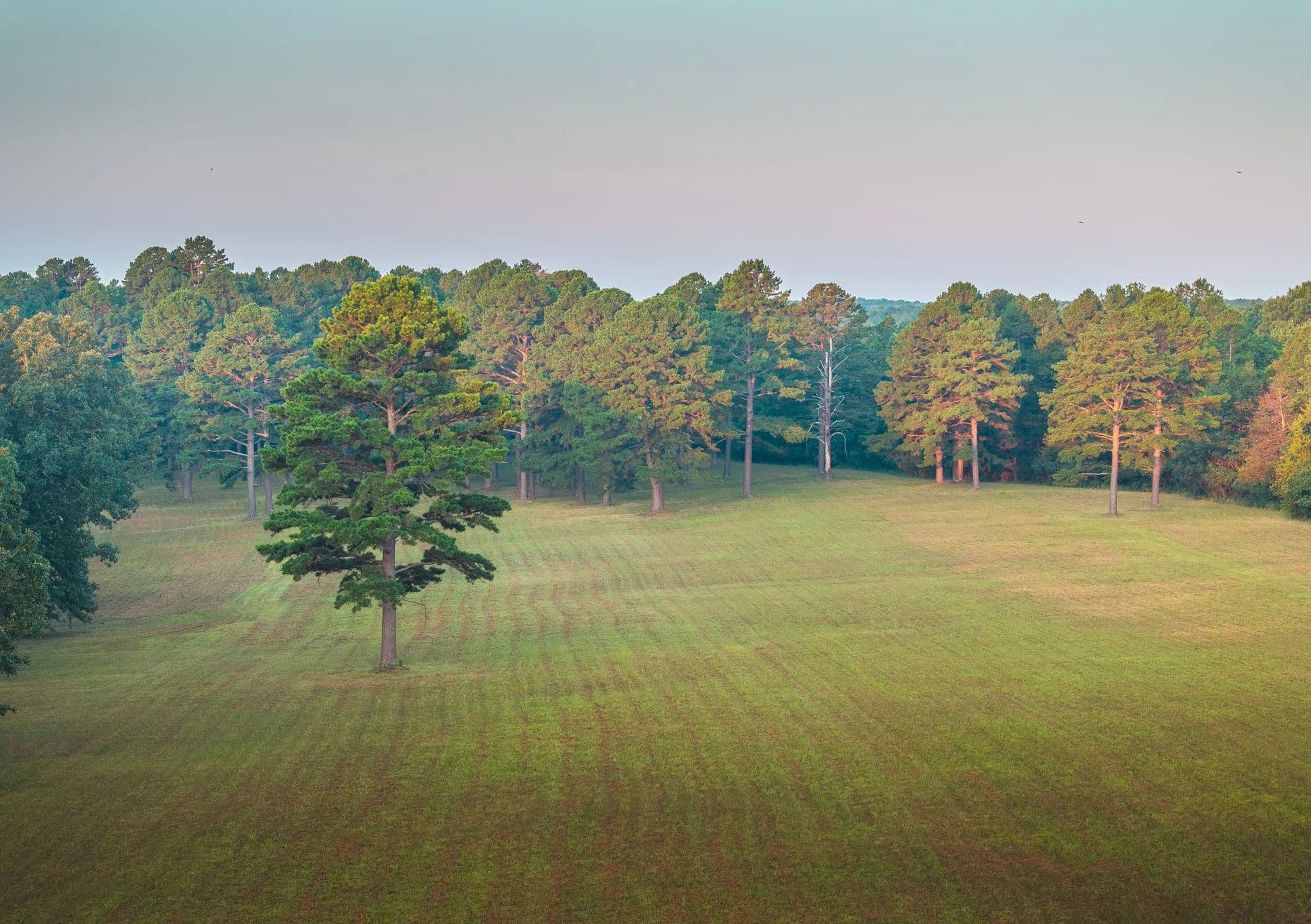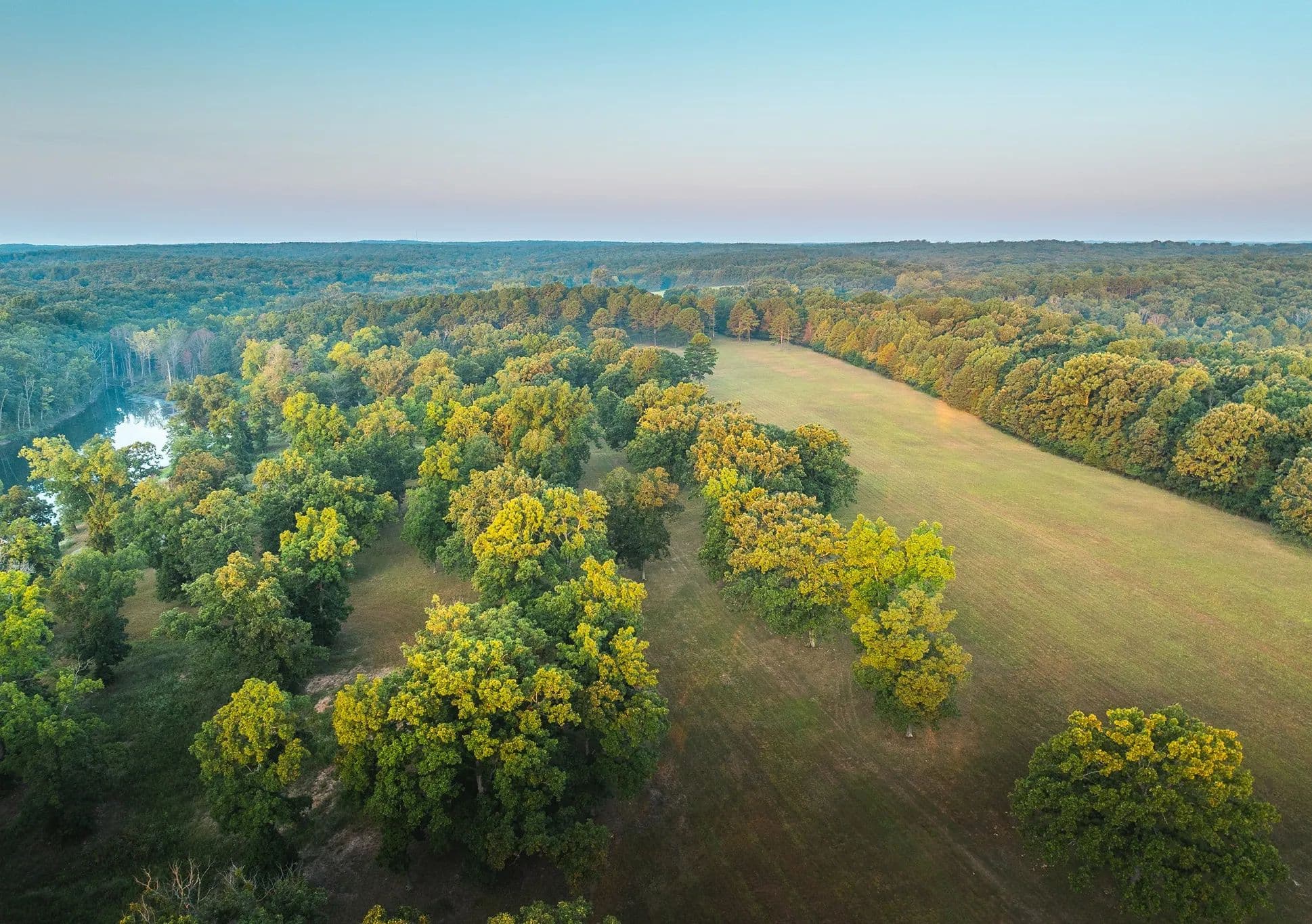 Coming in a close second to the lake is the expansive 160+/- acres of land. A gravel drive leads to the pavilion, with neatly cut grass guiding the way. The property offers a diverse landscape, ranging from flat hilltop fields overlooking the lake to wooded trails accessible via a short side-by-side ride. Nestled at the end of a cut field are majestic pine trees, offering another serene spot to unwind. Scattered throughout the property are mature hardwoods, adding to its natural beauty.